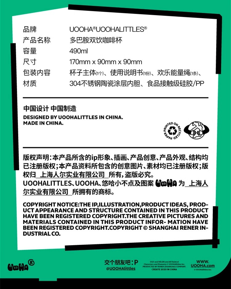uooha多巴胺双饮咖啡杯心动女孩-玫黄