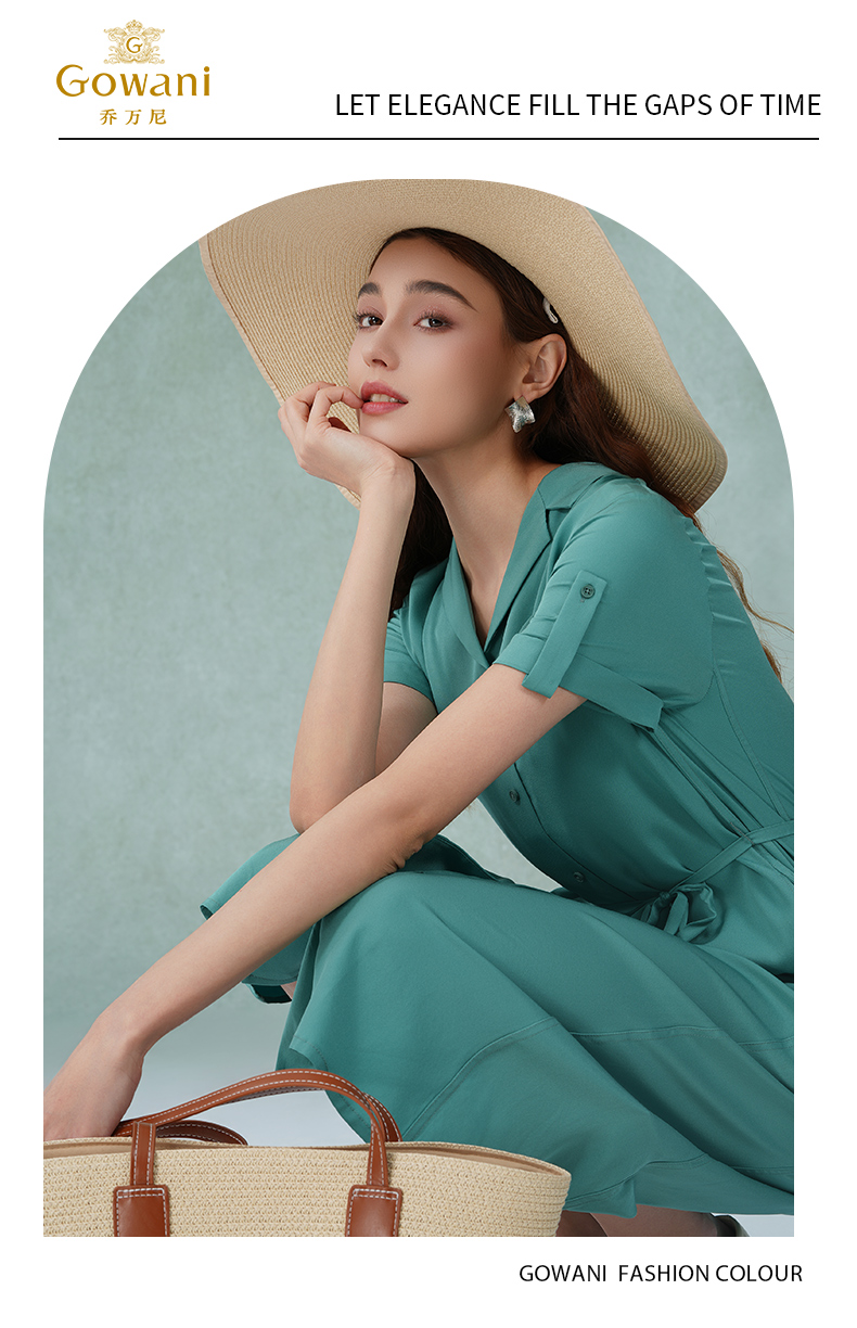 乔万尼真丝v领连衣裙夏季气质休闲桑蚕丝EI2E879