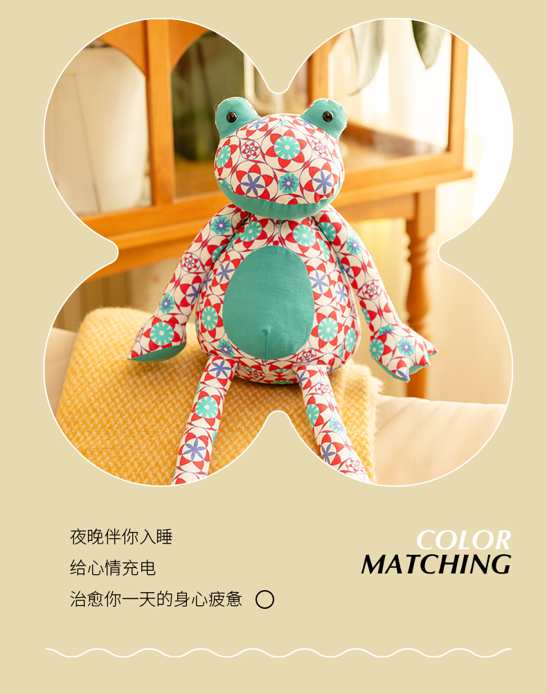 手绘碎花青蛙玩偶公仔高端可爱棉安抚装饰小孩礼物娃娃玩具抱枕