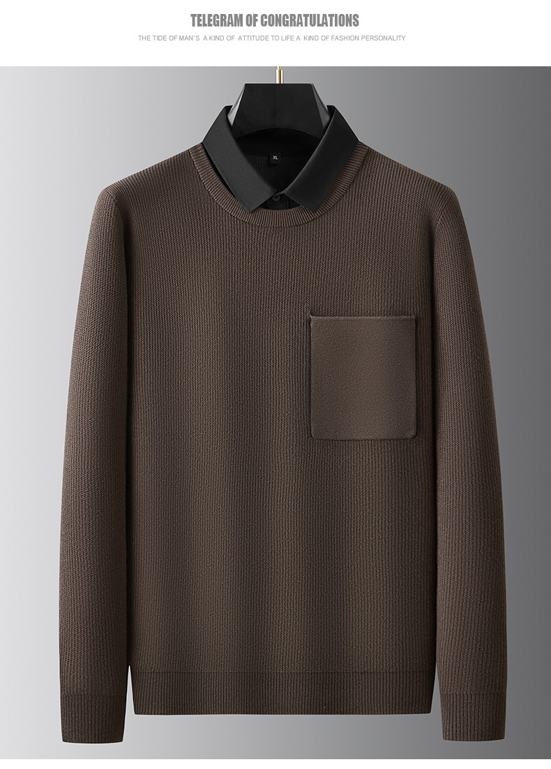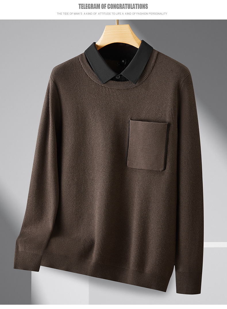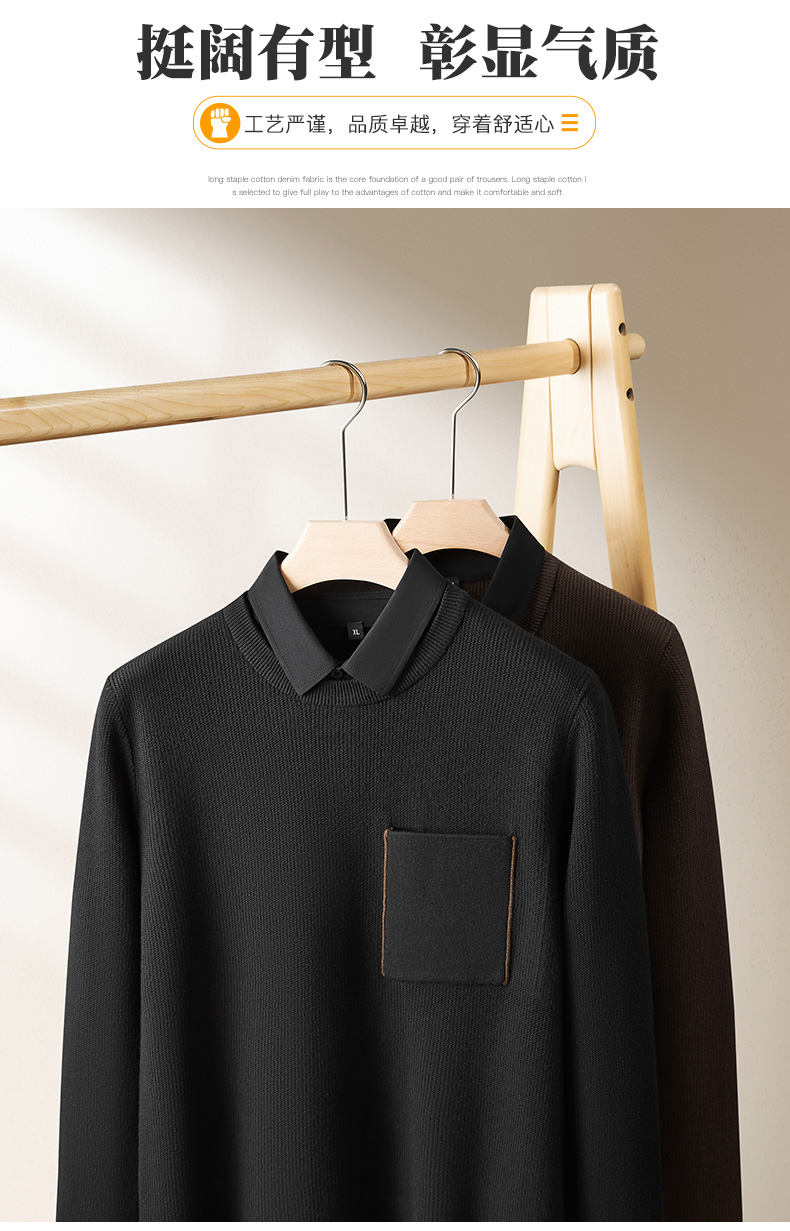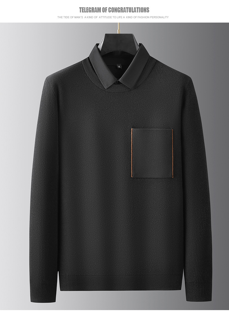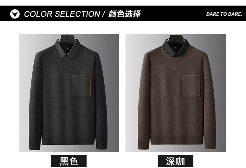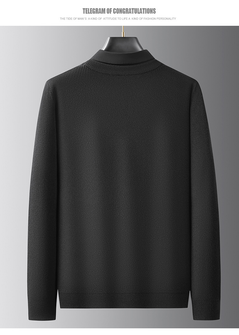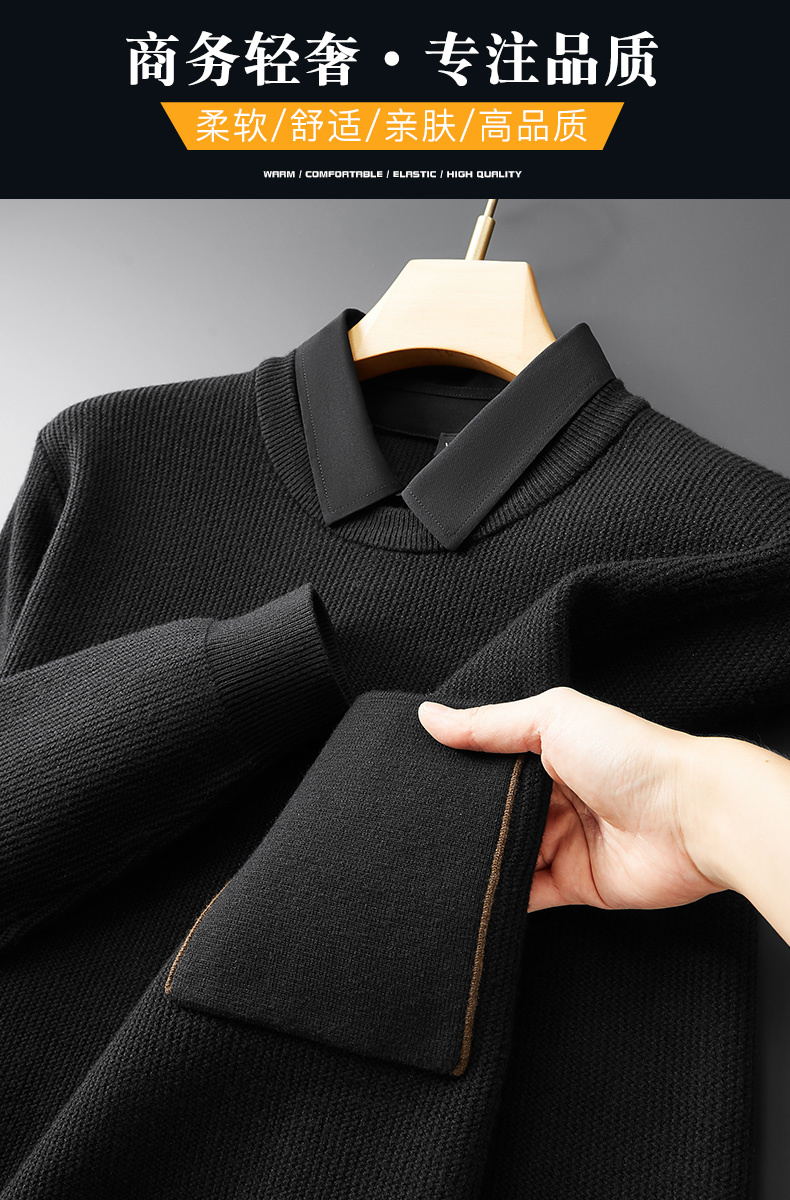 【假两件】【新款DPF】大依优型大码假两件长袖T恤毛衣衬衫领中厚款针织衫加肥加大肥佬休闲商务宽松透气上衣打底