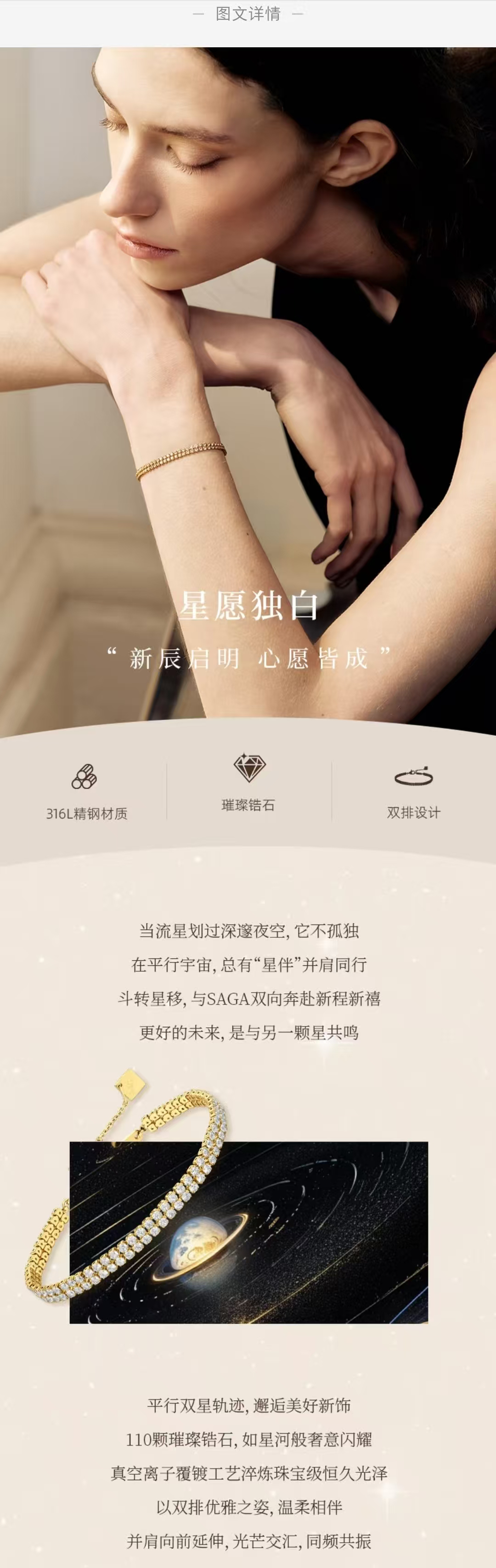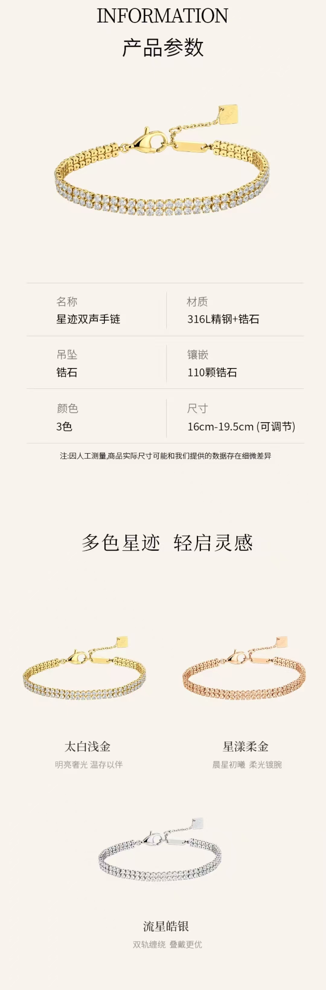SAGA世家表 · 星迹双生手链2026年新款高颜值双排镶钻款时尚女士手链