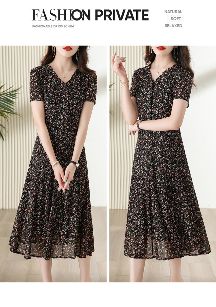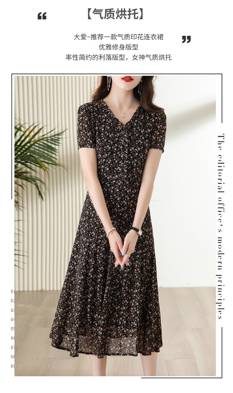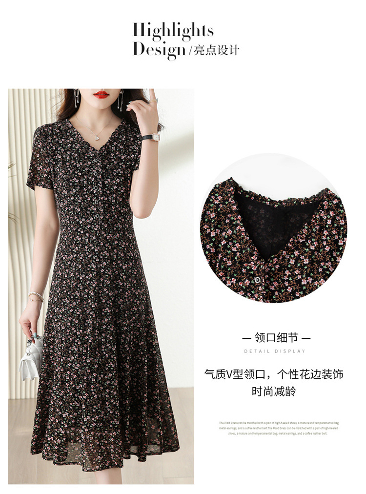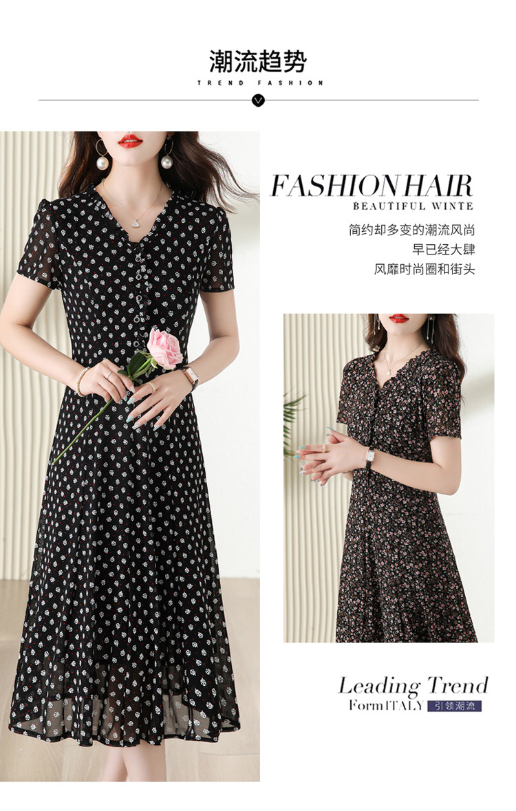 2023夏季时尚修身优雅碎花连衣裙高腰A字裙摆HR-WY78139
