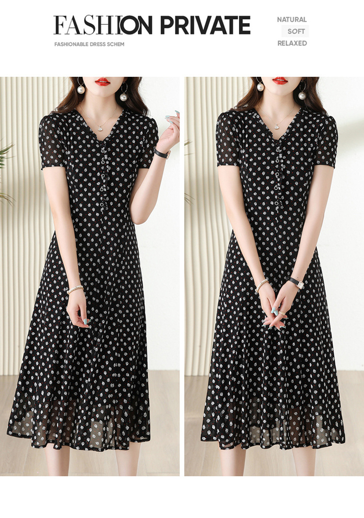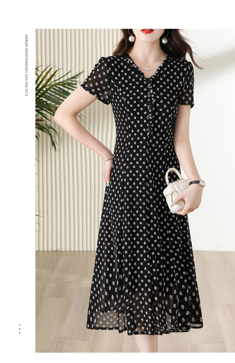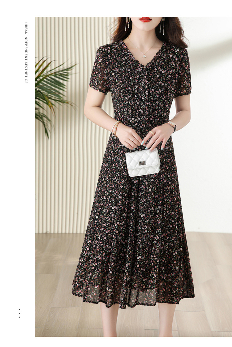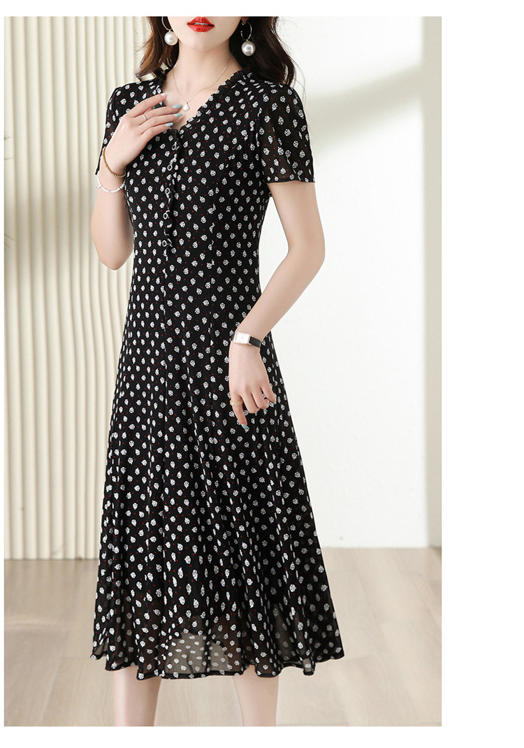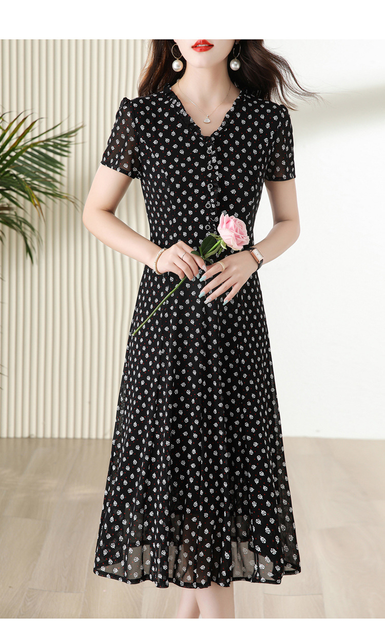 2023夏季时尚修身优雅碎花连衣裙高腰A字裙摆HR-WY78139
