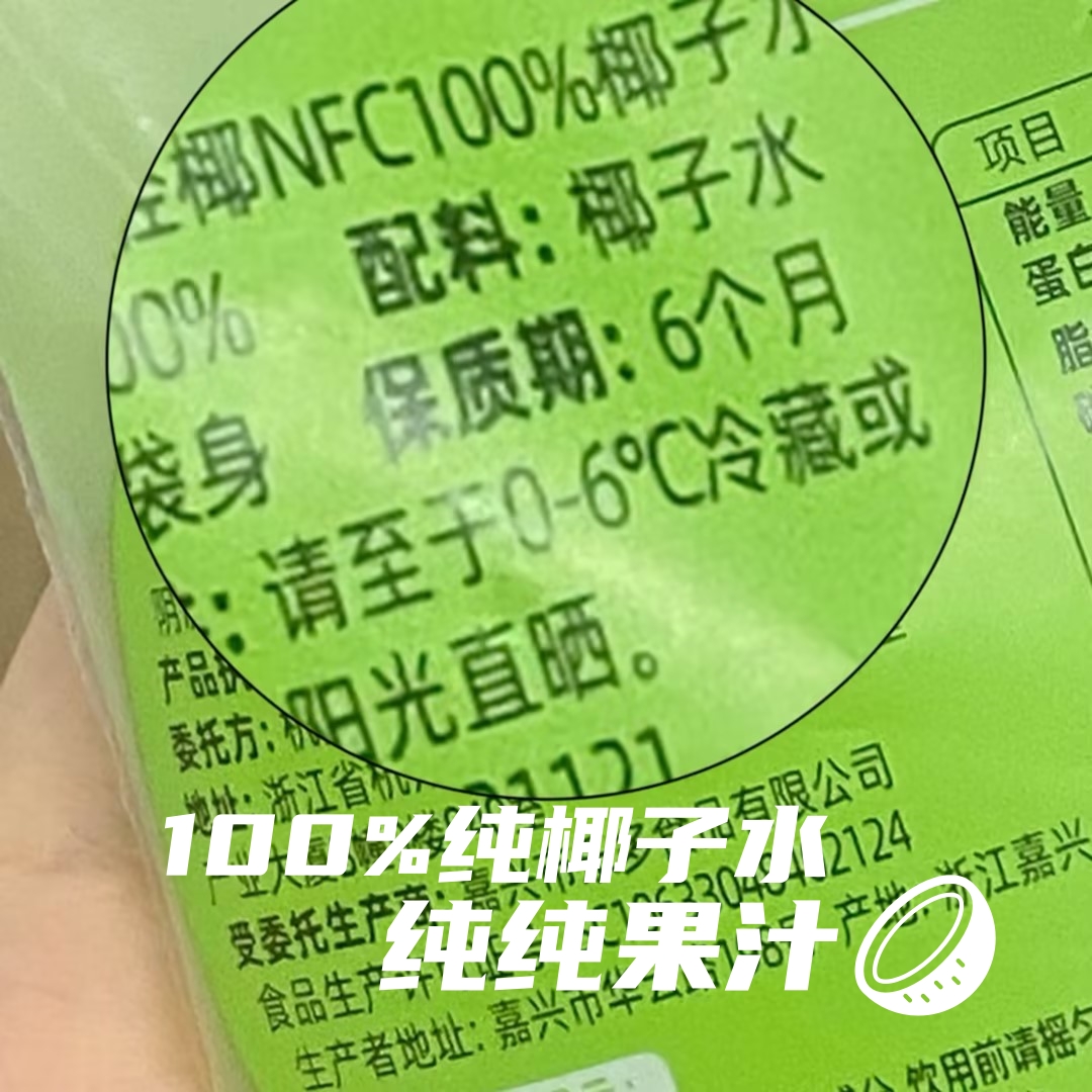 而轻朗轻椰椰子水的配料表真的超级干净!只有100%椰子水