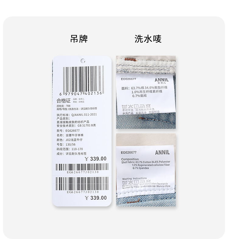 女童全腰牛仔单裤夏季新款安奈儿童装EG626677
