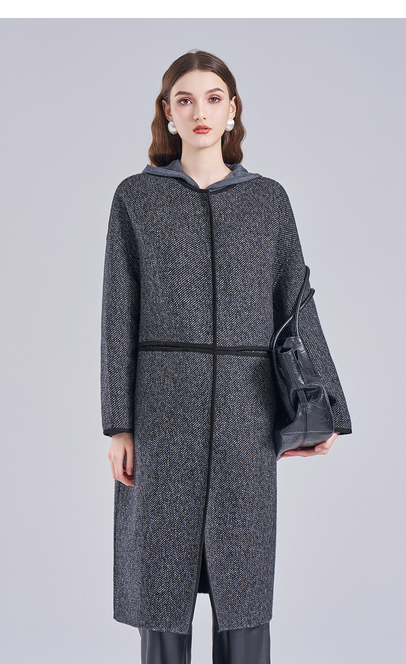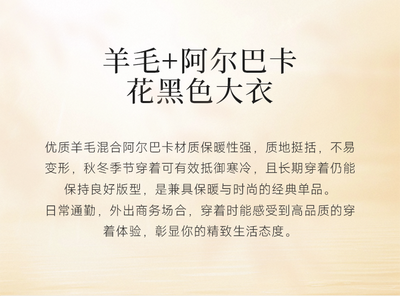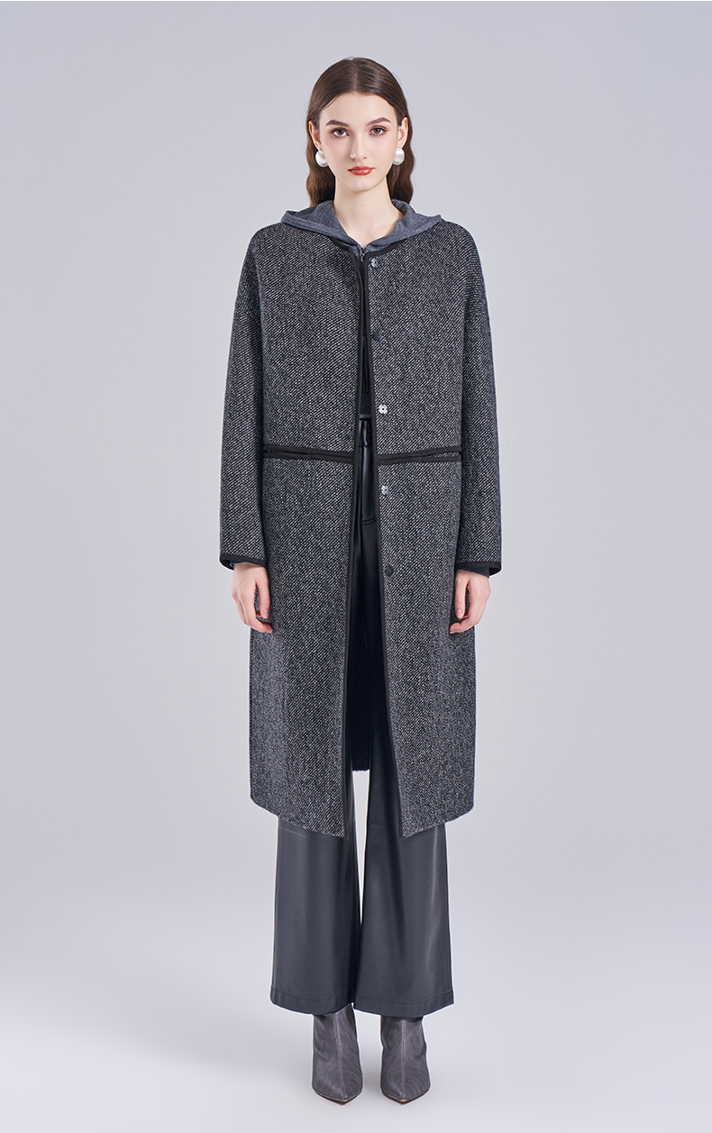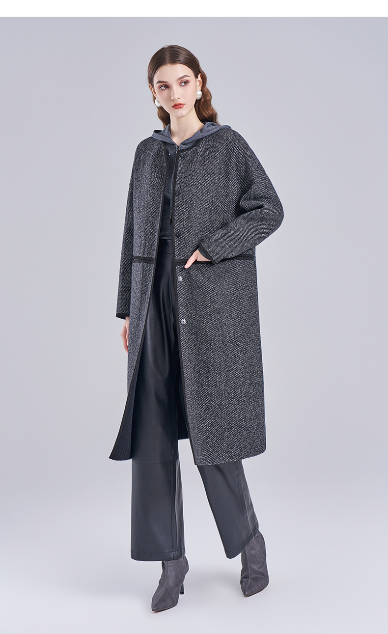乔万尼2025冬新品挺括设计感羊毛羊驼毛混纺人字纹保暖长款毛呢外套ED4A732