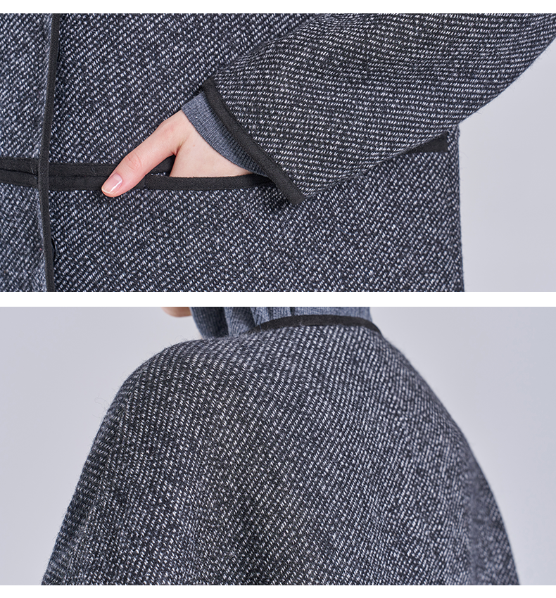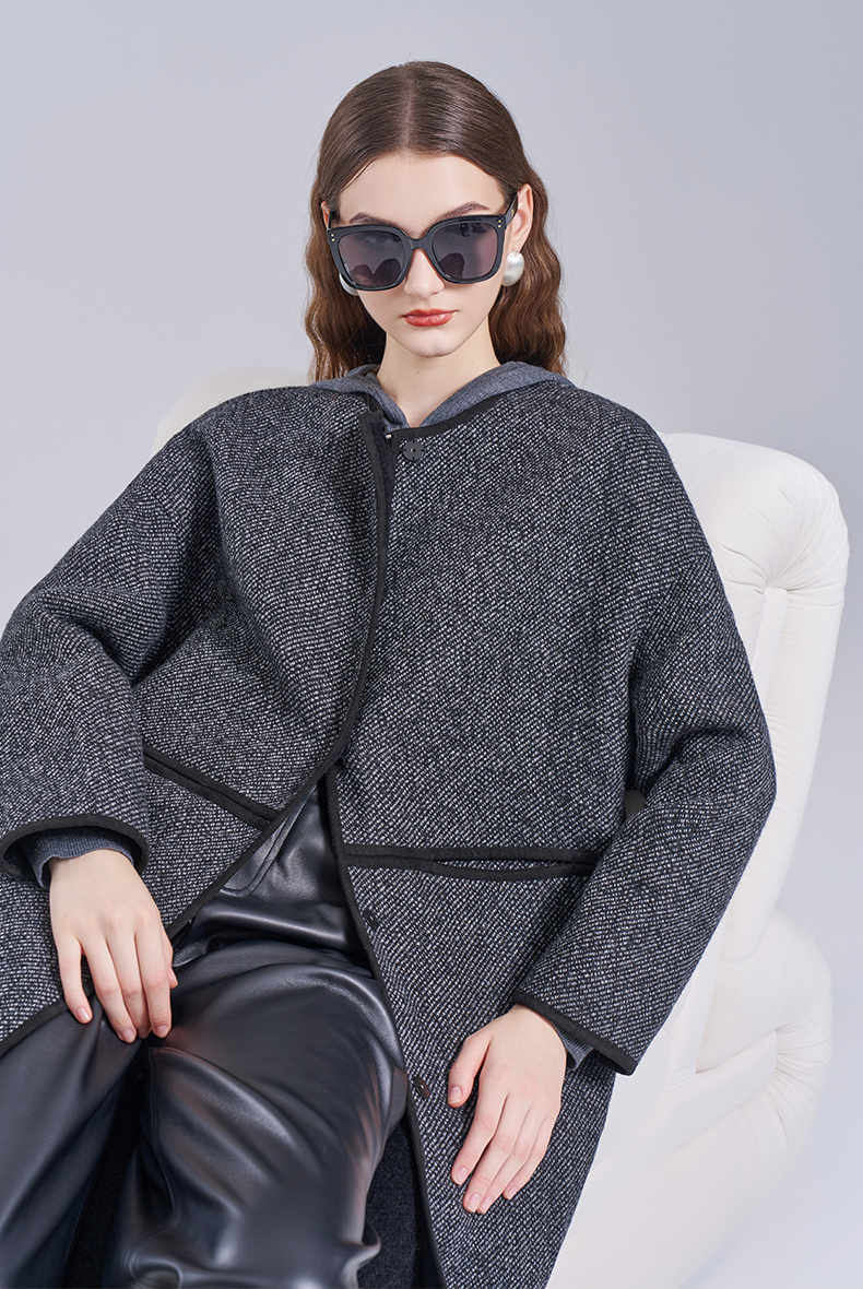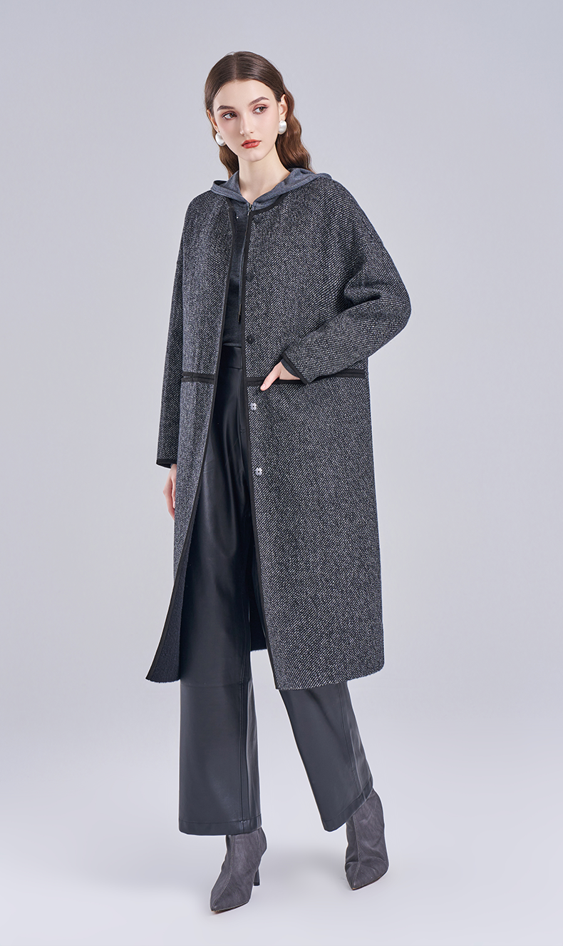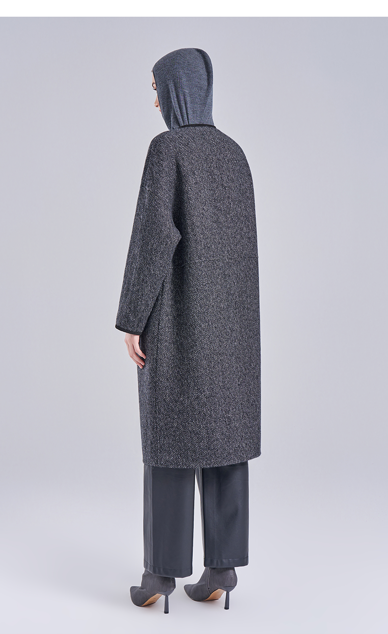 乔万尼2025冬新品挺括设计感羊毛羊驼毛混纺人字纹保暖长款毛呢外套ED4A732