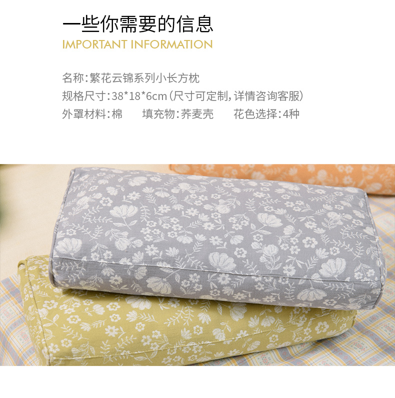 繁花云锦系列长方枕旅行便携小成人枕纯荞麦壳