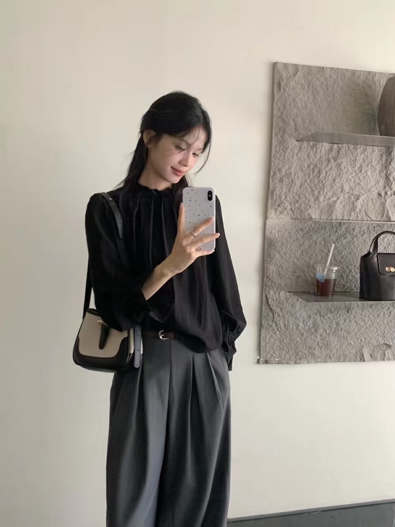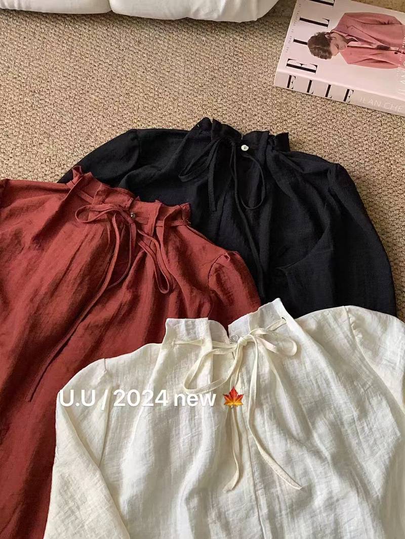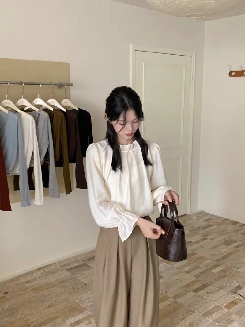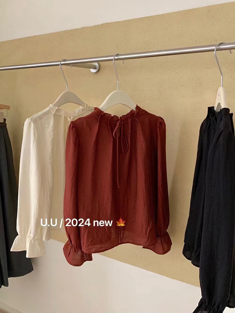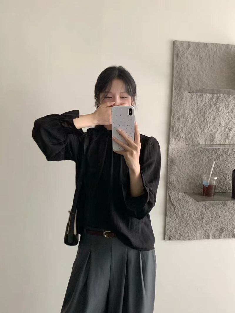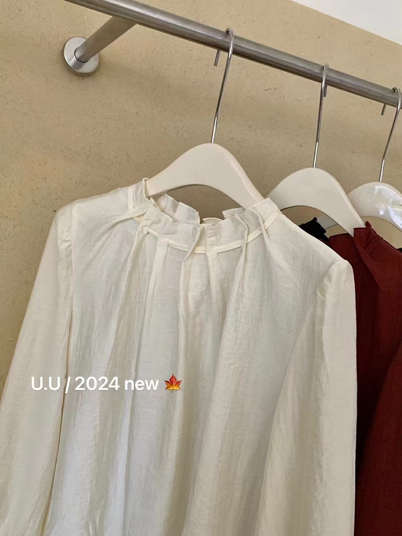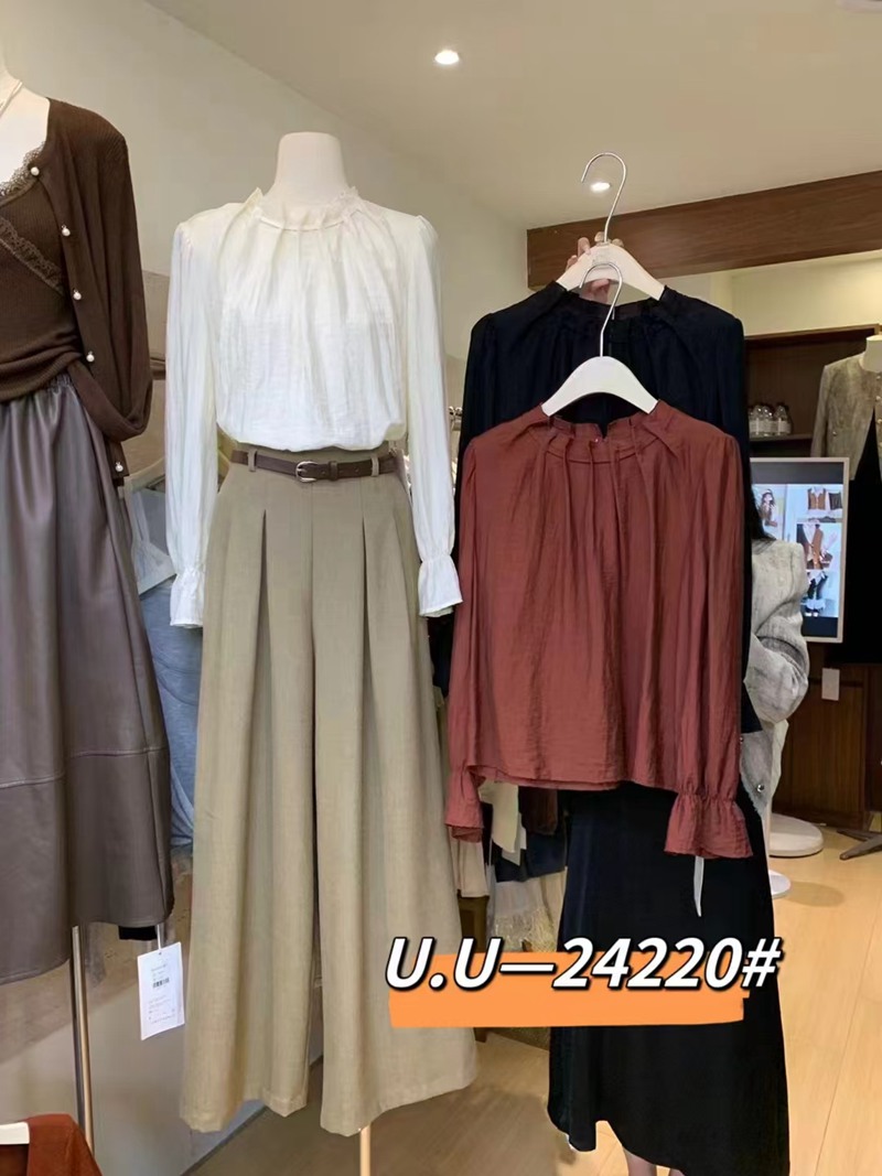 【特惠不退换】天丝绉褶皱设计长袖上衣 FLW-UJ4HC124220【24220#】