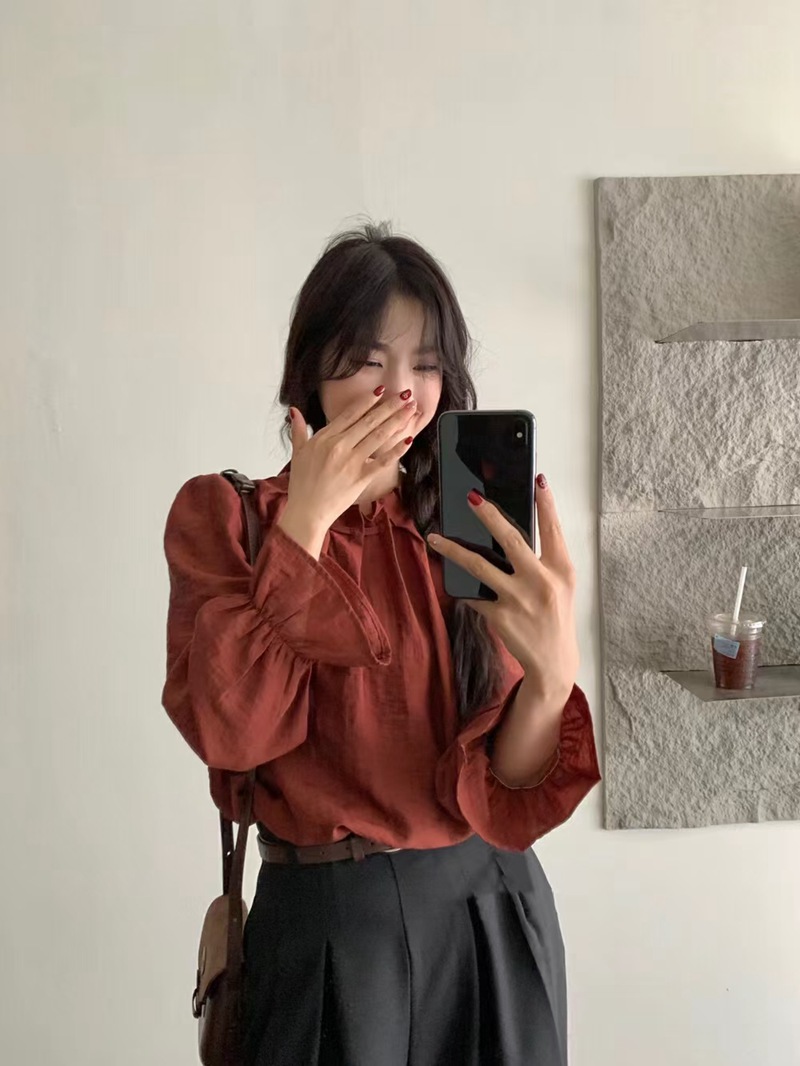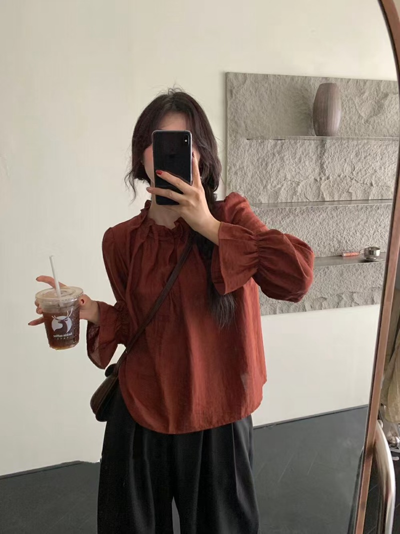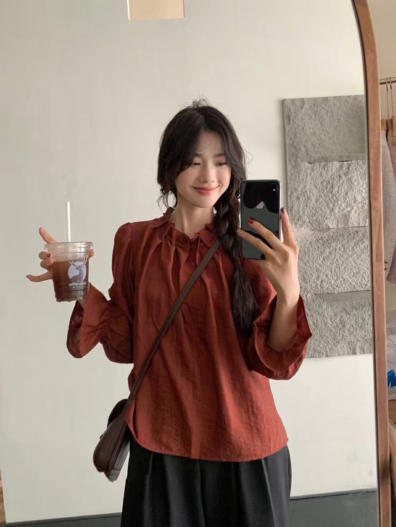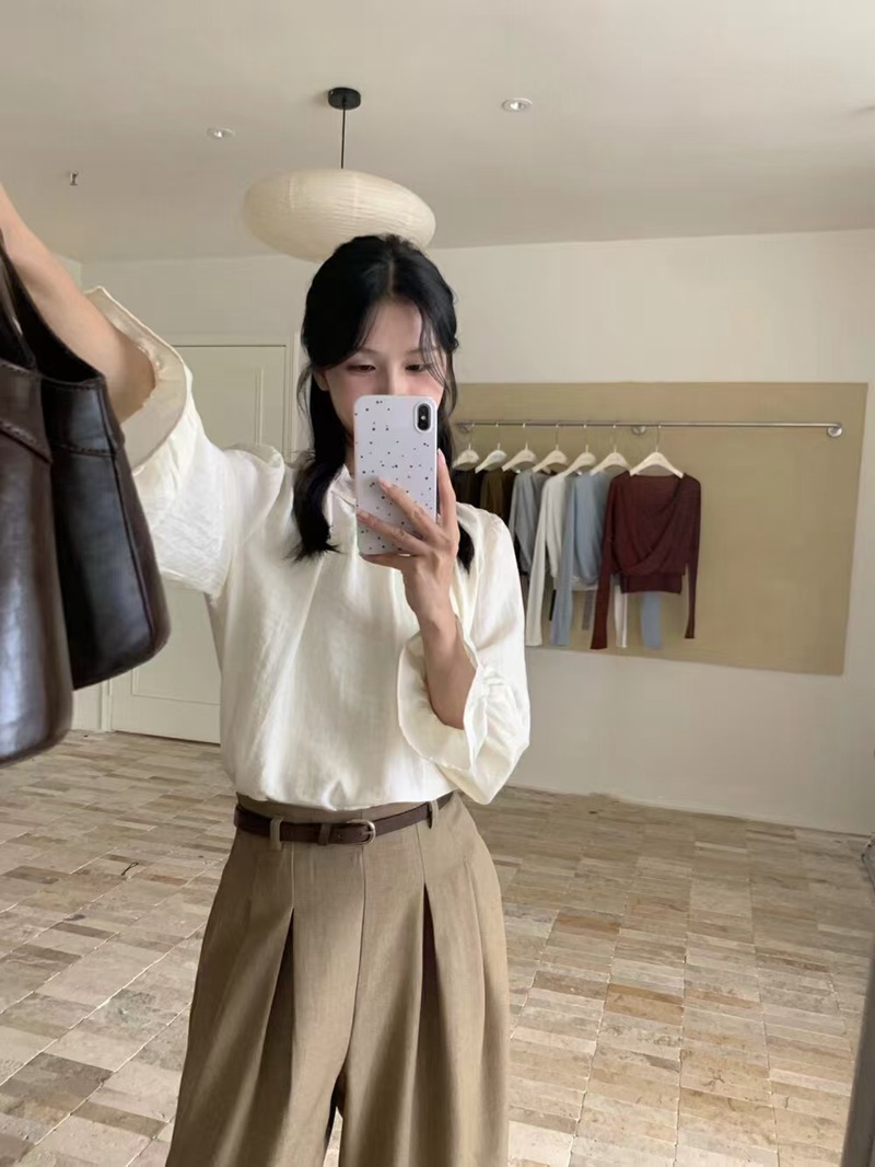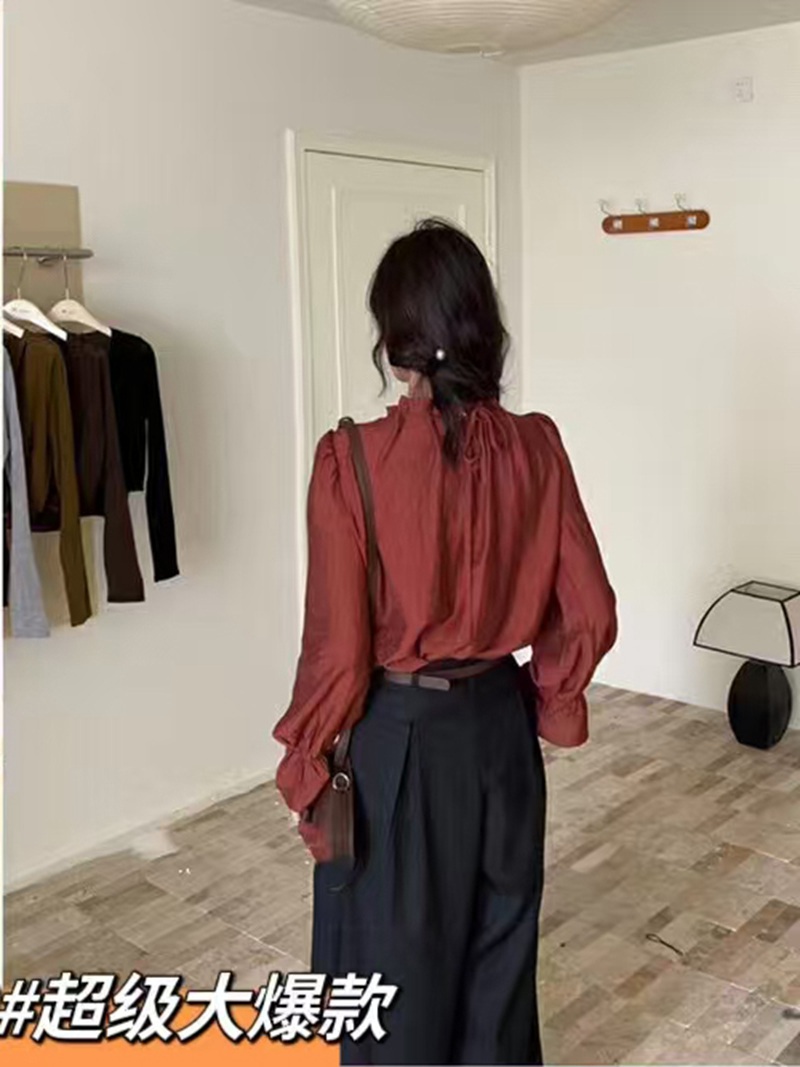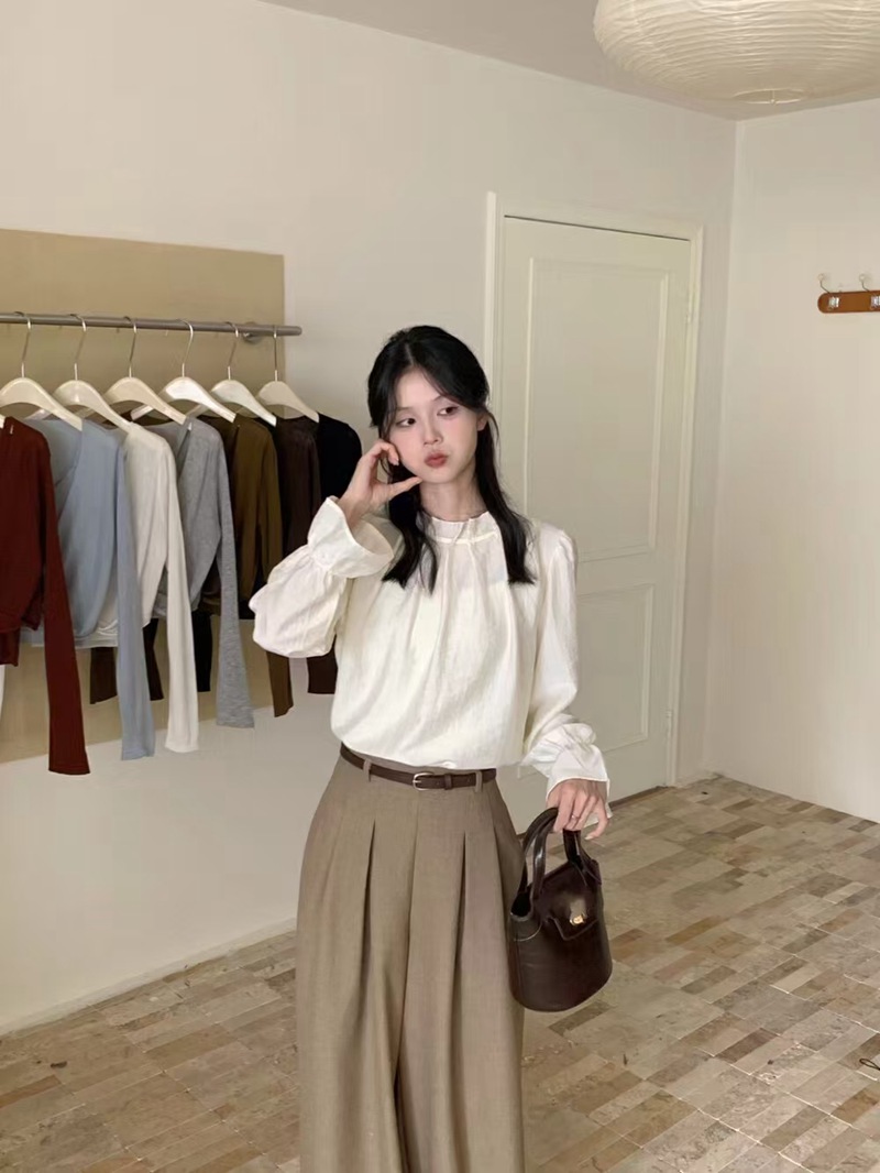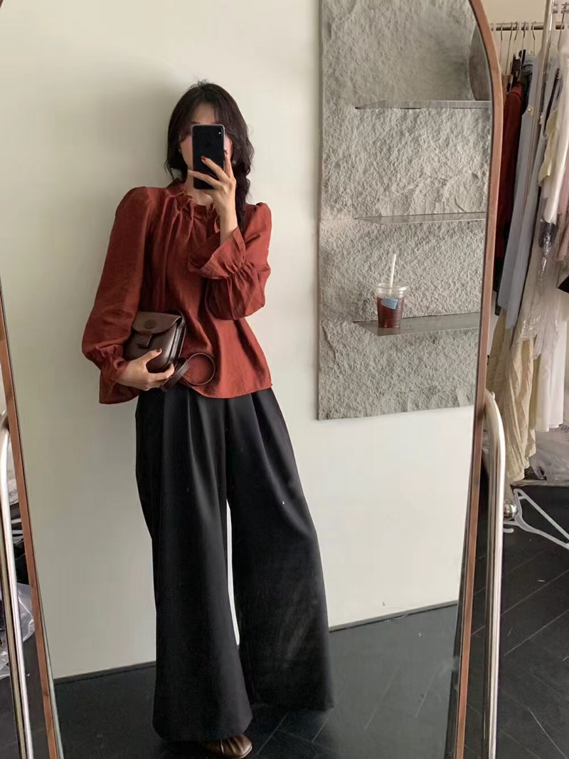 【特惠不退换】天丝绉褶皱设计长袖上衣 FLW-UJ4HC124220【24220#】