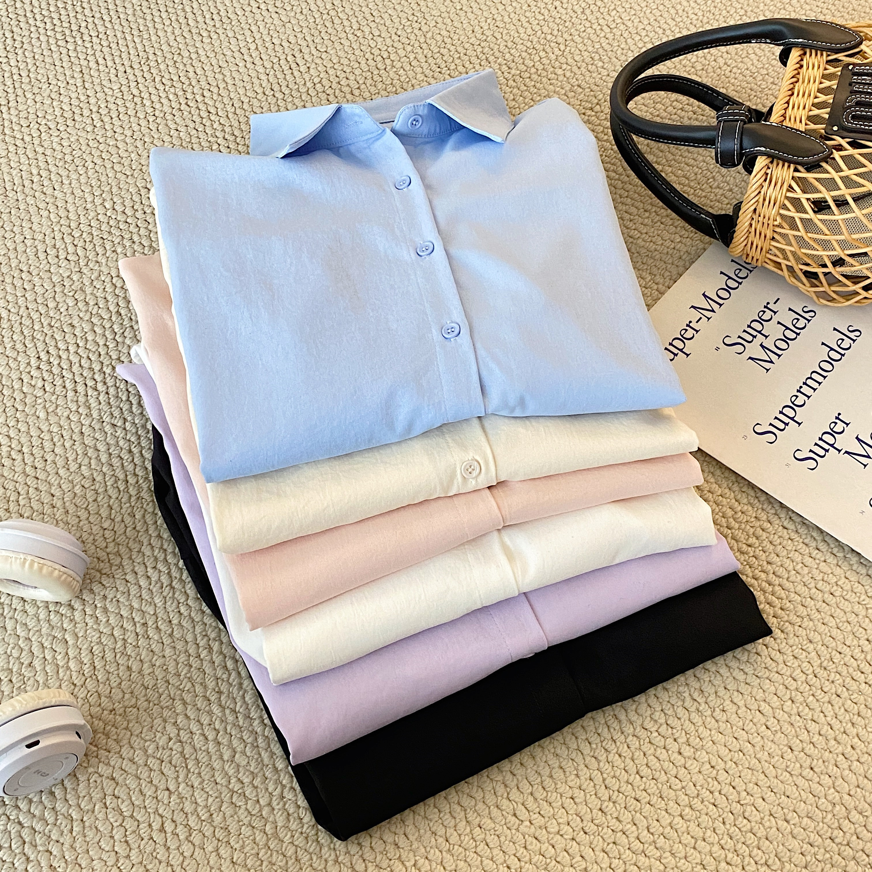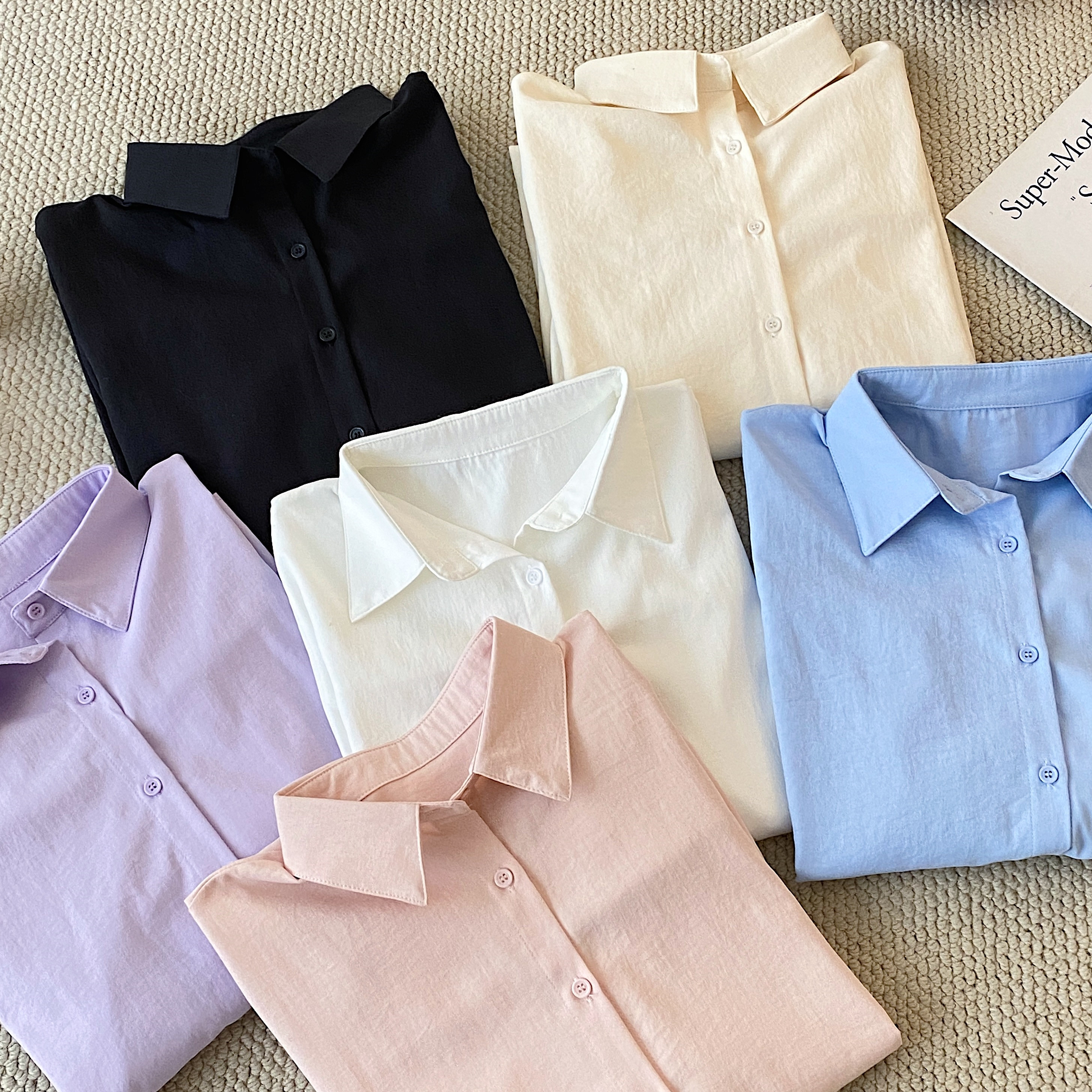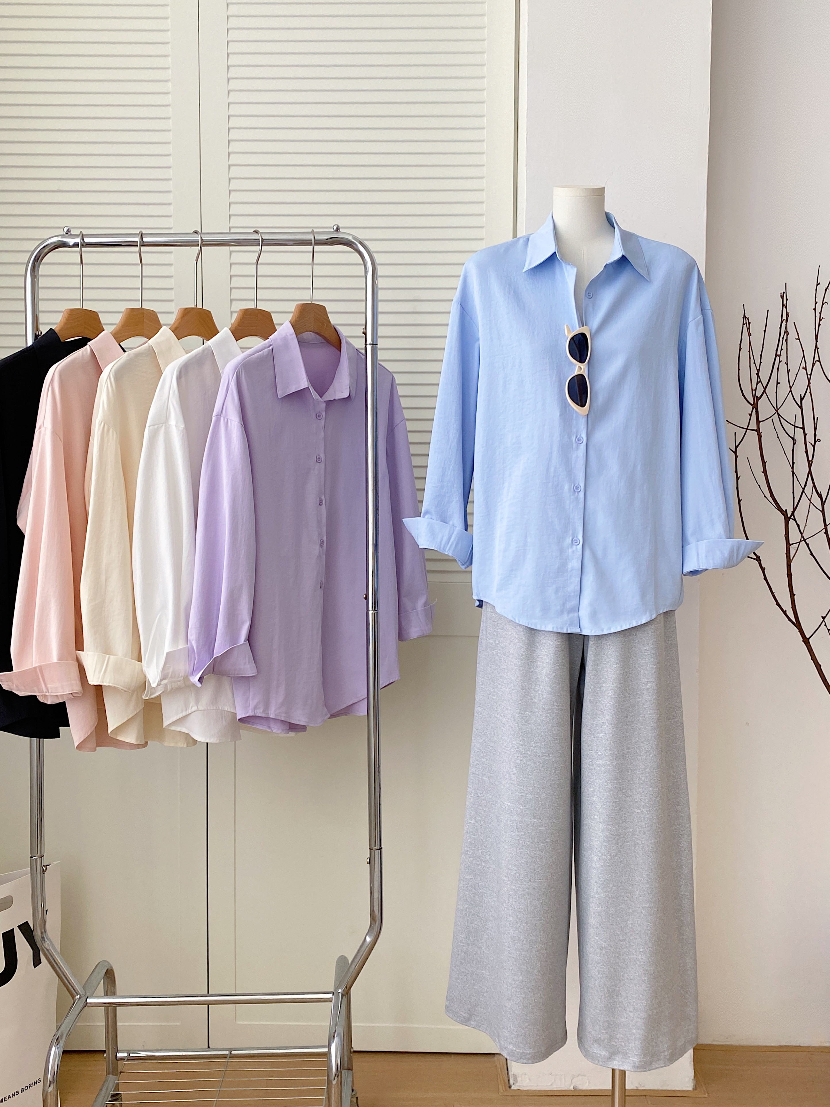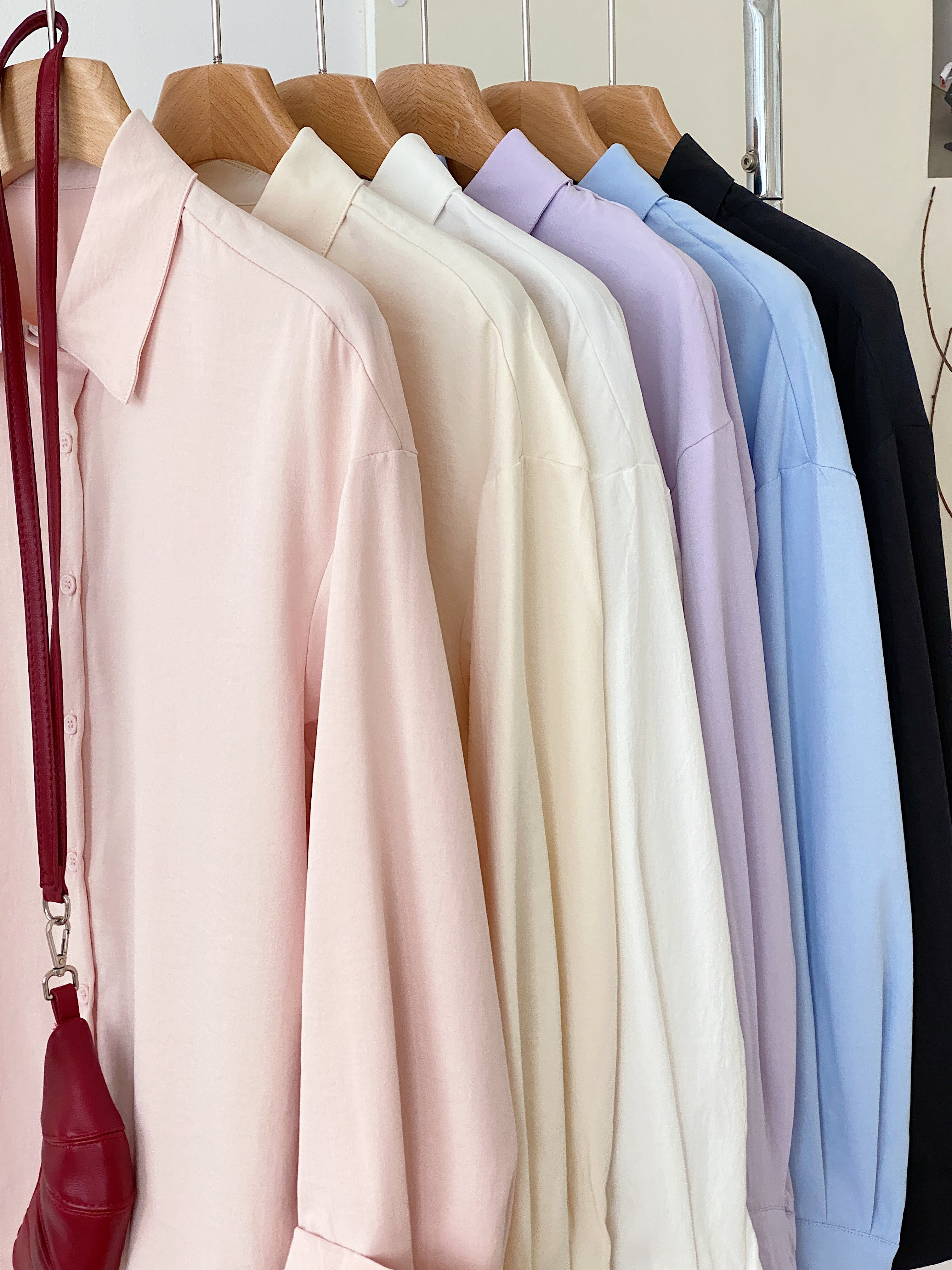 【初秋多巴胺穿搭|把彩虹穿在身上!】纯色衬衫气质POLO领,亲肤的面料手感柔软,立体剪裁干净减龄