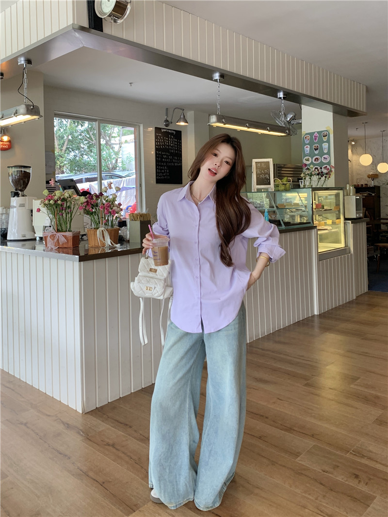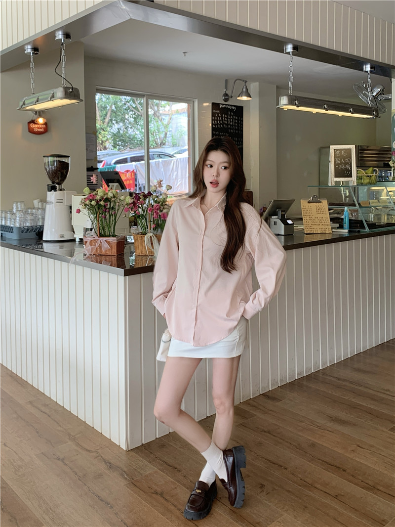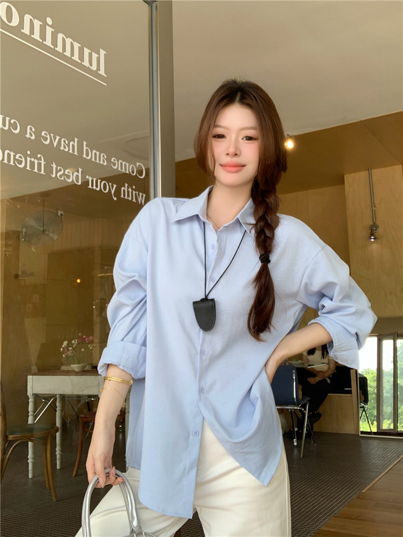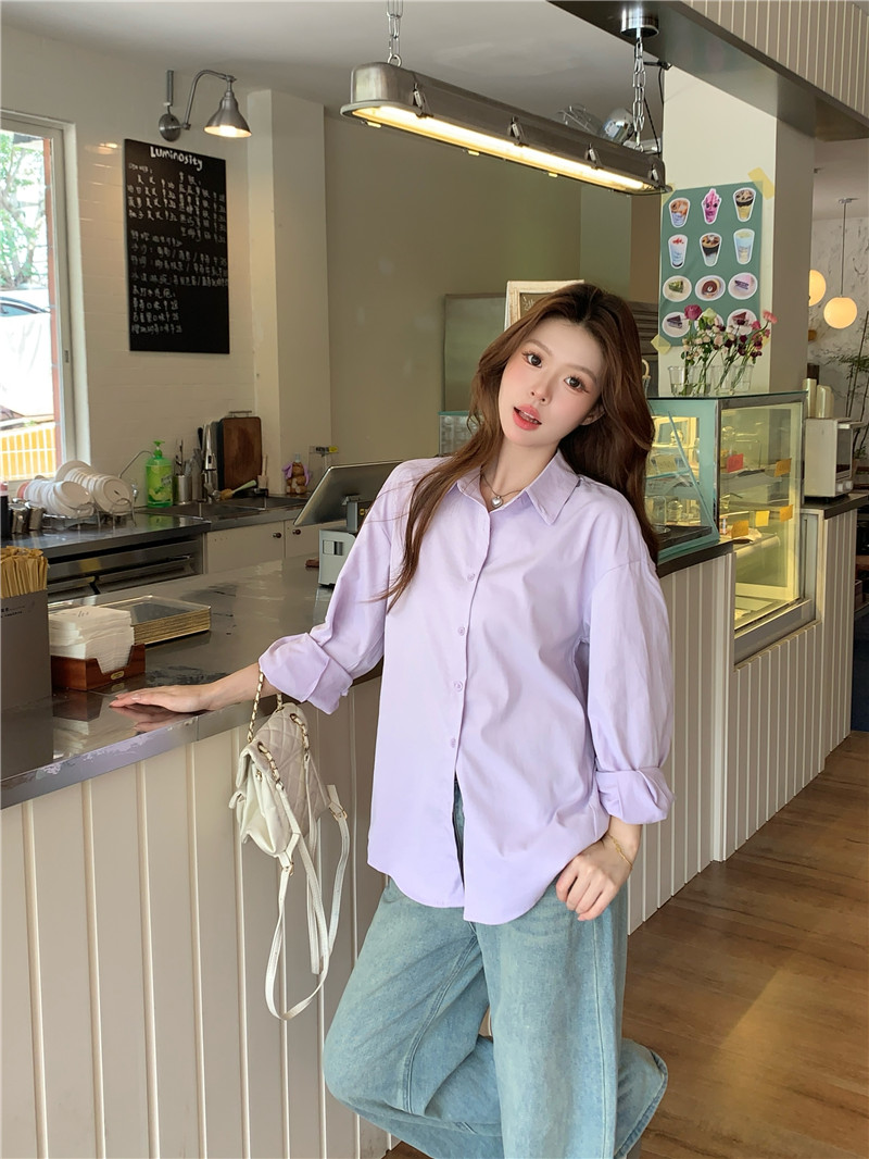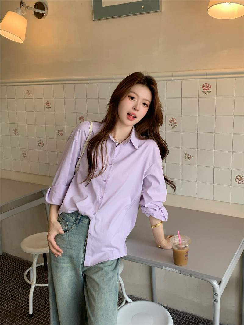 【初秋多巴胺穿搭|把彩虹穿在身上!】纯色衬衫气质POLO领,亲肤的面料手感柔软,立体剪裁干净减龄