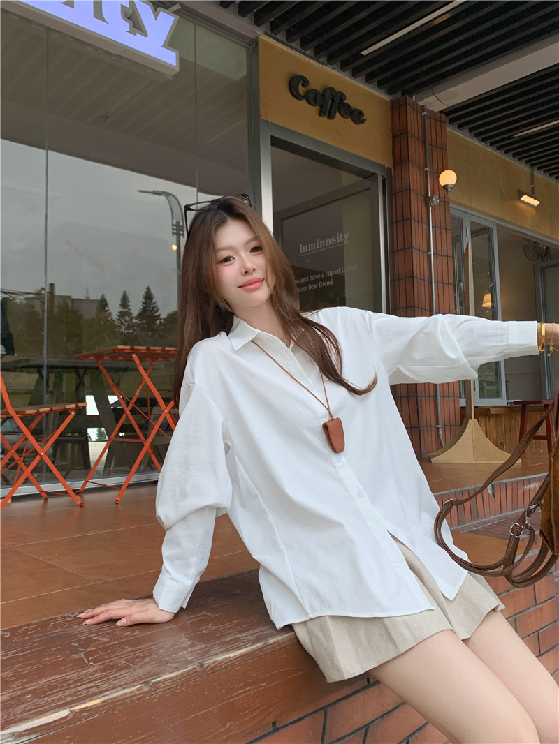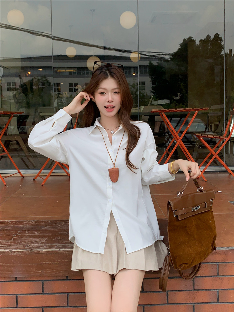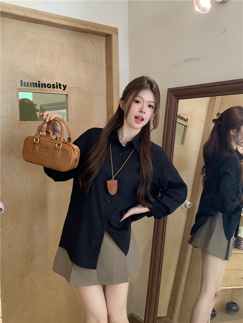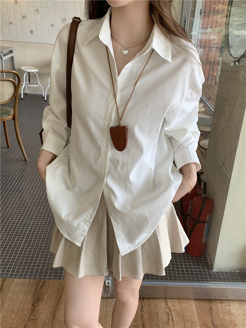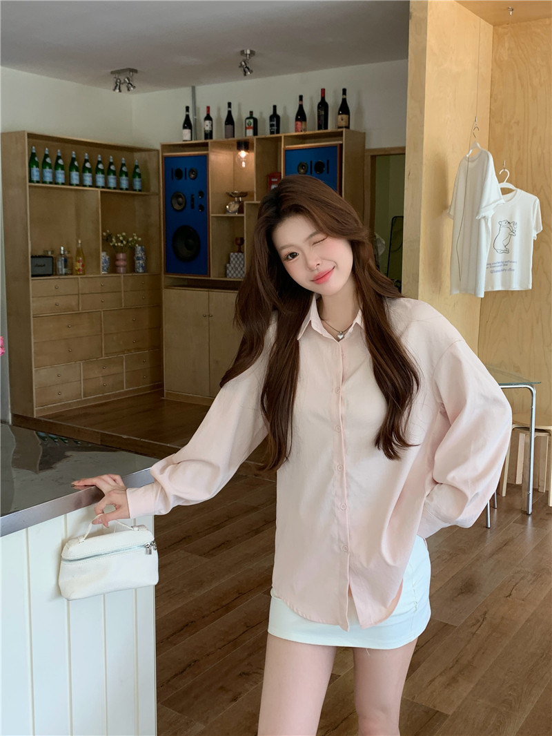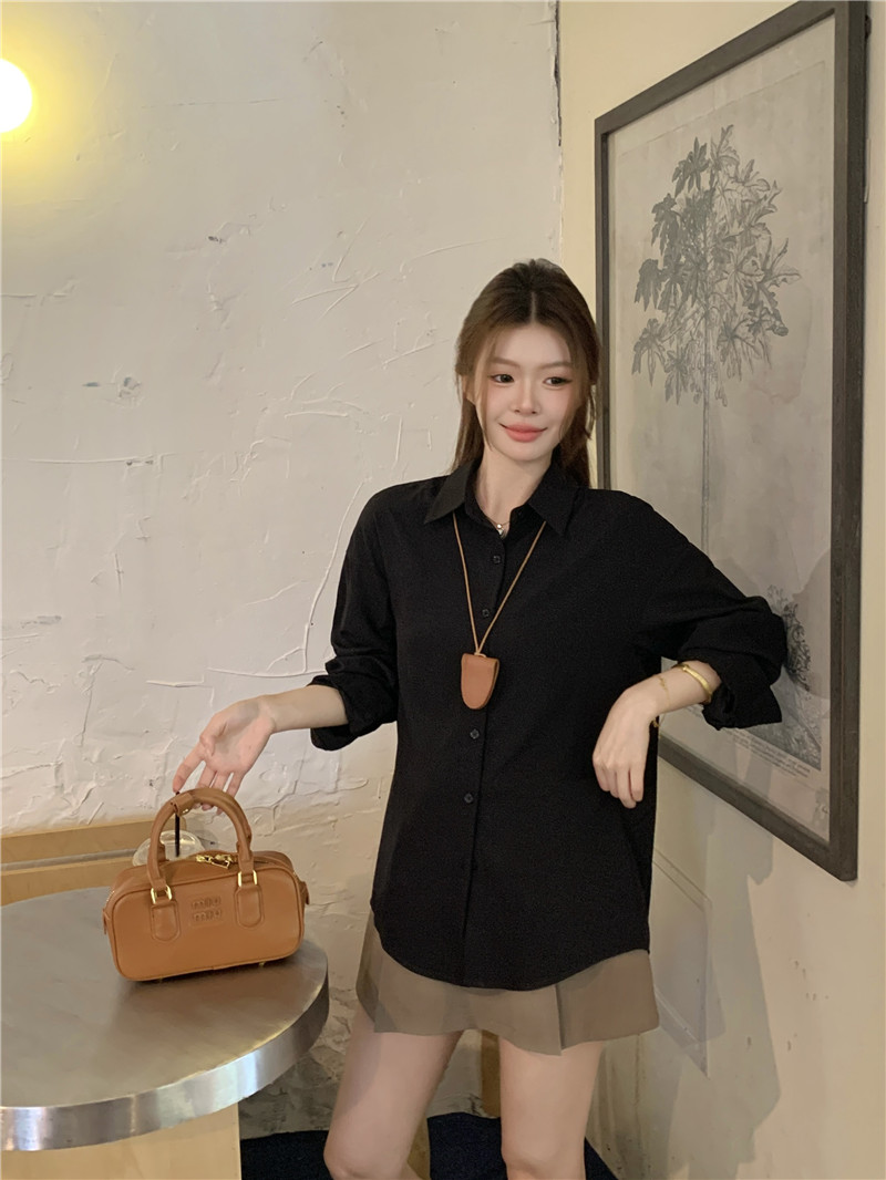 【初秋多巴胺穿搭|把彩虹穿在身上!】纯色衬衫气质POLO领,亲肤的面料手感柔软,立体剪裁干净减龄