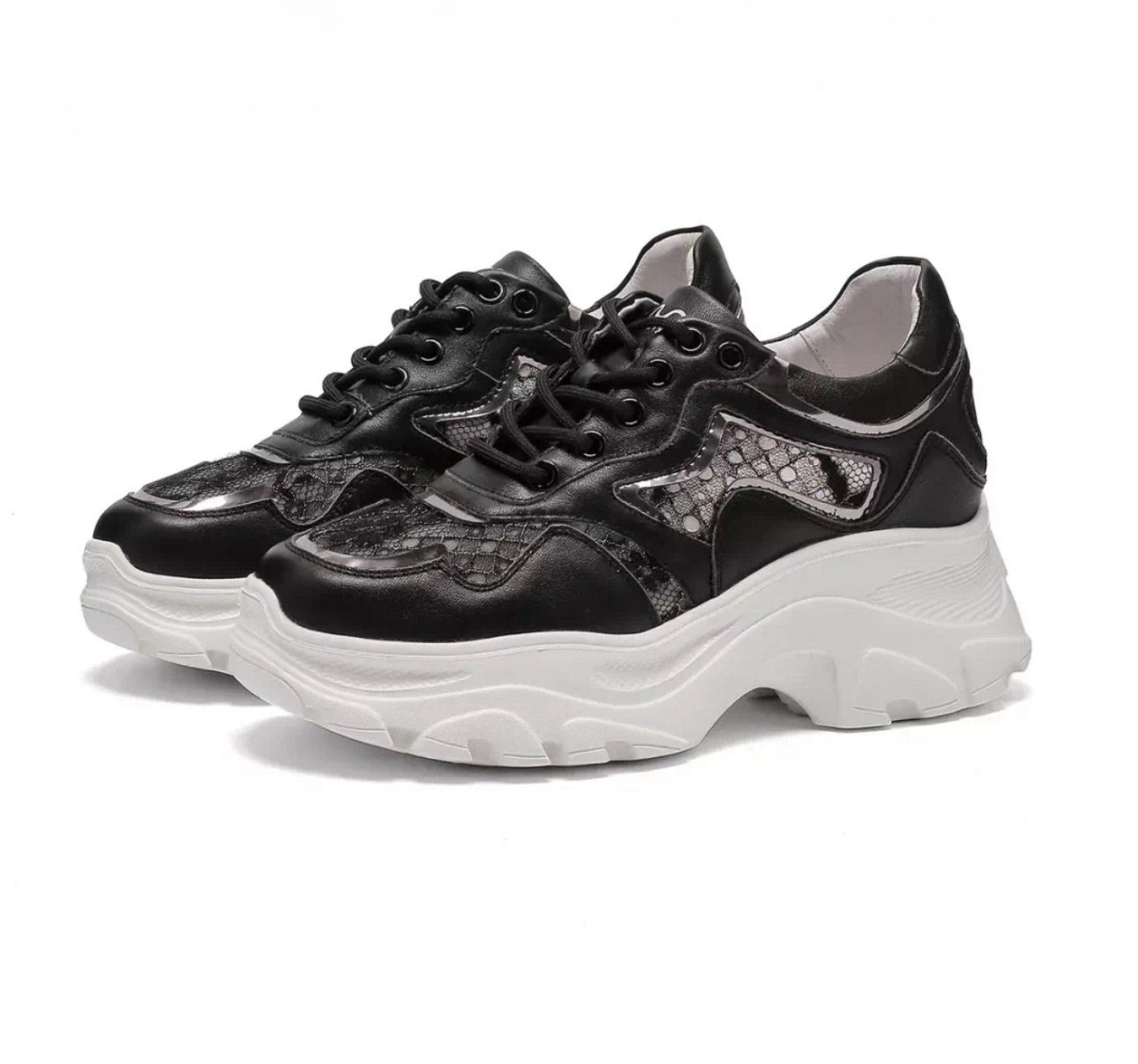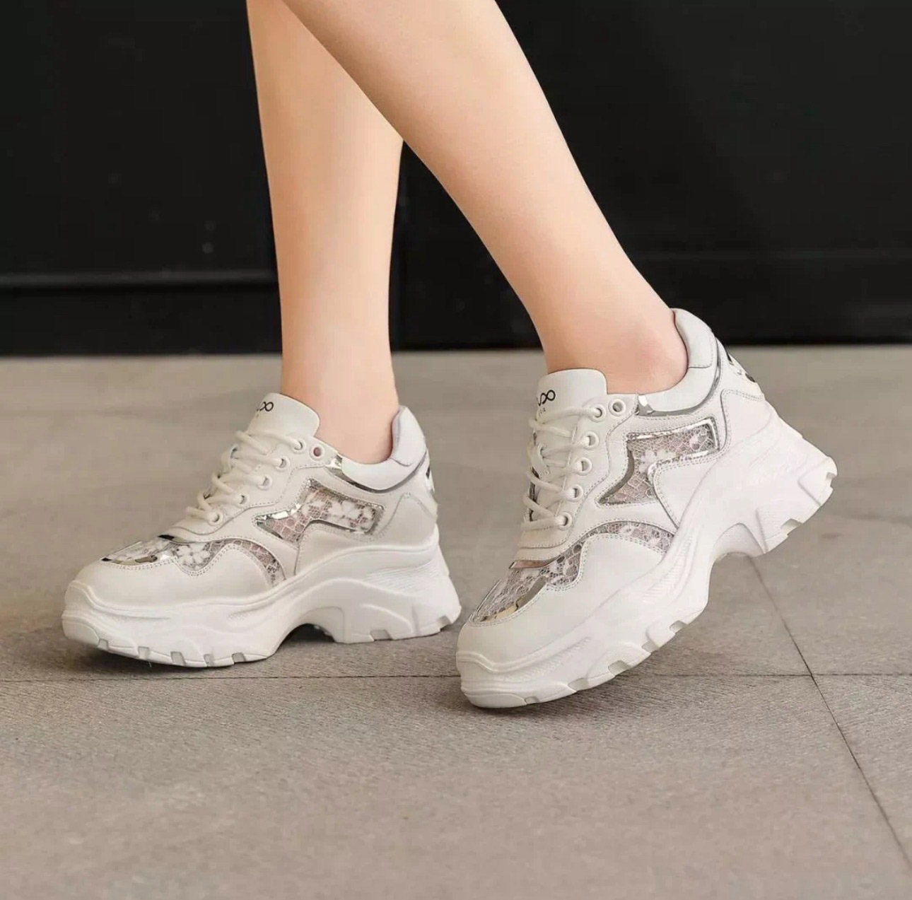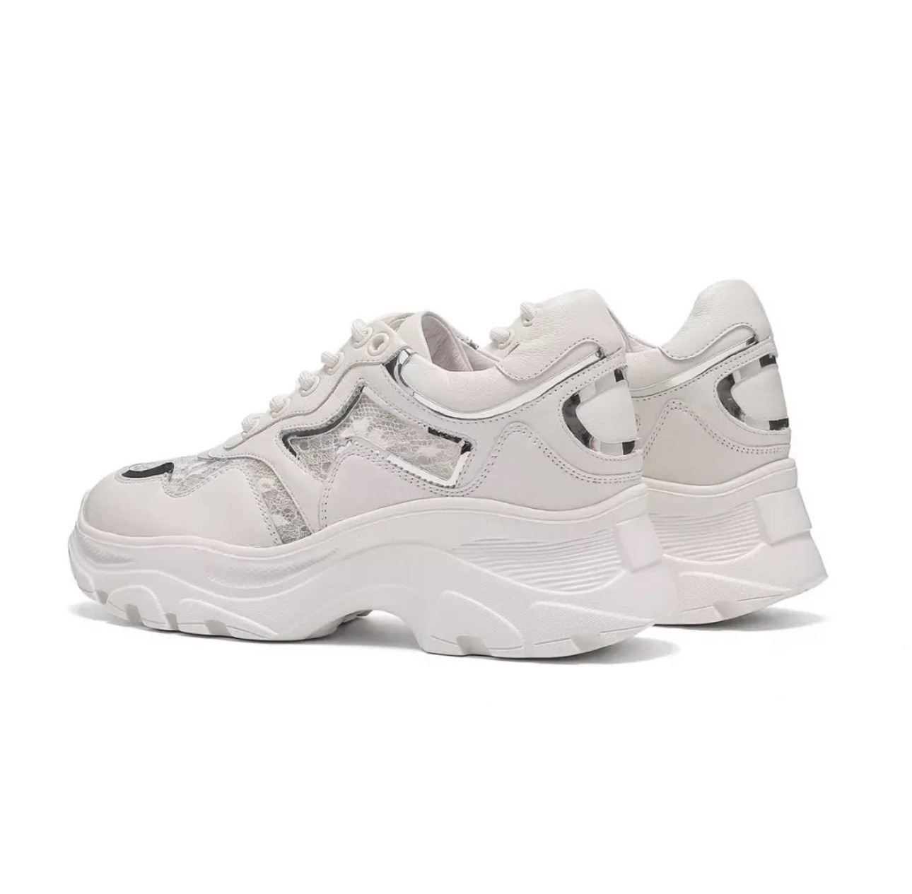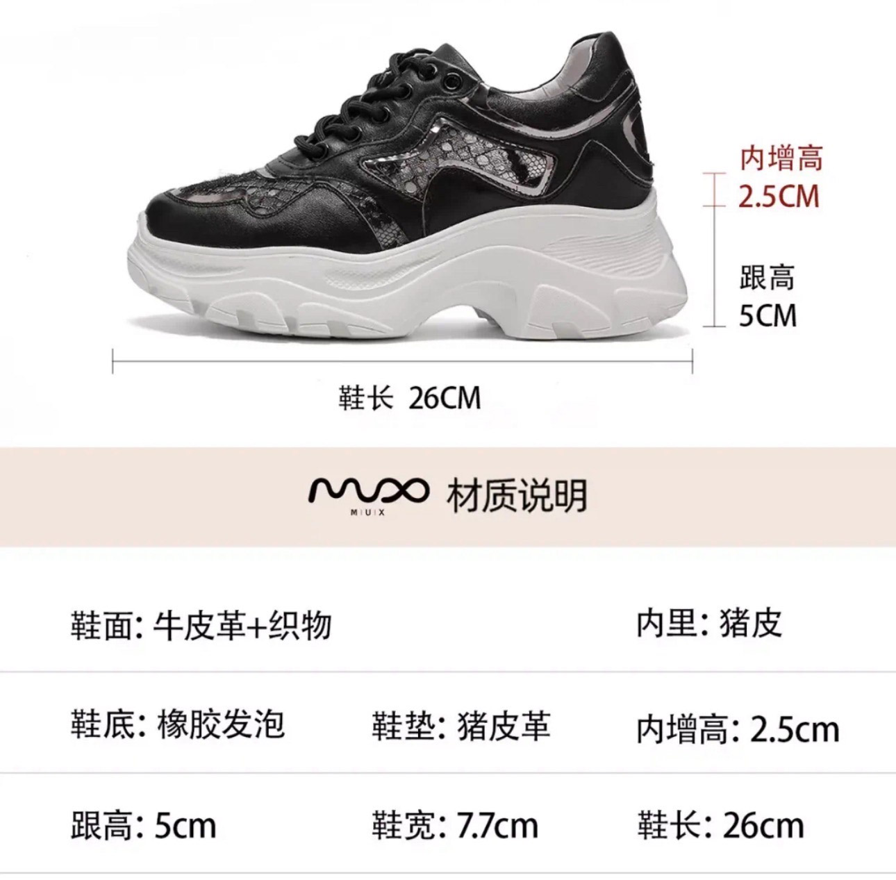 洛诗琳20347网面蕾丝时尚女鞋2025新款拼接透气内增高老爹鞋316
