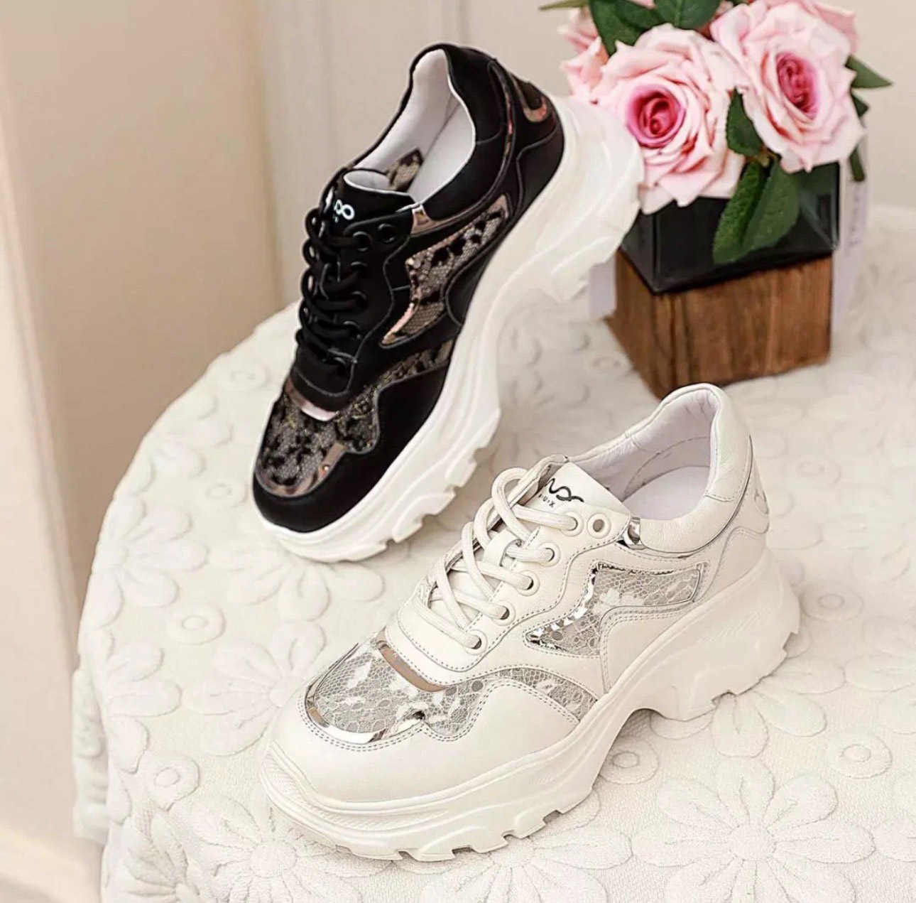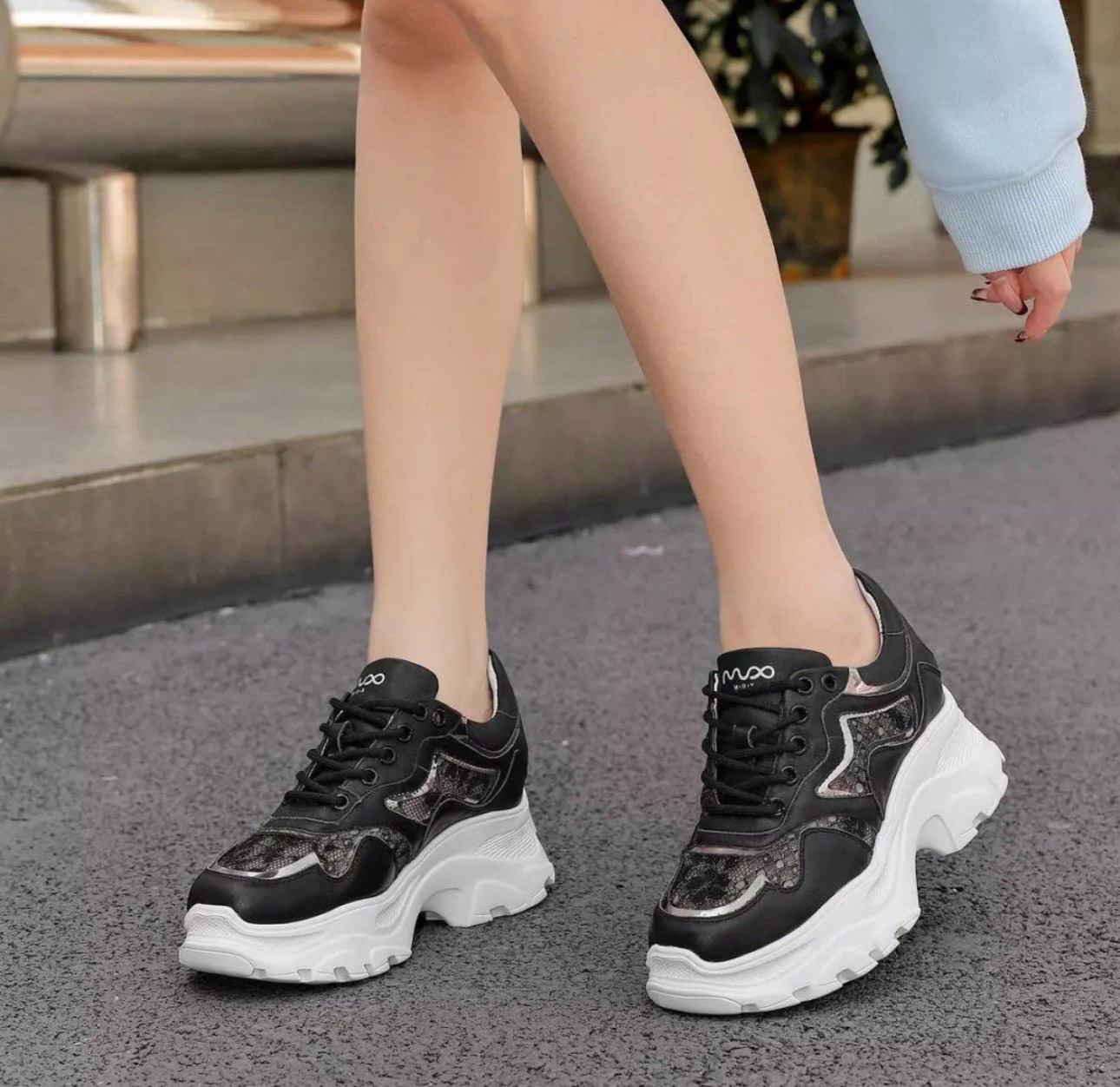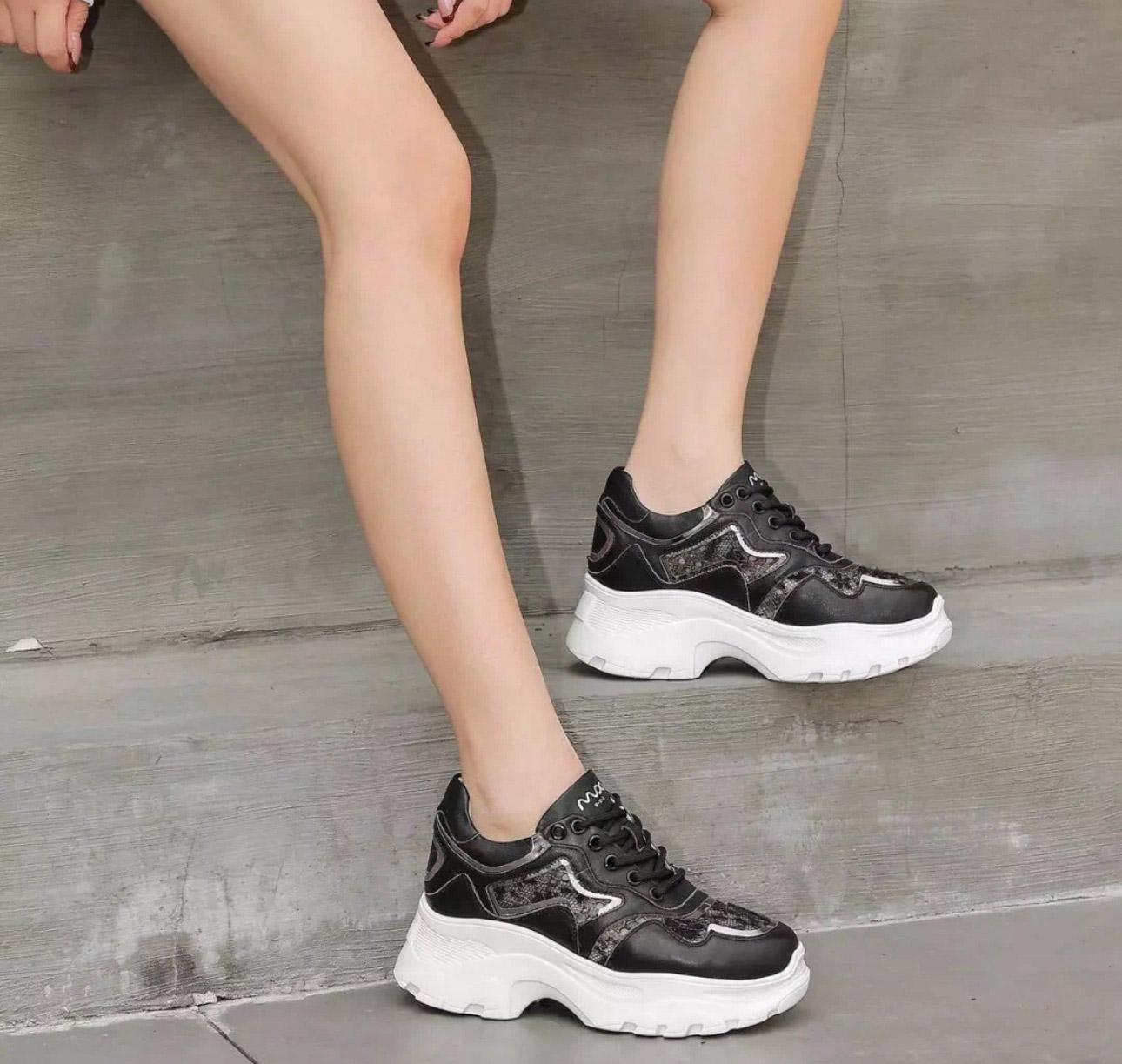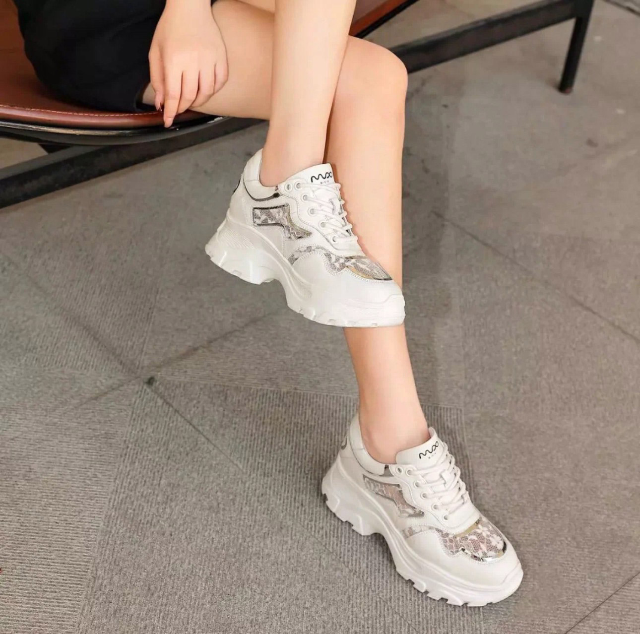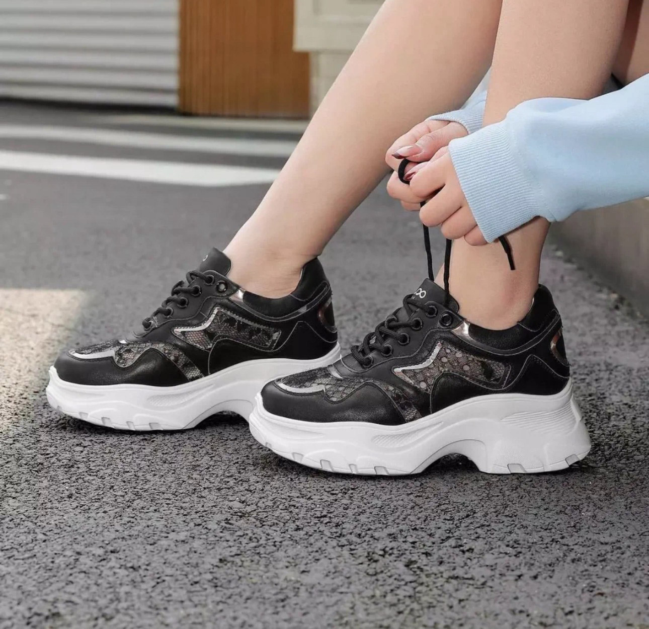 洛诗琳20347网面蕾丝时尚女鞋2025新款拼接透气内增高老爹鞋316