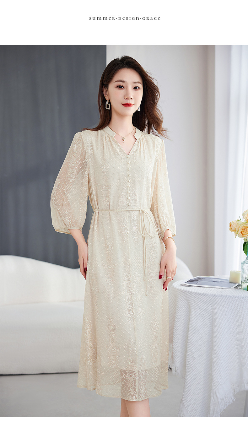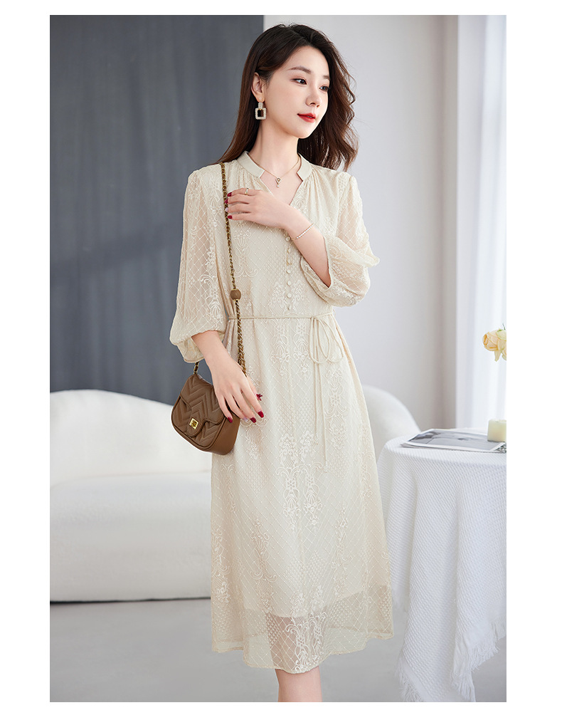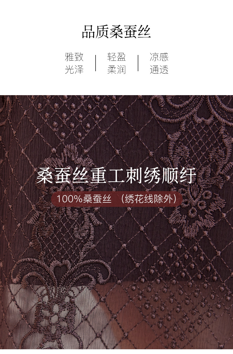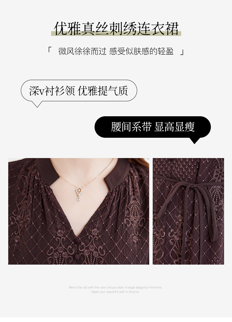 QS-82599128丝缕画境中大淑女装定制100%丝桑蚕顺宇绣花五分袖真丝连衣裙9128
