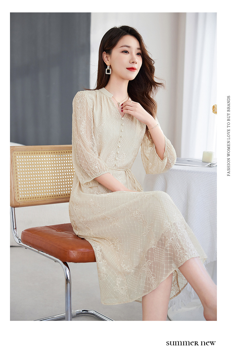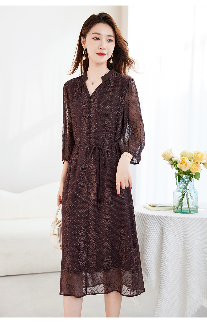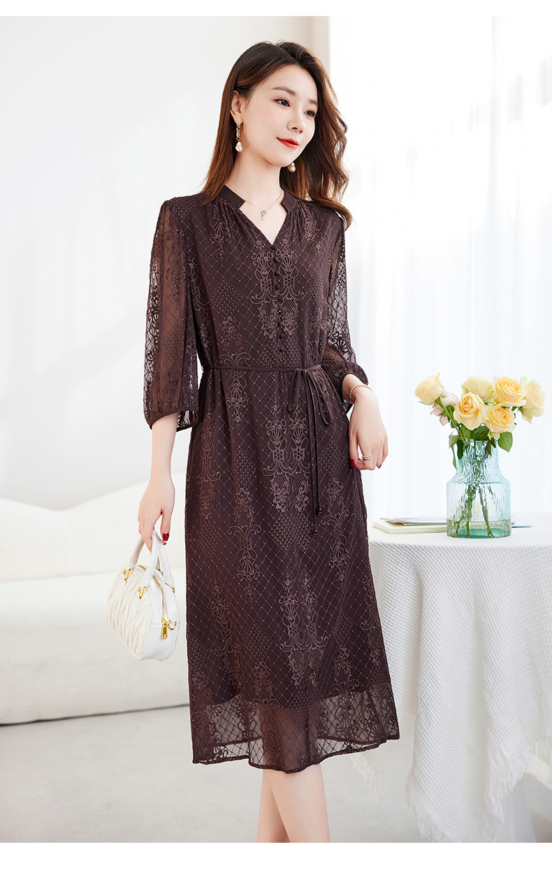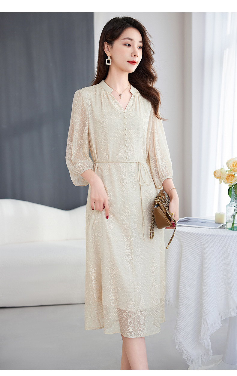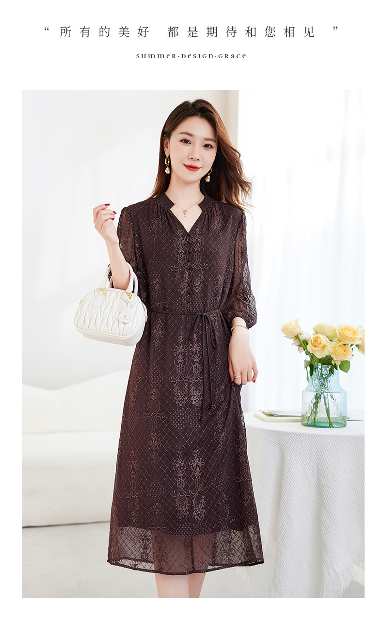 QS-82599128丝缕画境中大淑女装定制100%丝桑蚕顺宇绣花五分袖真丝连衣裙9128