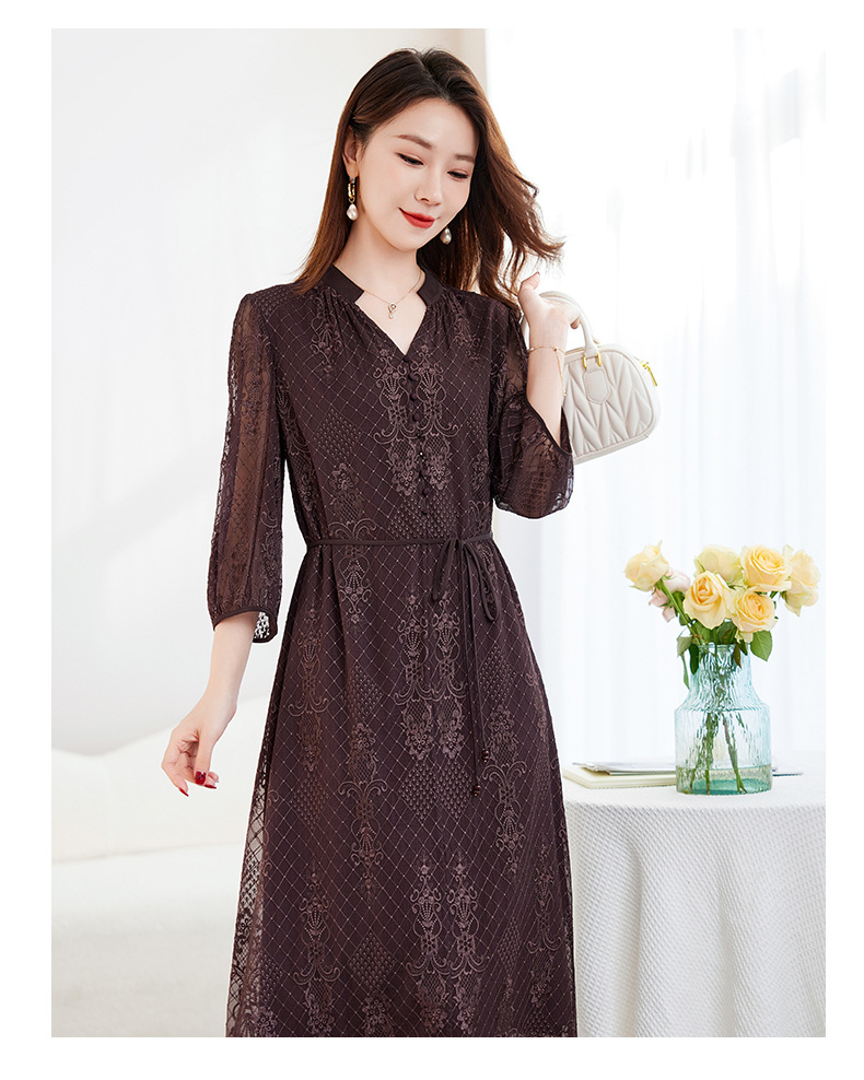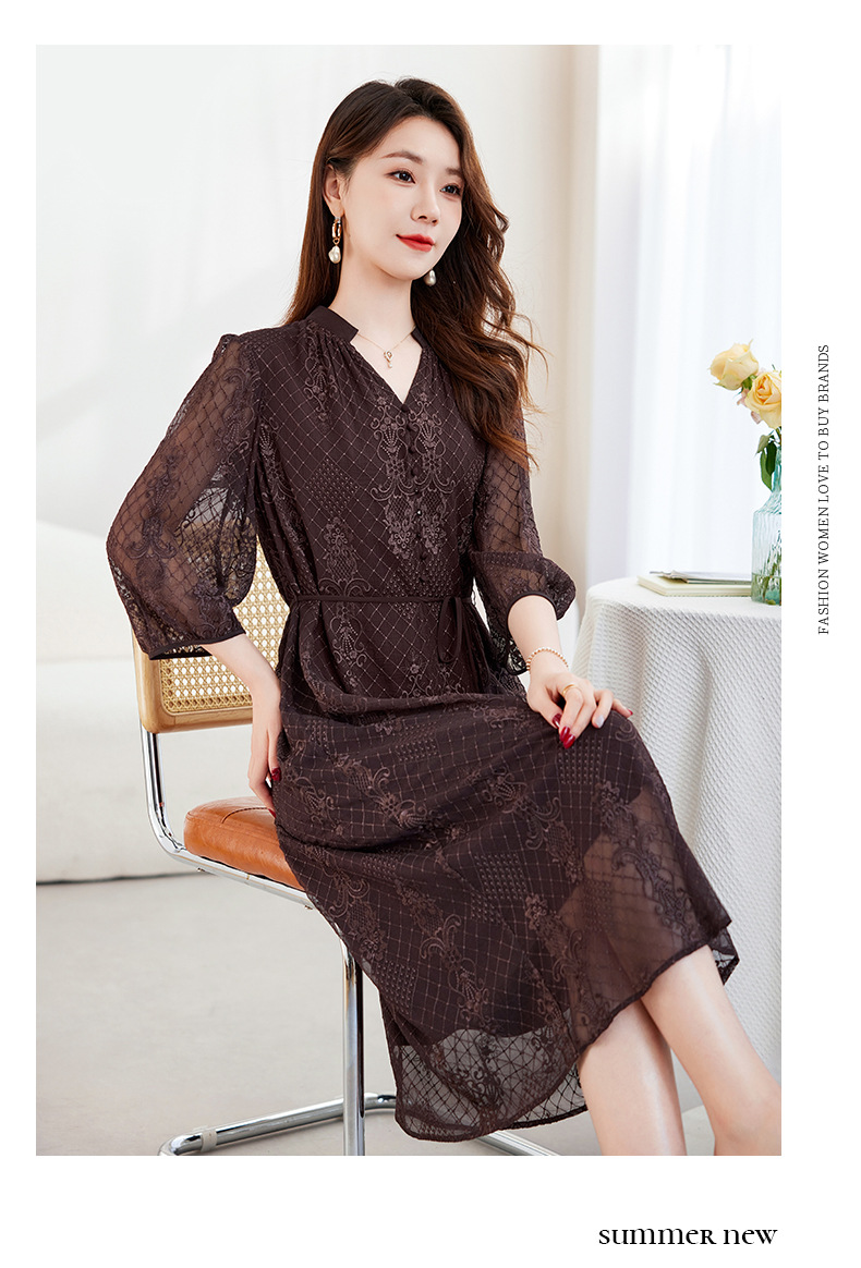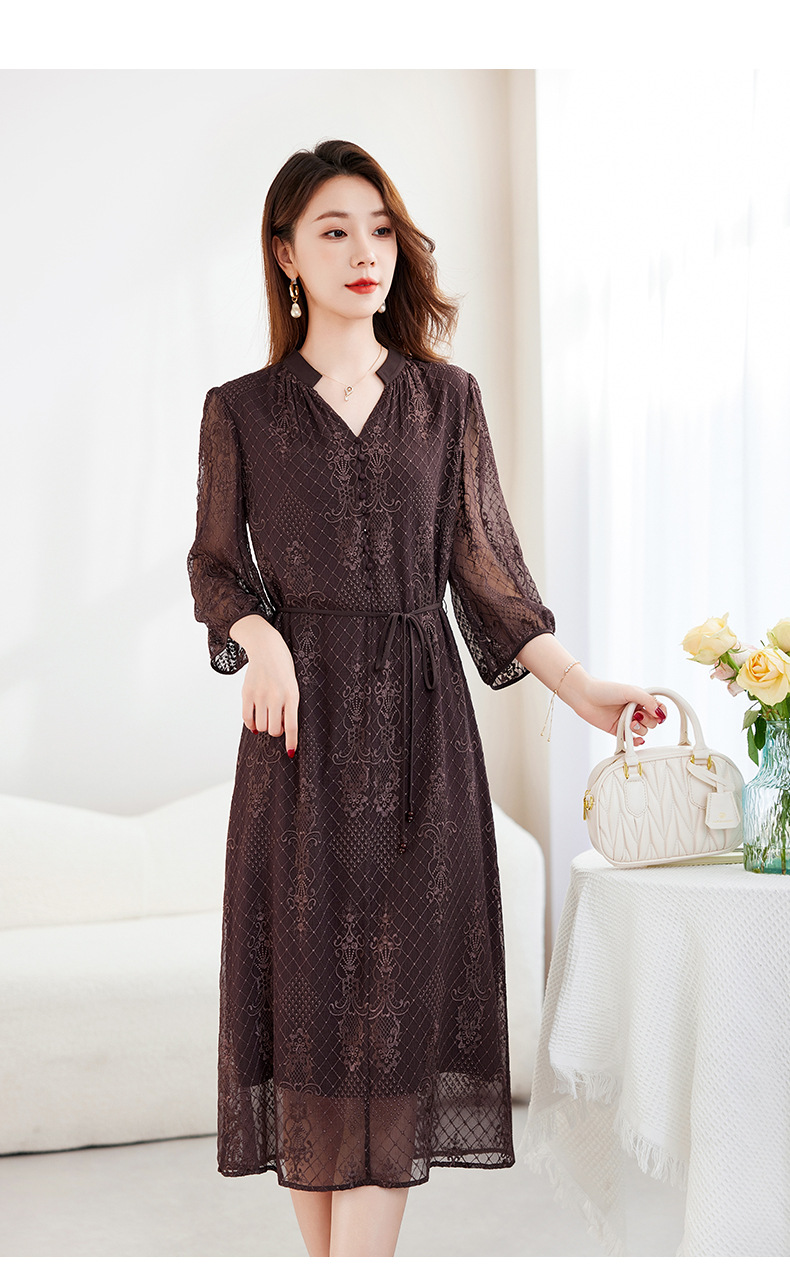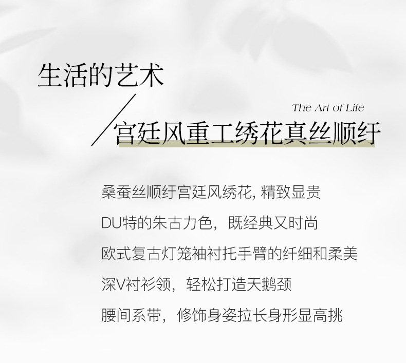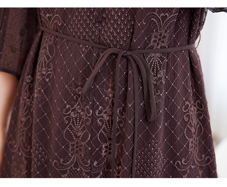 QS-82599128丝缕画境中大淑女装定制100%丝桑蚕顺宇绣花五分袖真丝连衣裙9128