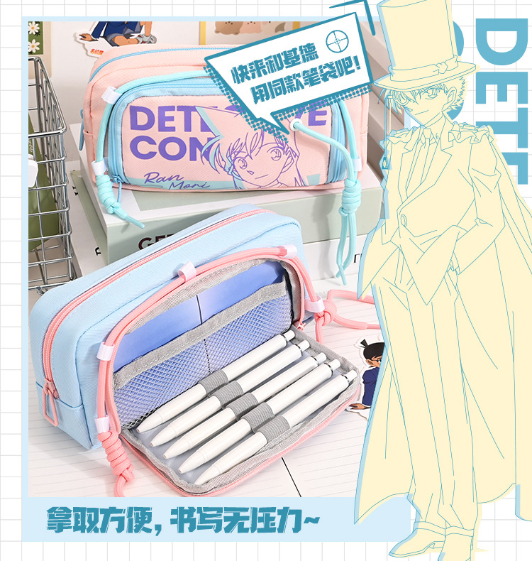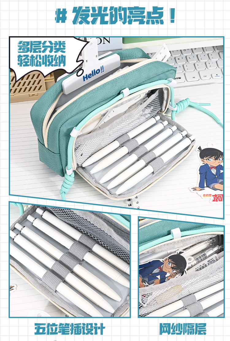 【柯南笔袋!多层大容量!】正版柯南联名笔袋 初中生新款学生笔袋 二次元小学生大容量耐脏笔袋-QQ