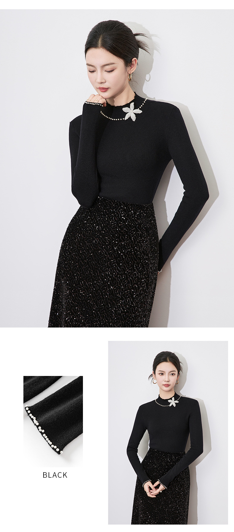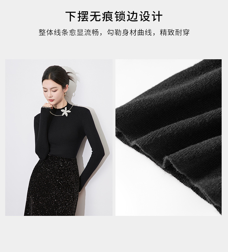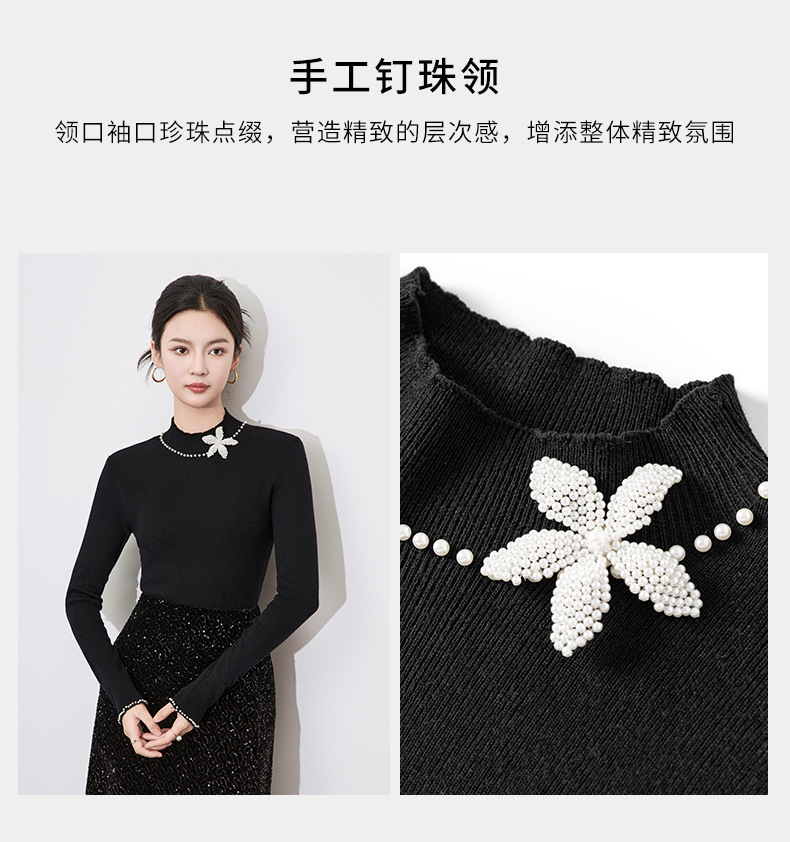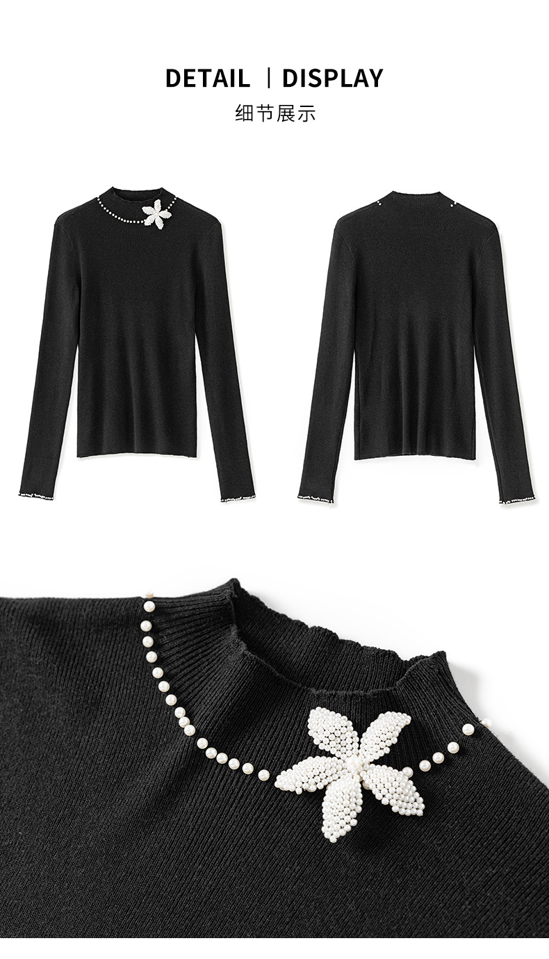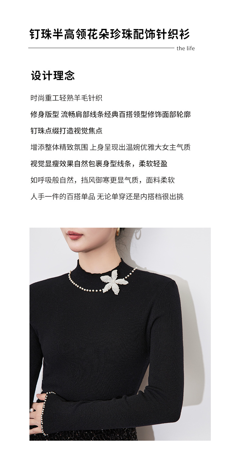 【高货wl】全新升级【铂金会员183/天猫249/差价66】(10814) 洛诗琳时尚雅致钉珠半高领打底衫上衣立体花朵修身针织衫