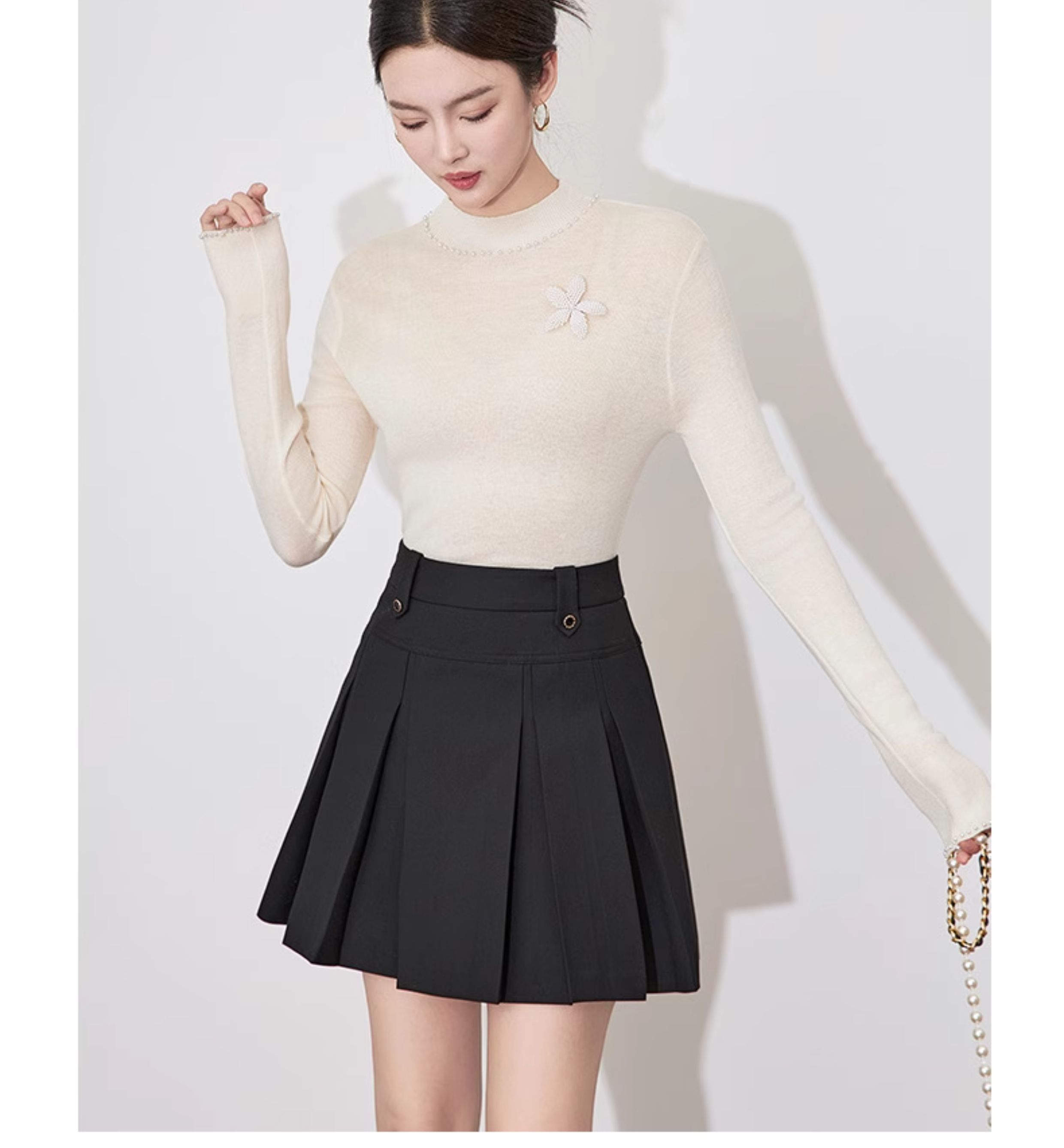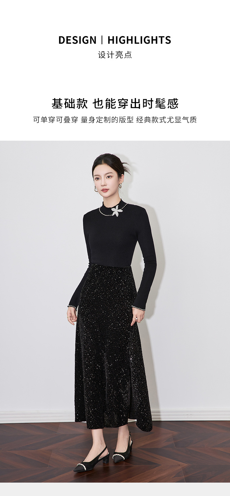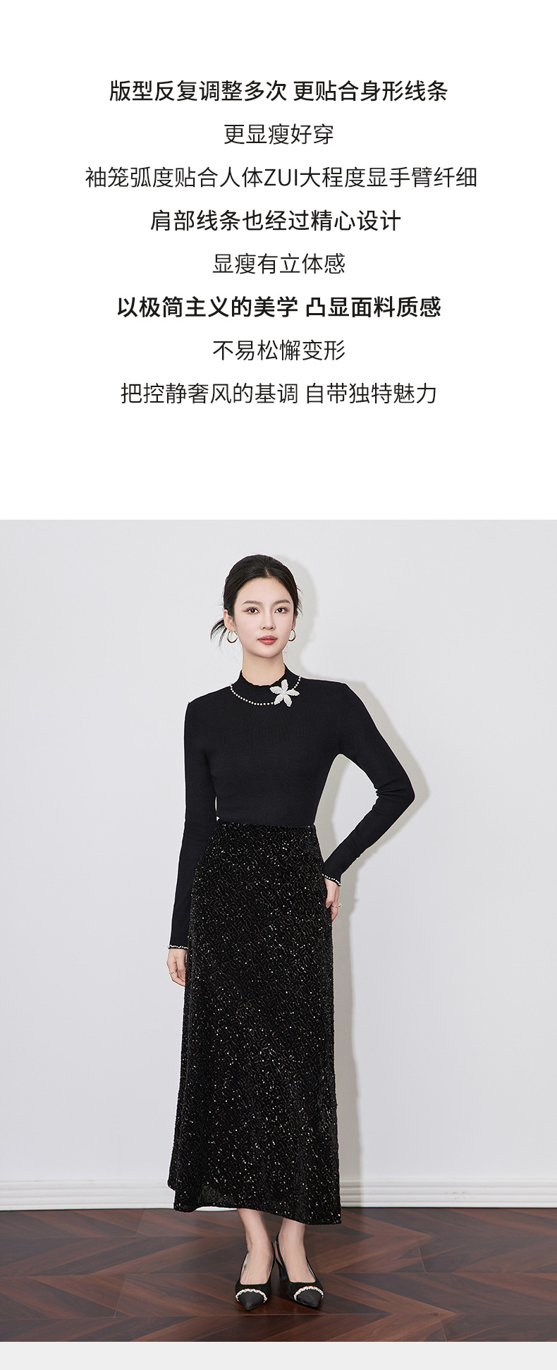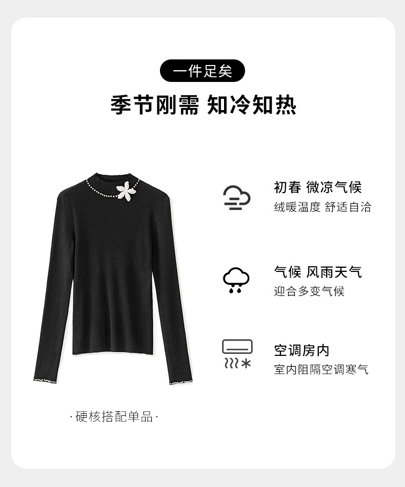 【高货wl】全新升级【铂金会员183/天猫249/差价66】(10814) 洛诗琳时尚雅致钉珠半高领打底衫上衣立体花朵修身针织衫