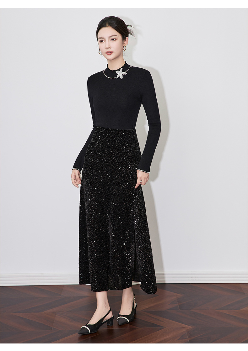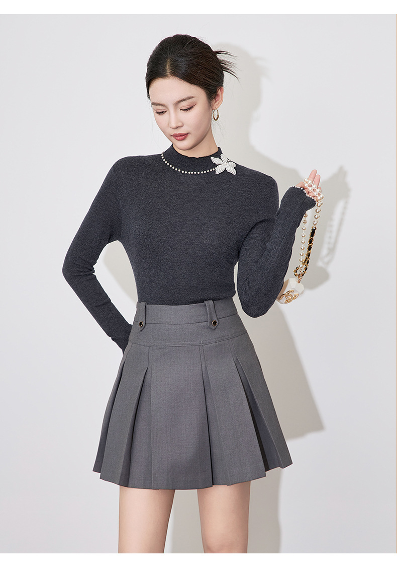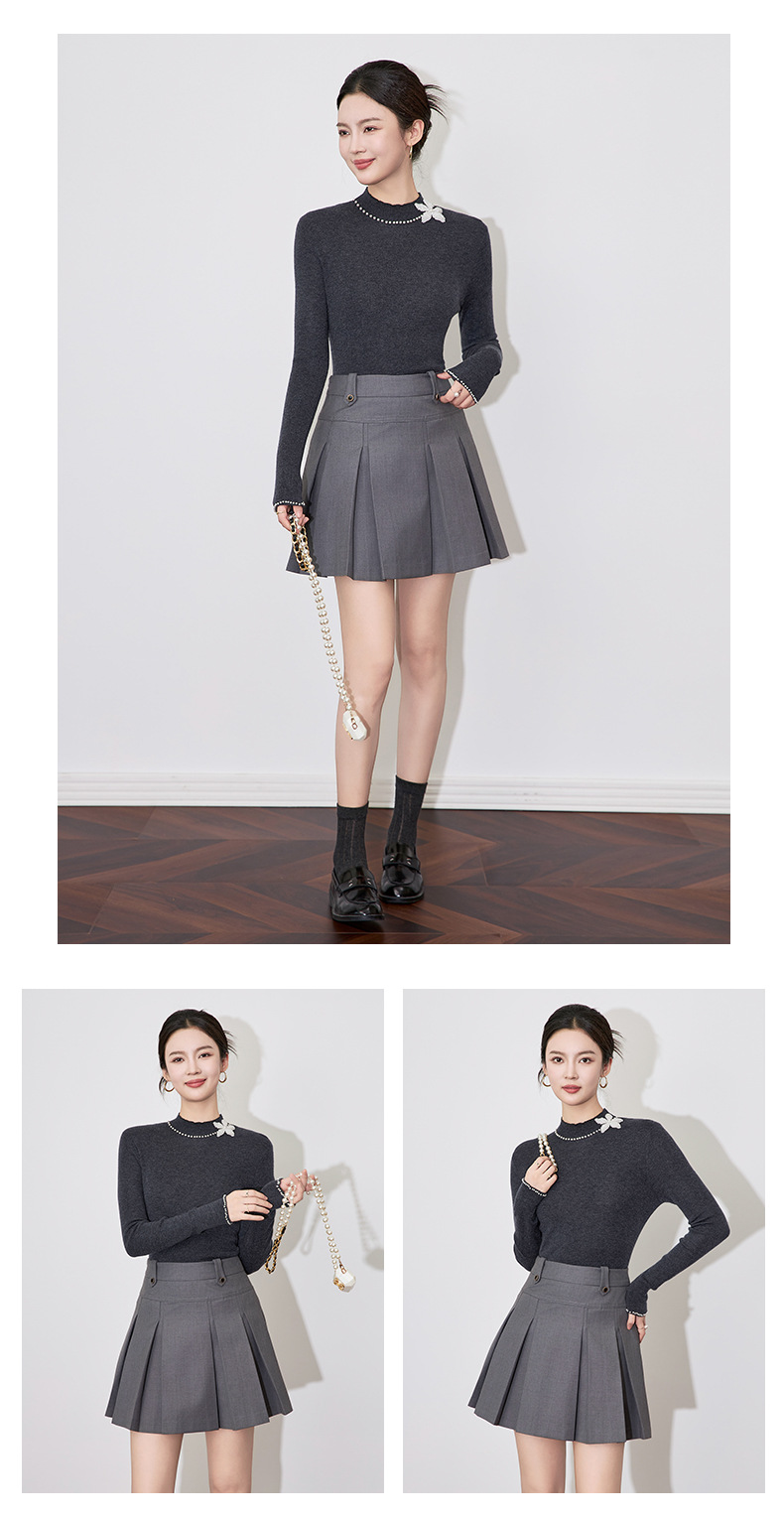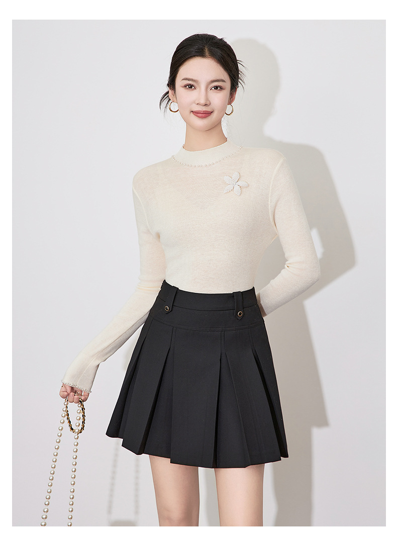 【高货wl】全新升级【铂金会员183/天猫249/差价66】(10814) 洛诗琳时尚雅致钉珠半高领打底衫上衣立体花朵修身针织衫