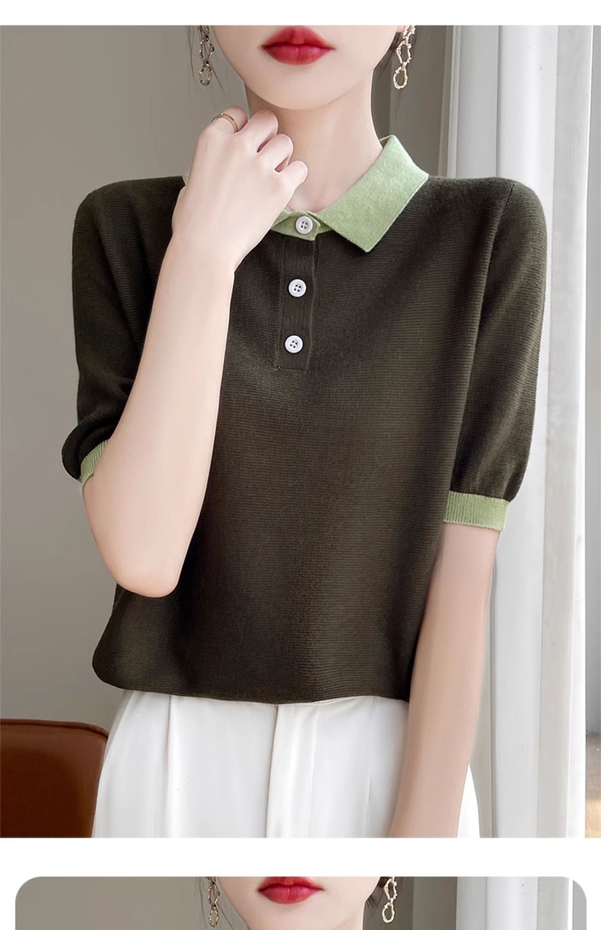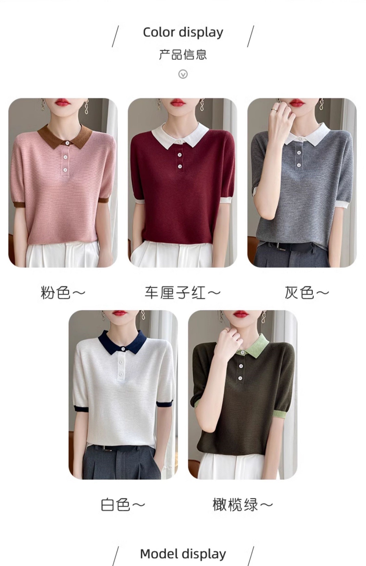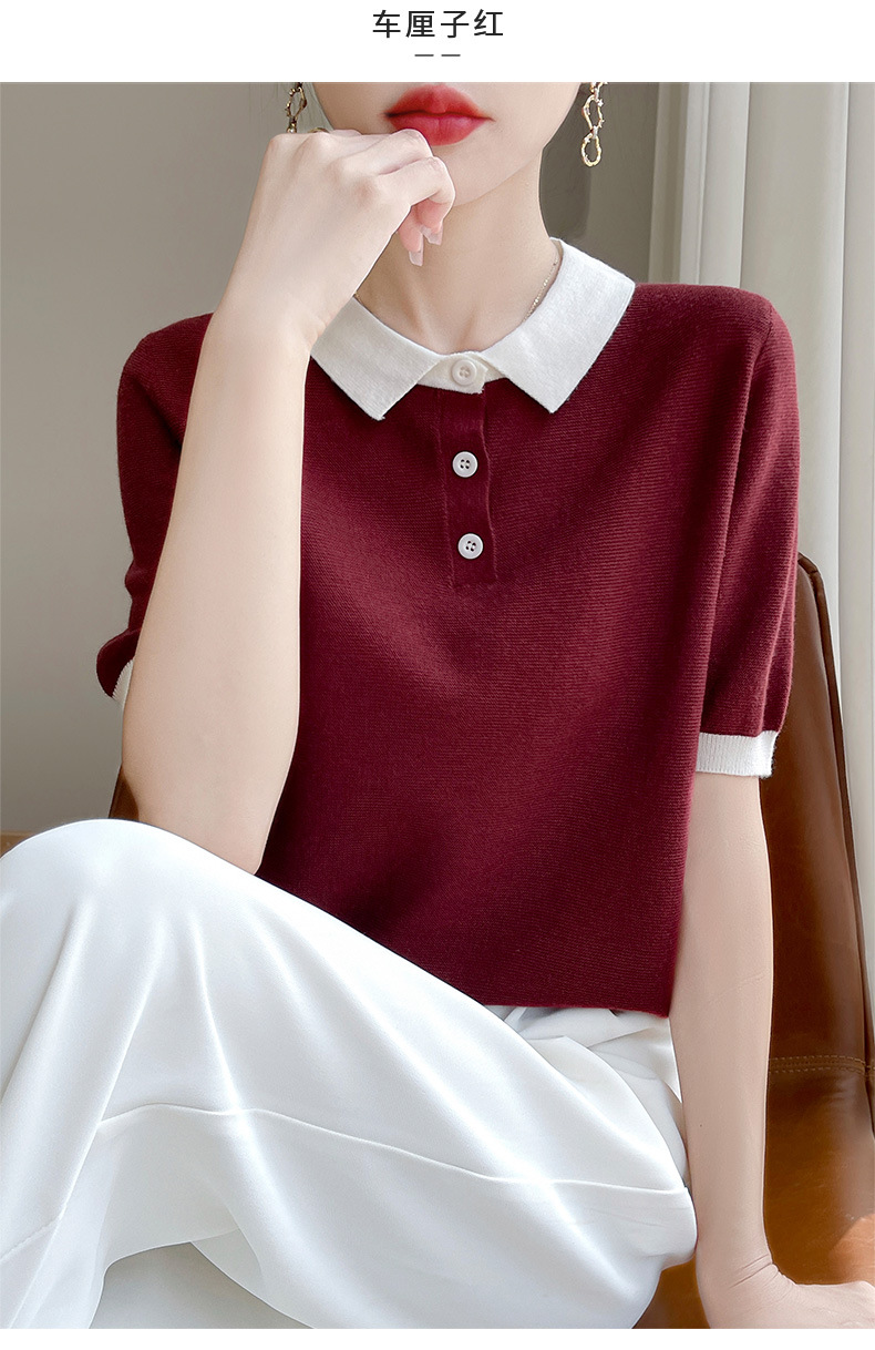 CC-XIX-194冰丝针织短袖t恤女2025新款时尚简约小翻领新款女装夏季上衣