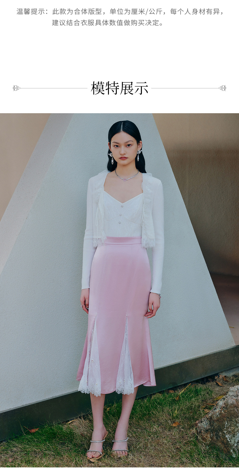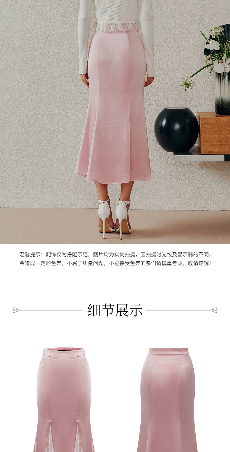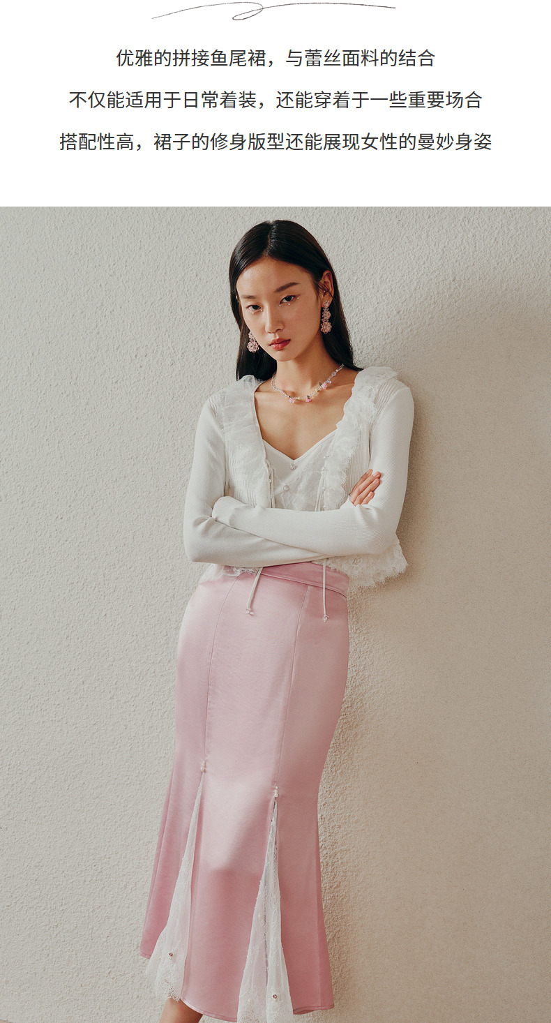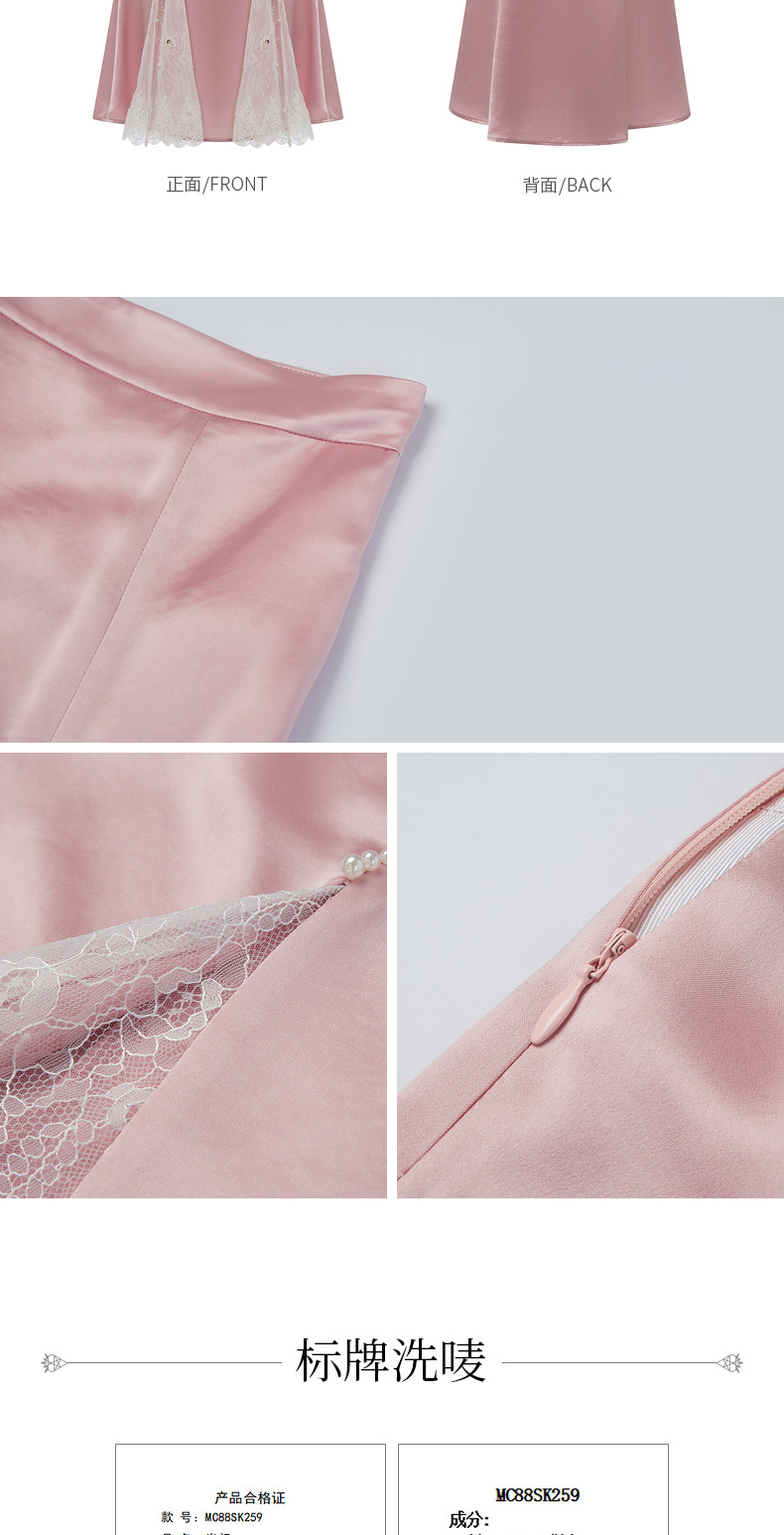 MAXRIENY浪漫优雅感樱花粉蕾丝拼接鱼尾缎面半裙(货号:MC88SK259)