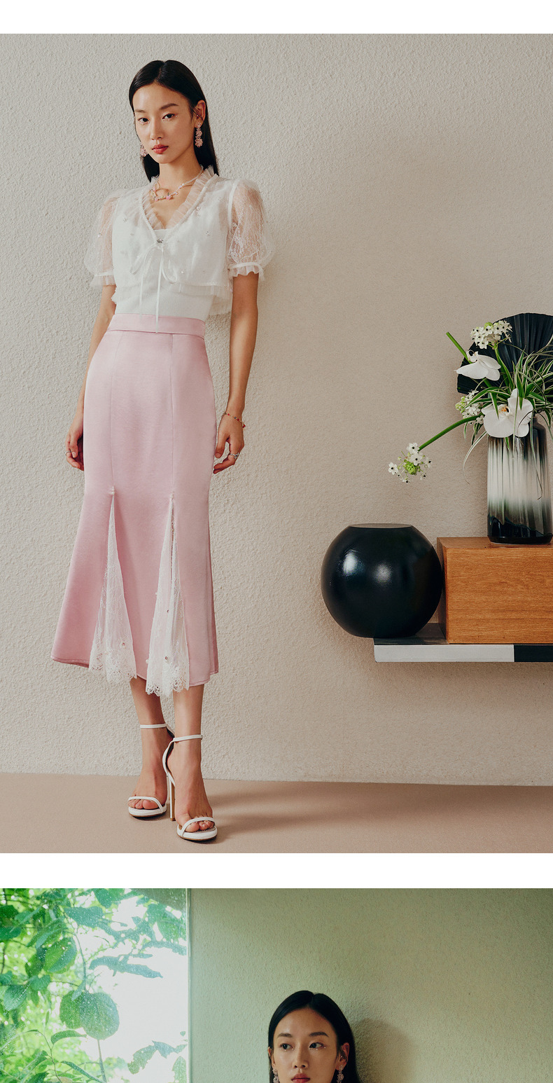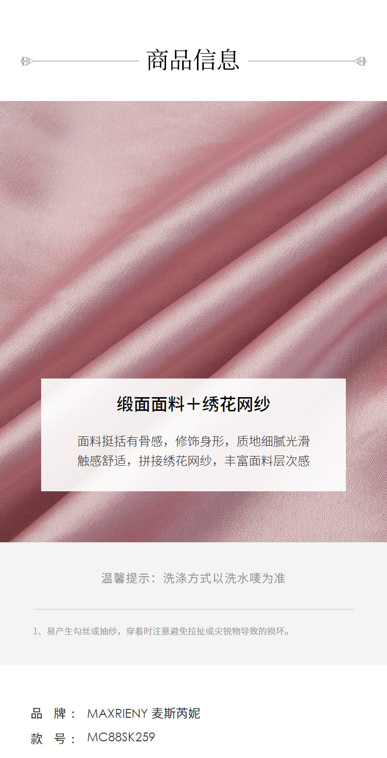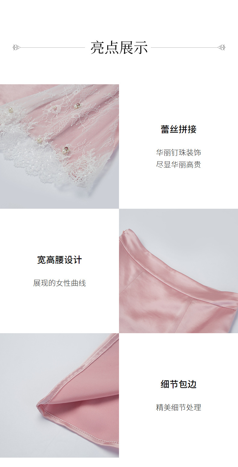 MAXRIENY浪漫优雅感樱花粉蕾丝拼接鱼尾缎面半裙(货号:MC88SK259)