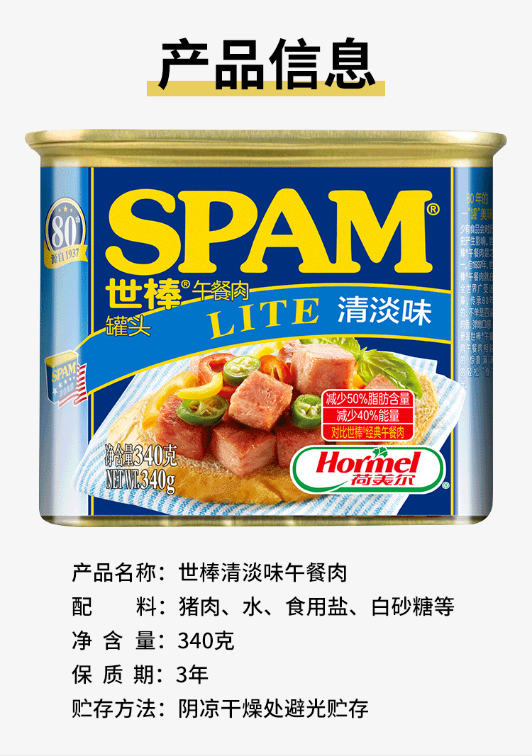 스팸SPAM世棒午餐肉340g