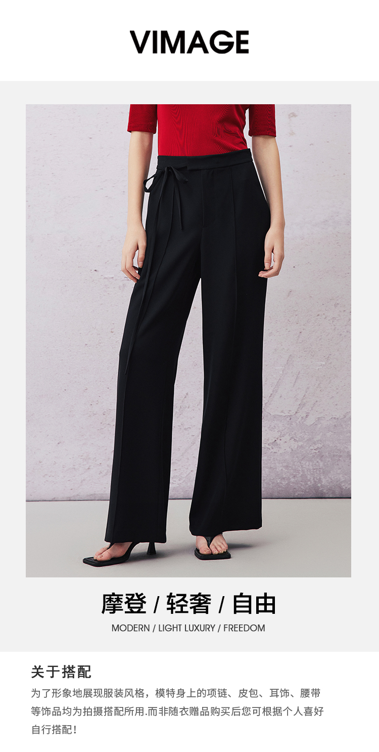 VIMAGE纬漫纪夏季新款百搭显高显瘦直筒裤休闲裤女裤V2105708