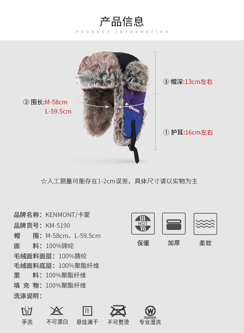 【其他注意事项】注意帽子的洗涤方式,每顶帽子都有吊牌