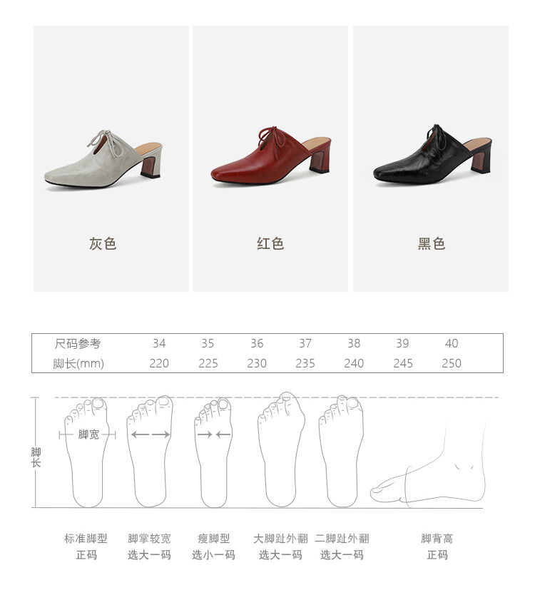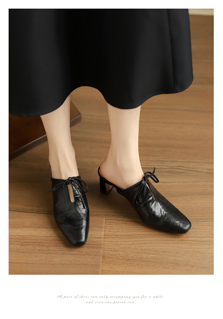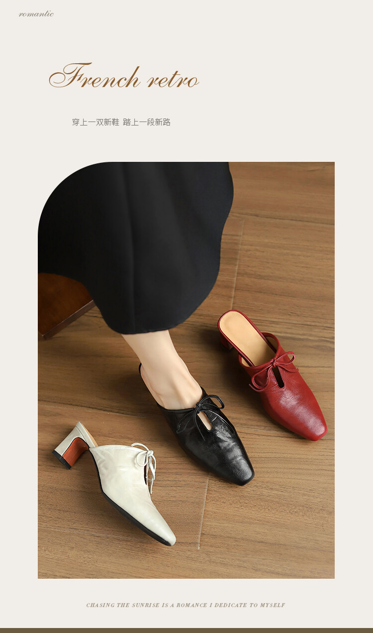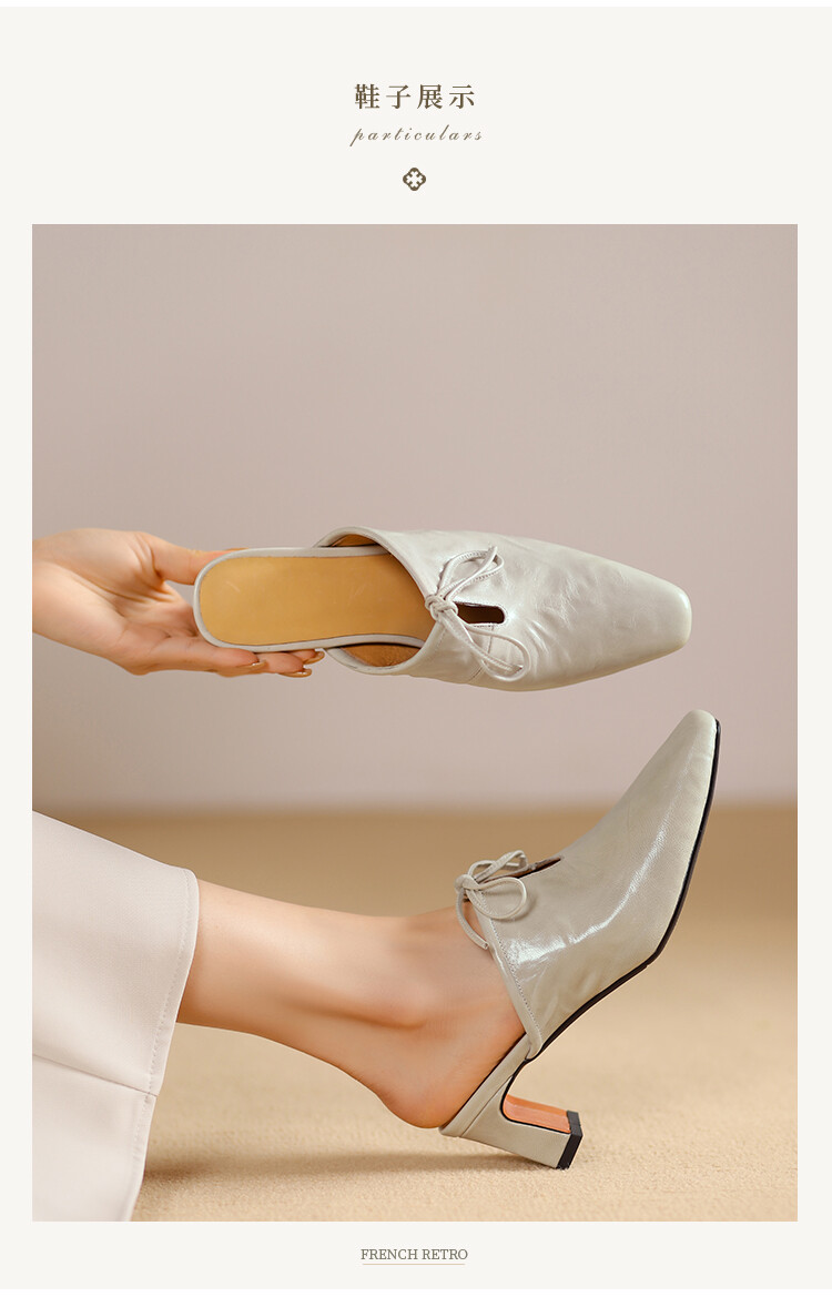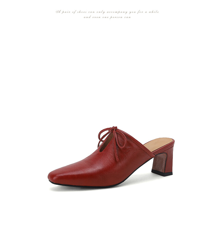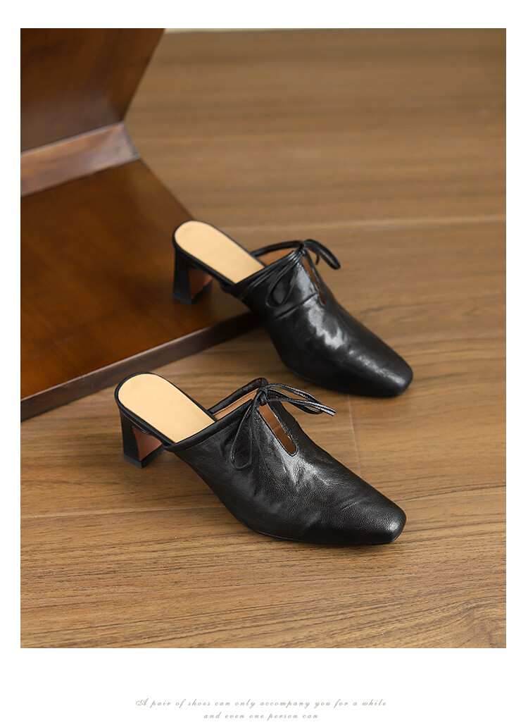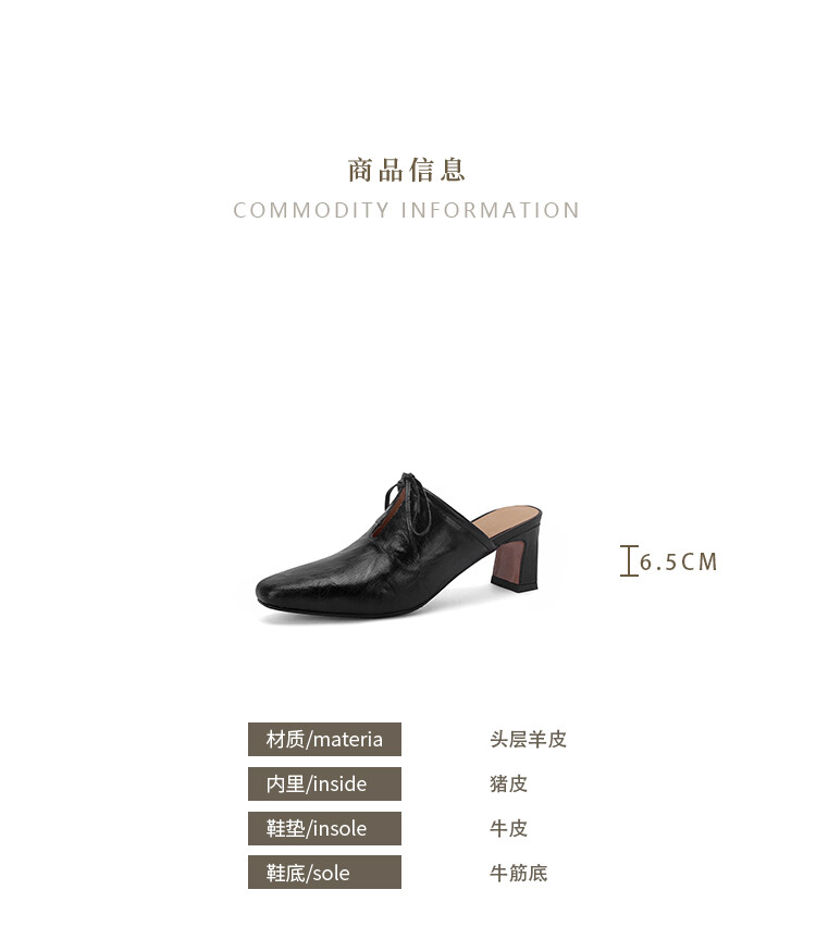 【预售5天】羊皮粗跟方头后空单鞋,简约复古高跟半拖包头拖鞋潮GP&2858