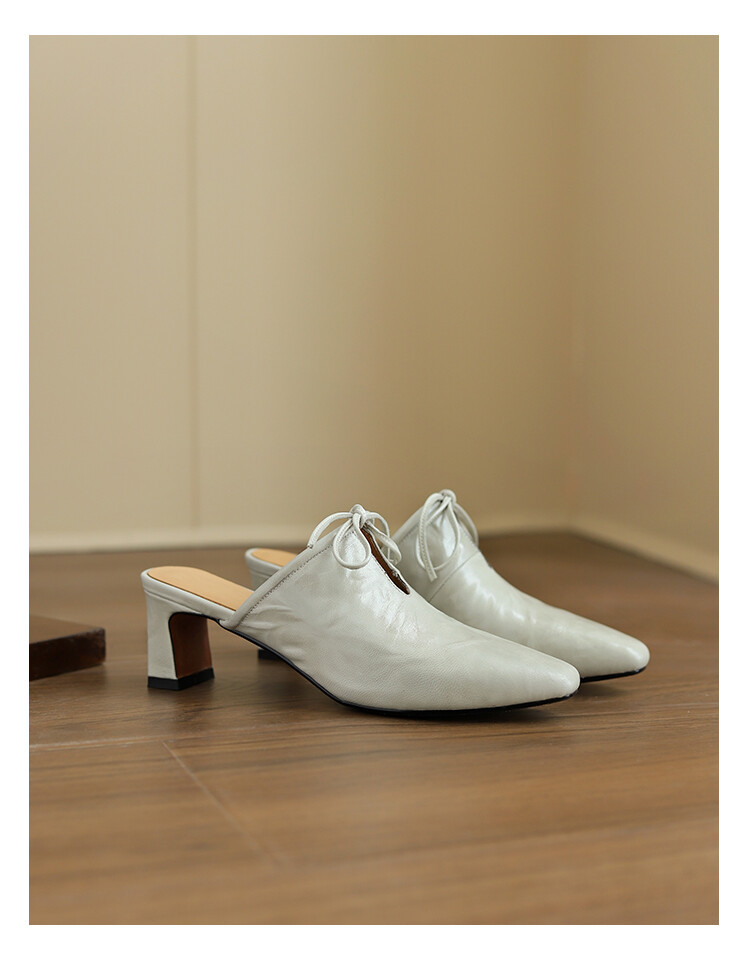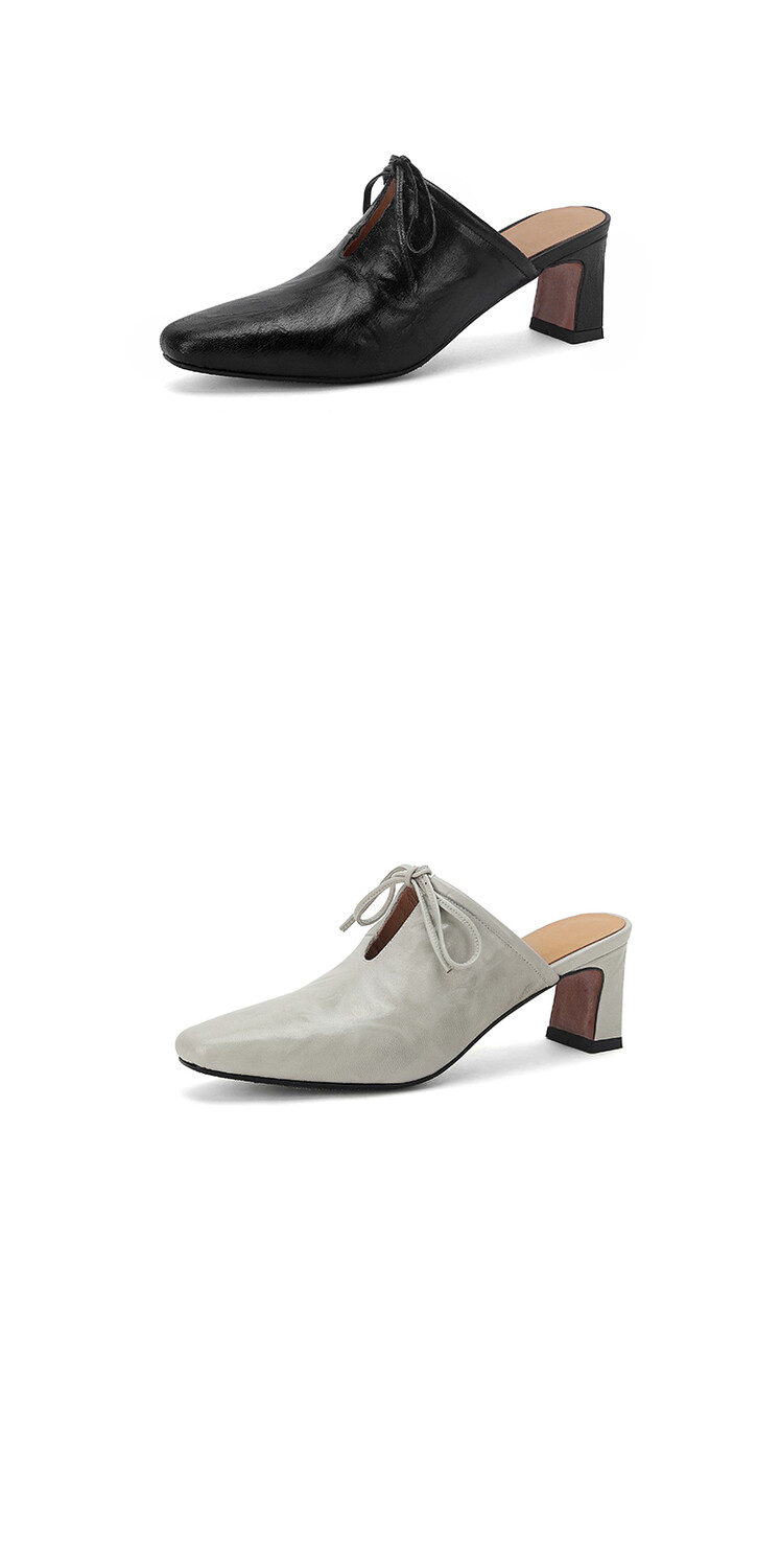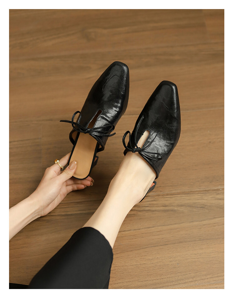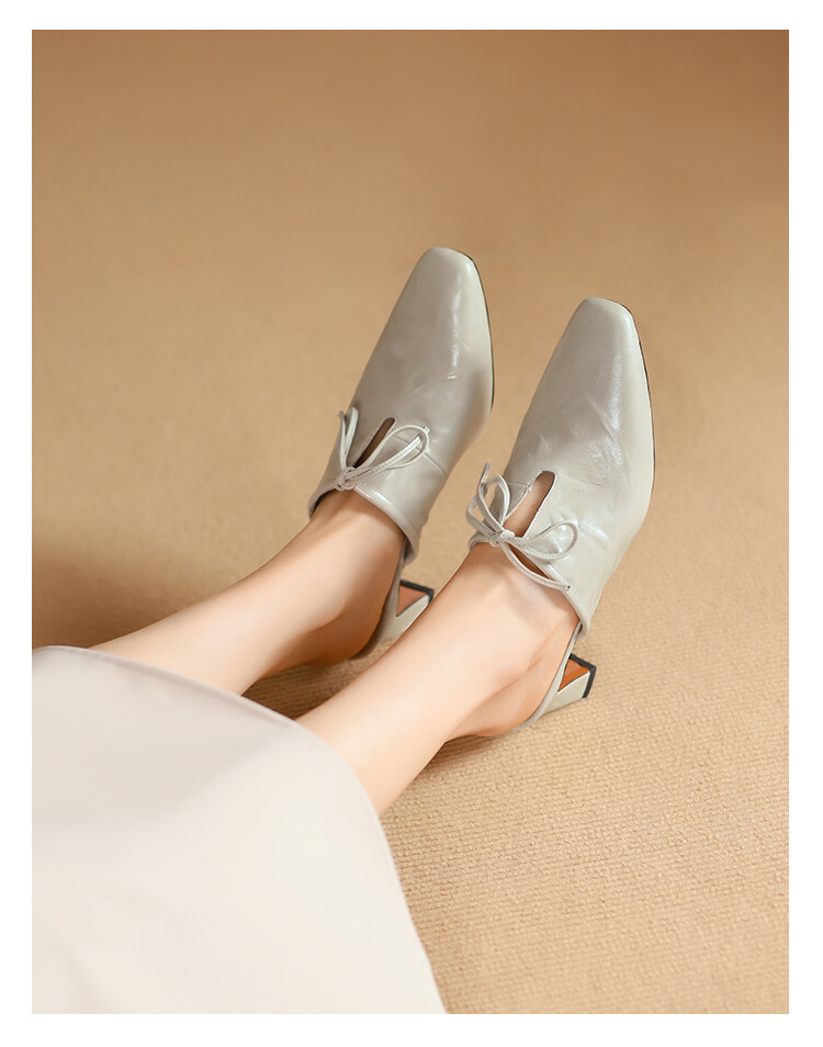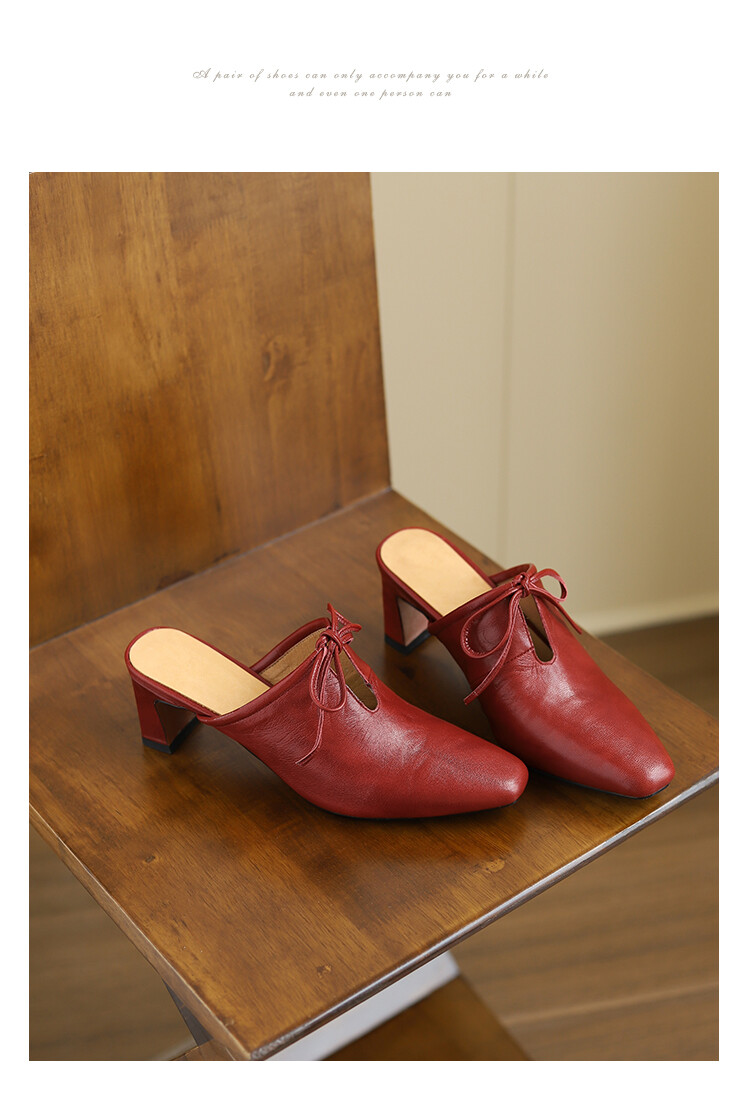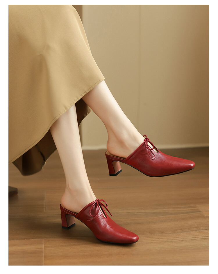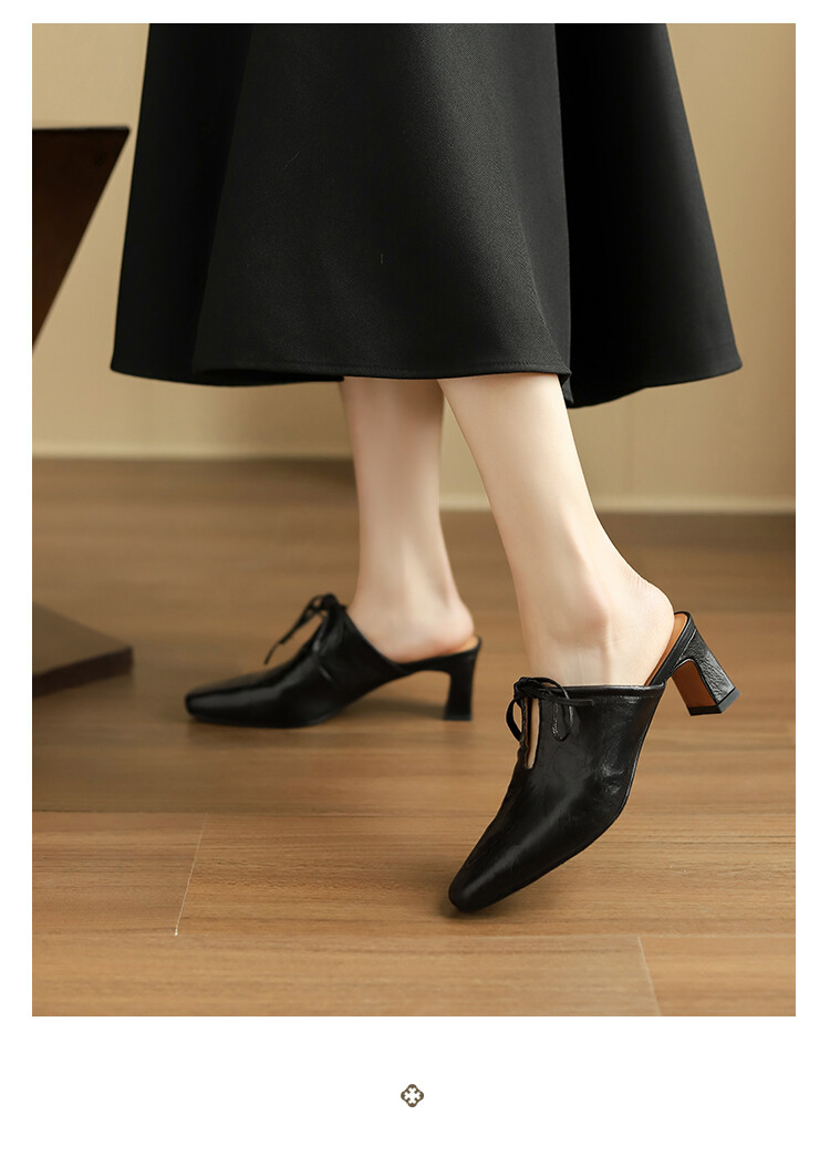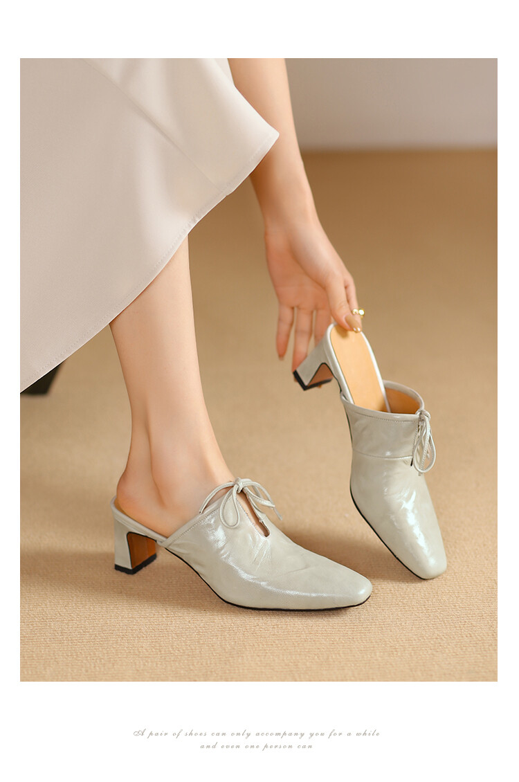 【预售5天】羊皮粗跟方头后空单鞋,简约复古高跟半拖包头拖鞋潮GP&2858