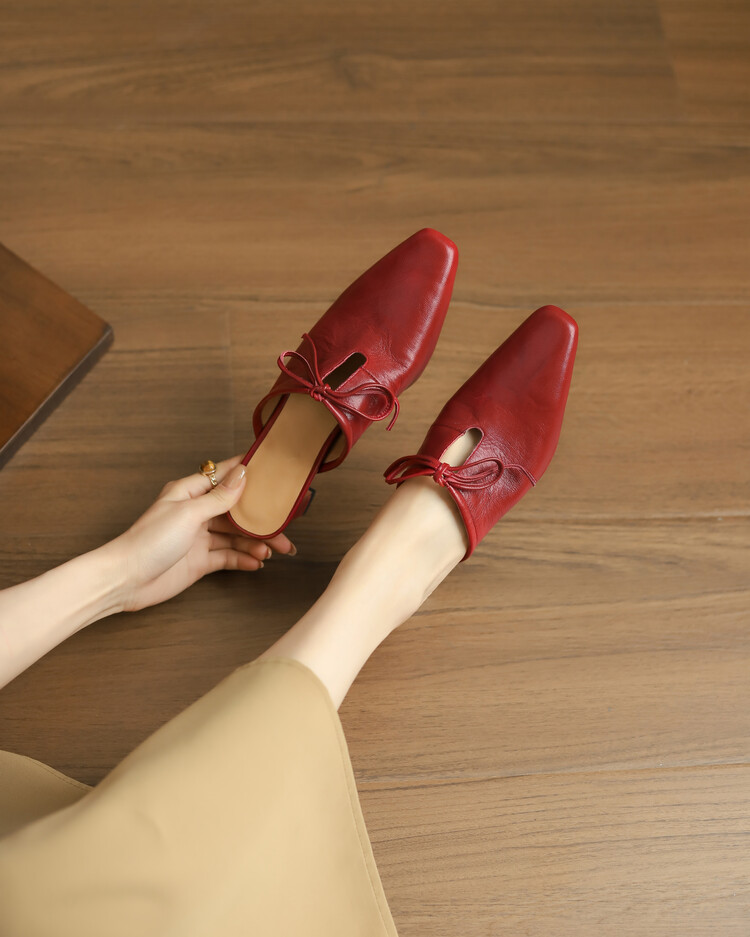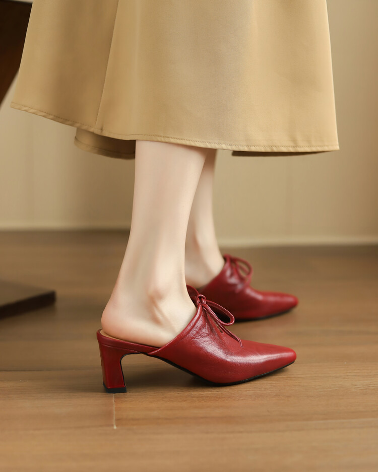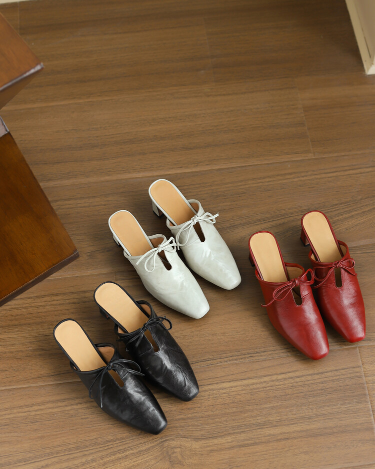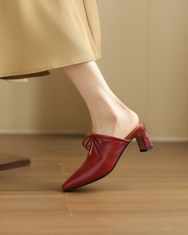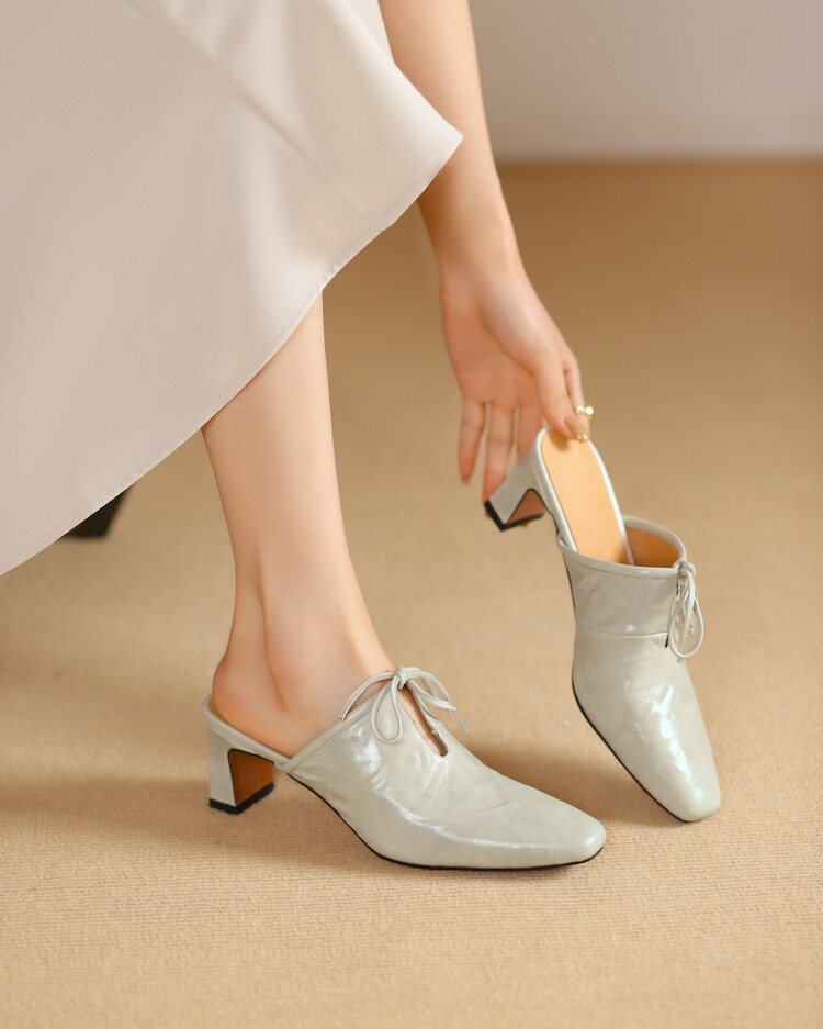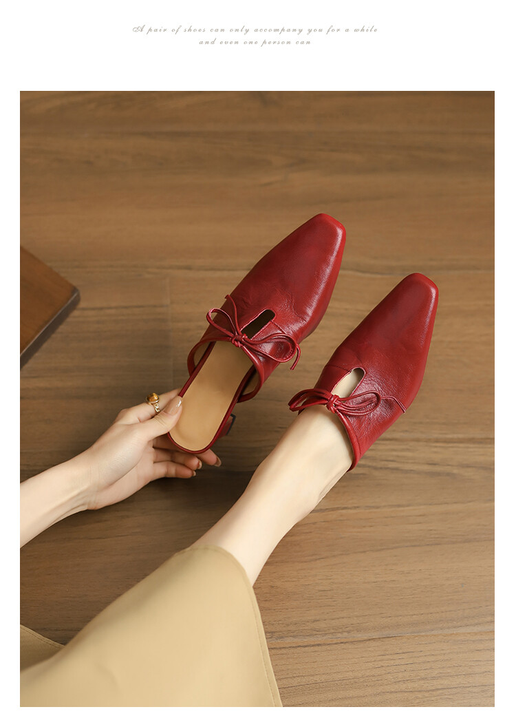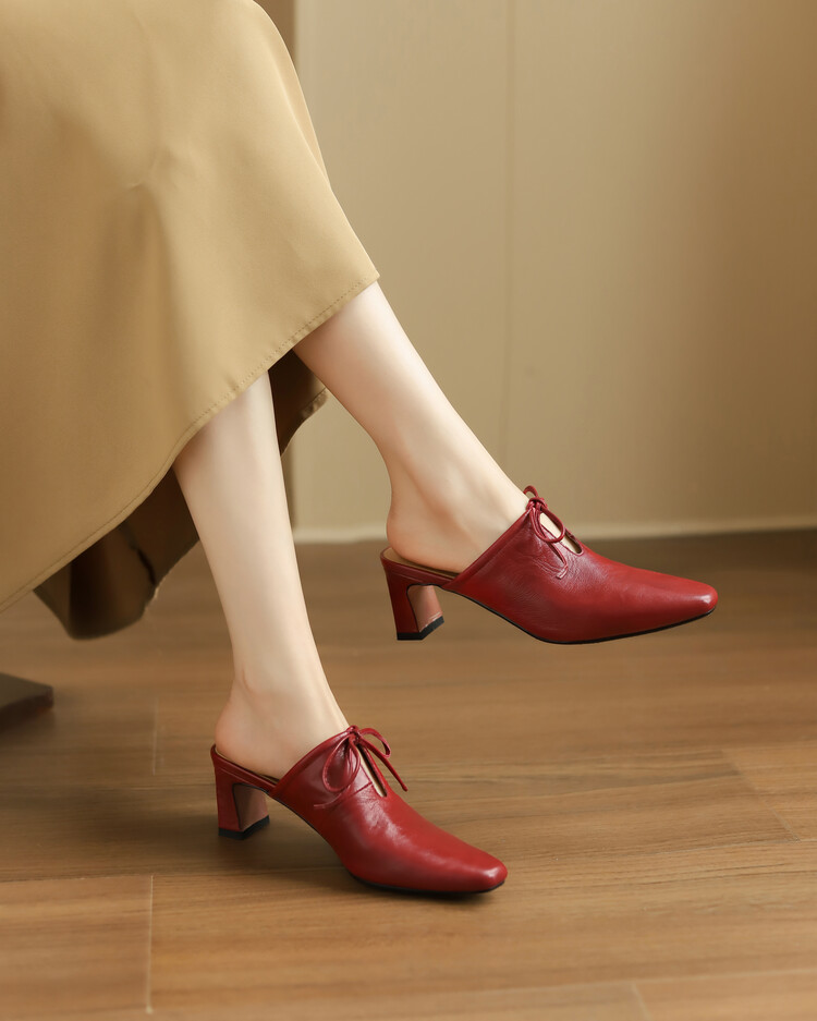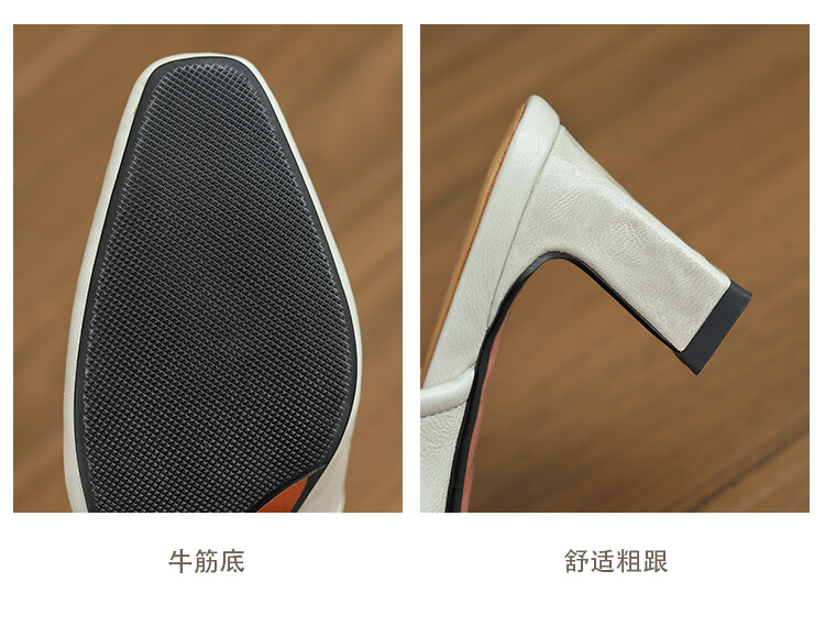 【预售5天】羊皮粗跟方头后空单鞋,简约复古高跟半拖包头拖鞋潮GP&2858