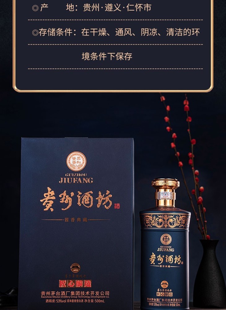 【推荐】【清仓 外箱瑕疵】茅台集团 贵州酒坊 酱香典藏 酱香型 53度 500ml*6 整箱装