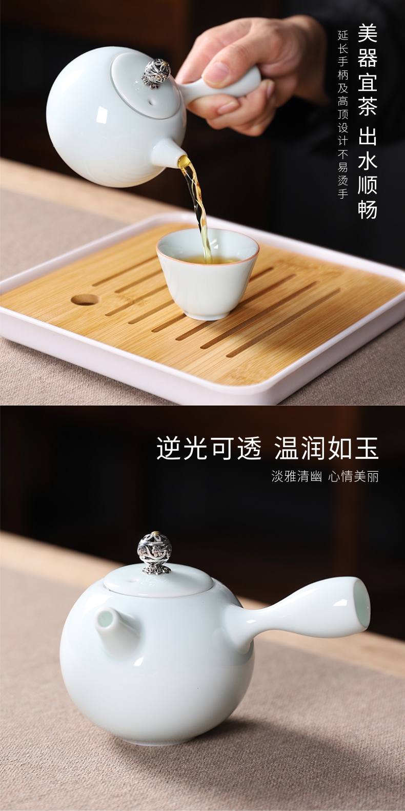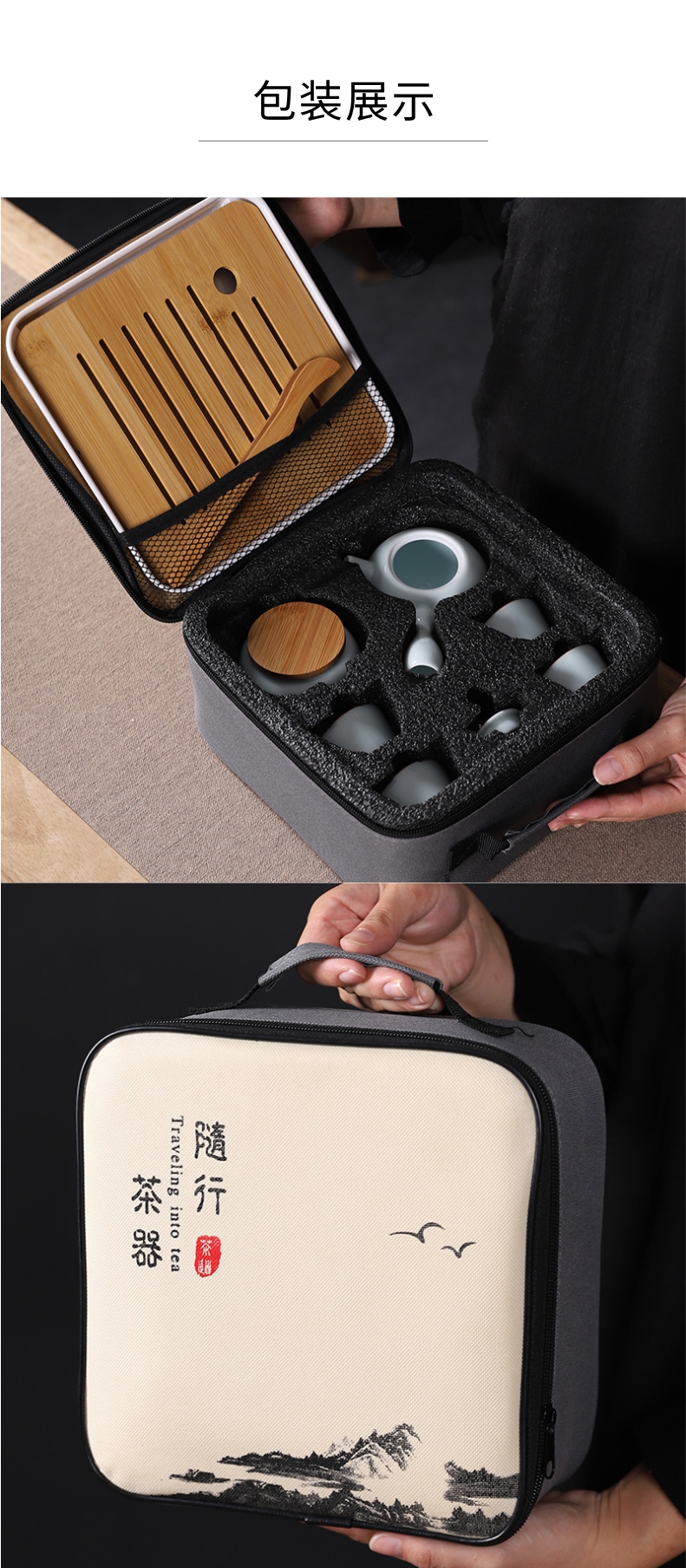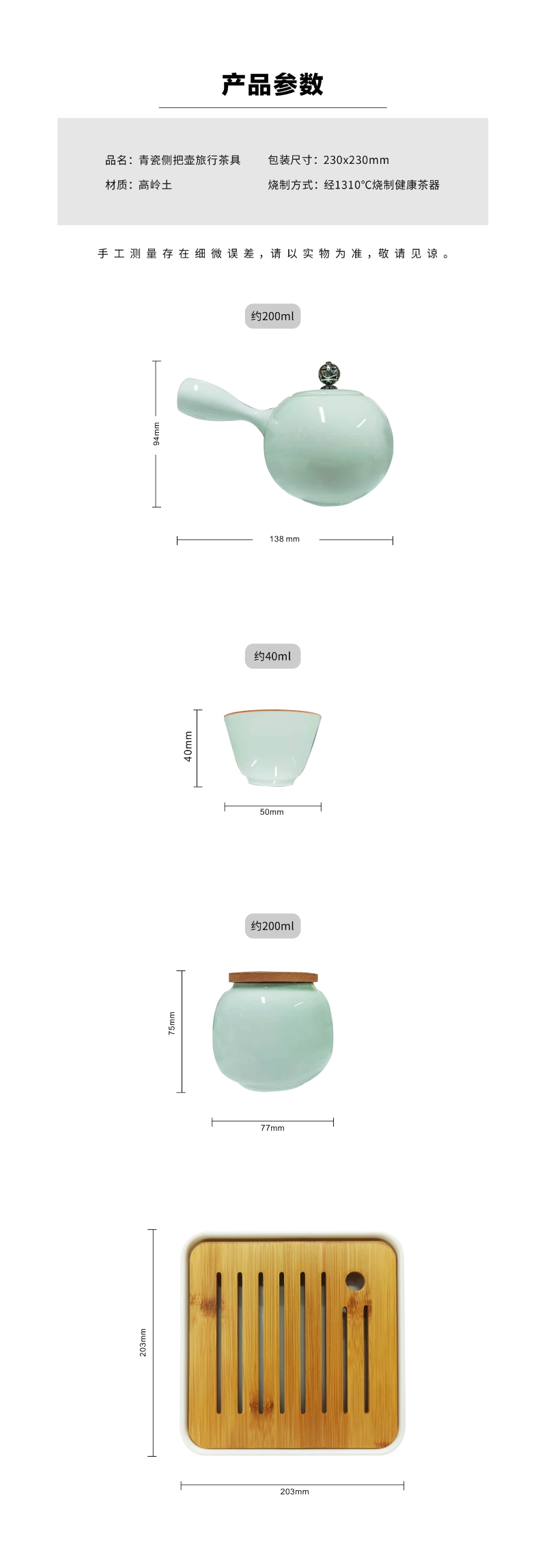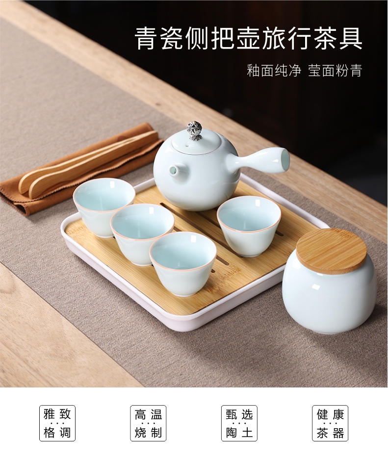 【商品名称】青瓷侧把壶旅行茶具 布包