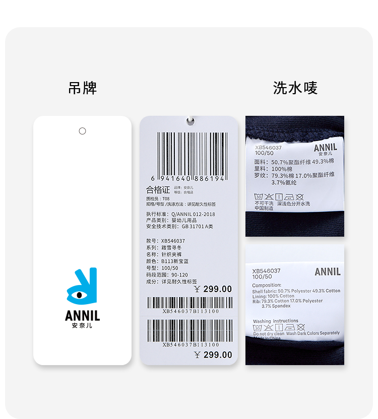 【实体店同款】男童针织夹裤冬季新款安奈儿童装XB546037