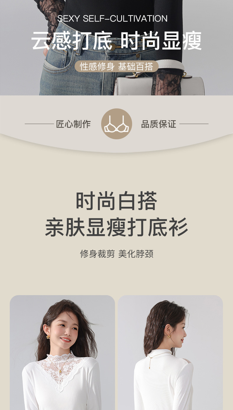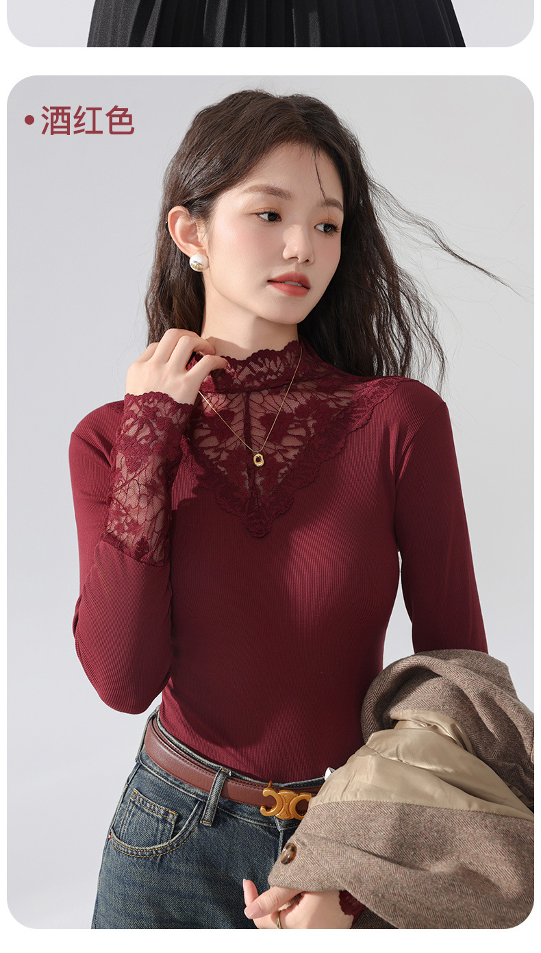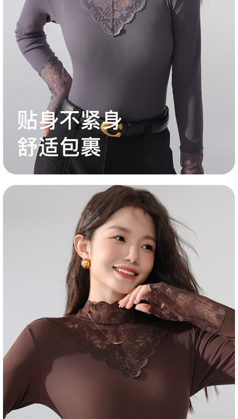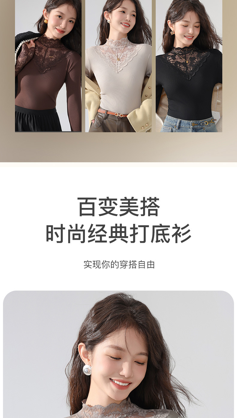 丁摩 蕾丝上衣女长袖秋冬新款大码女装半高领网纱内搭打底衫洋气衫5ZF-2517