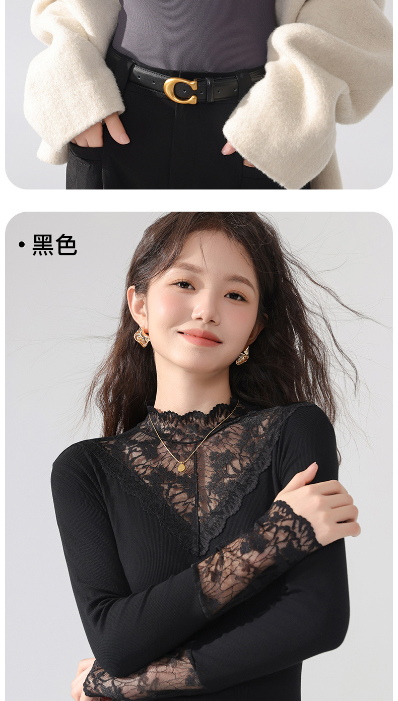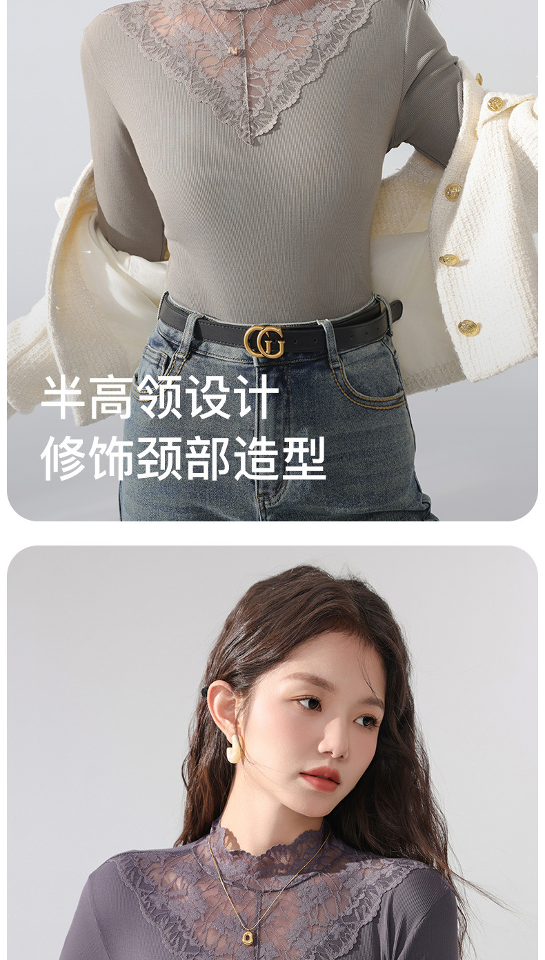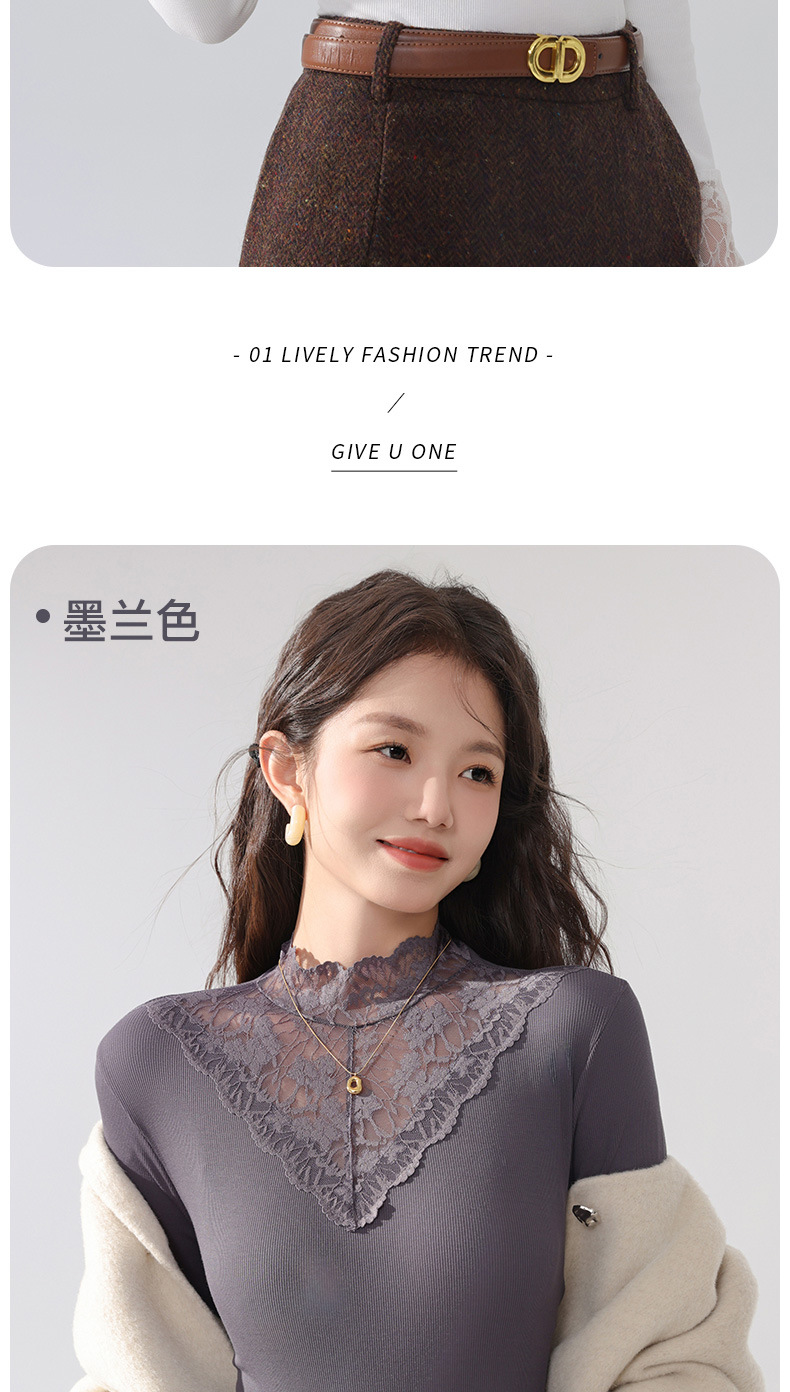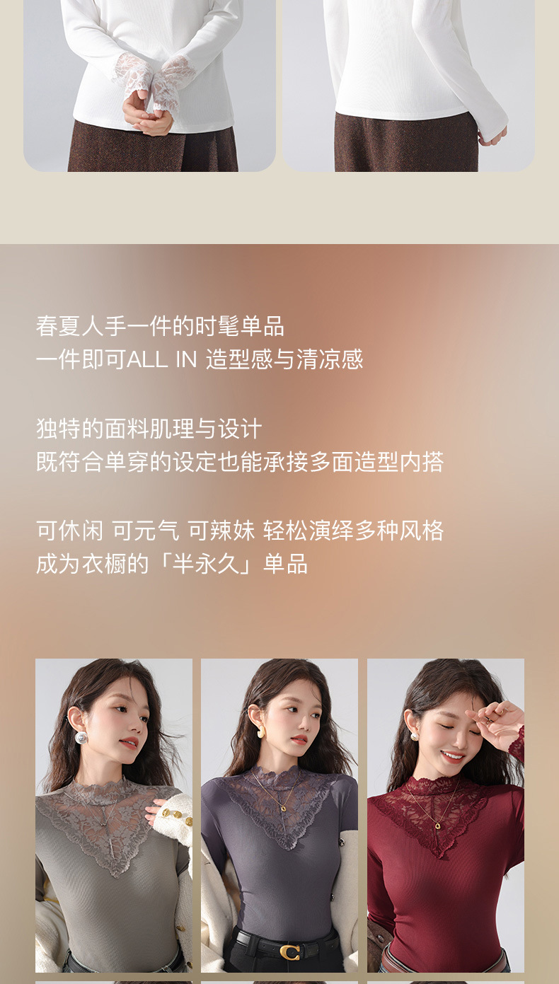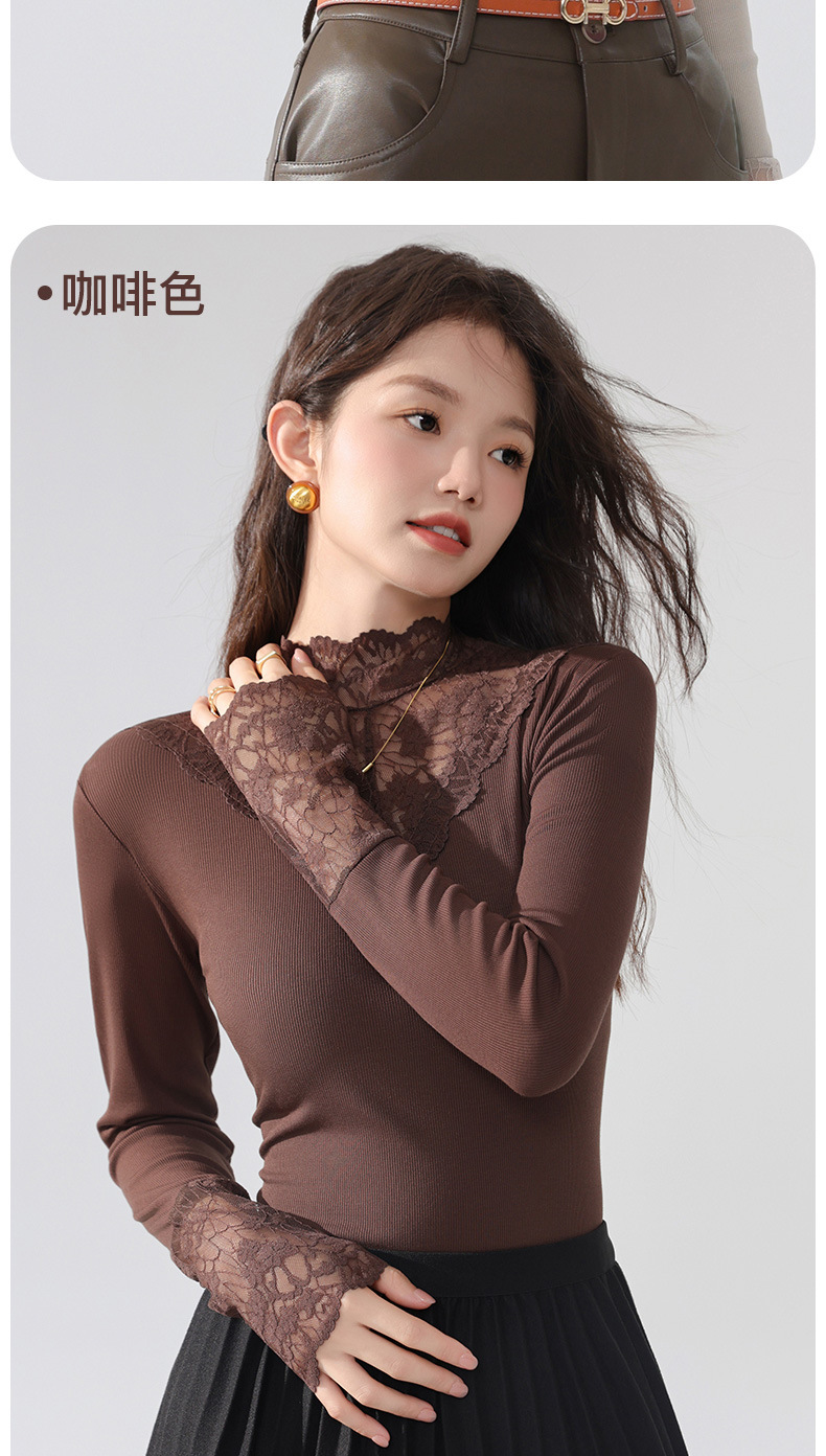 丁摩 蕾丝上衣女长袖秋冬新款大码女装半高领网纱内搭打底衫洋气衫5ZF-2517