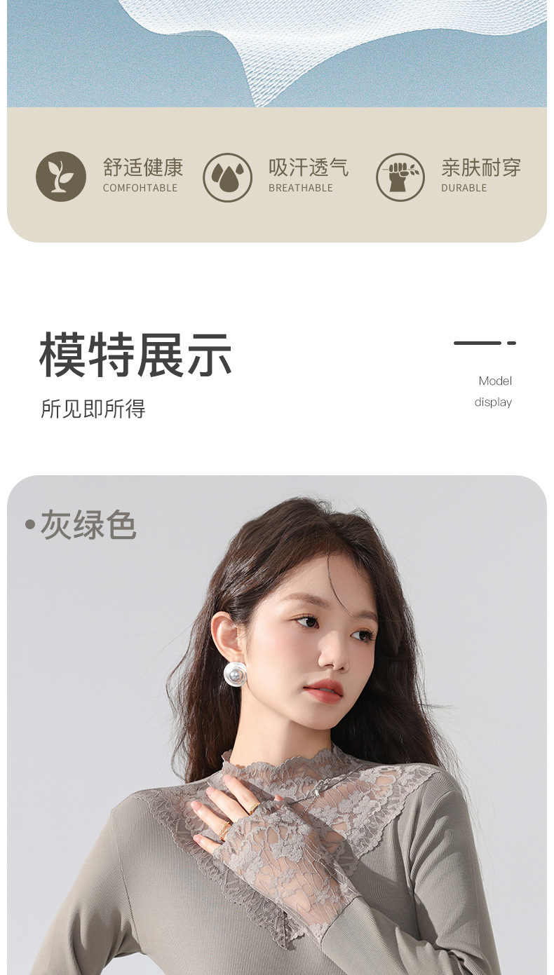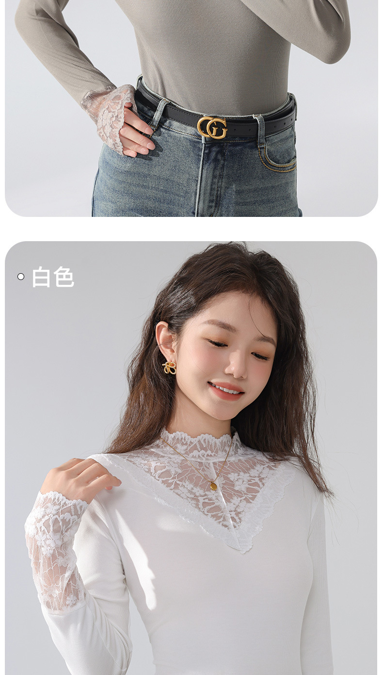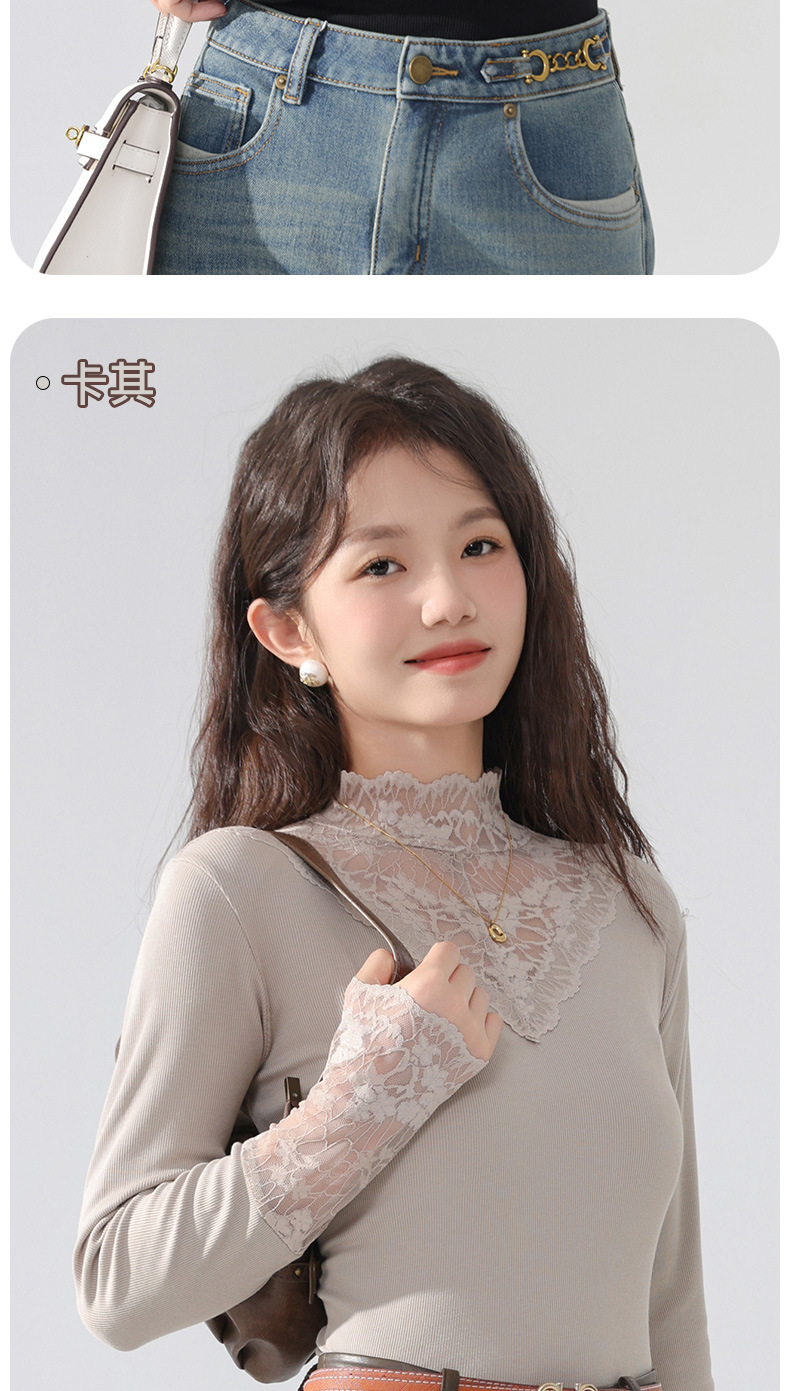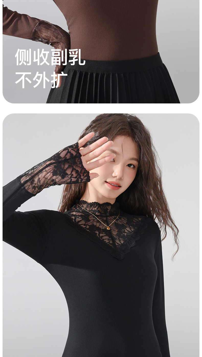 丁摩 蕾丝上衣女长袖秋冬新款大码女装半高领网纱内搭打底衫洋气衫5ZF-2517