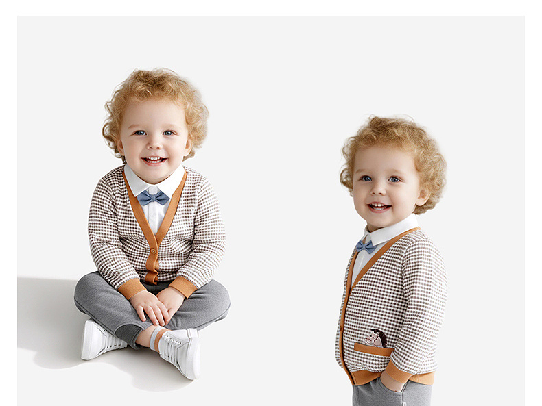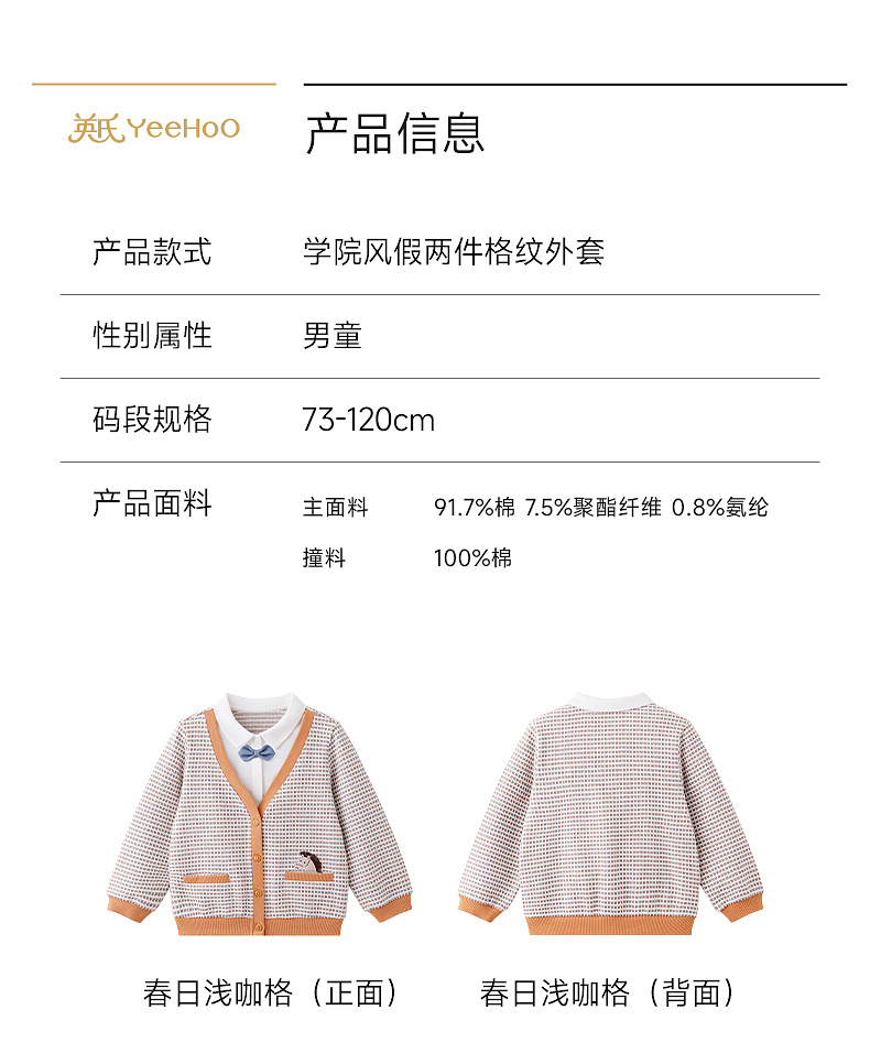 【商场同款】英氏外套男童长袖假两件格子外套春秋帅气英伦百搭