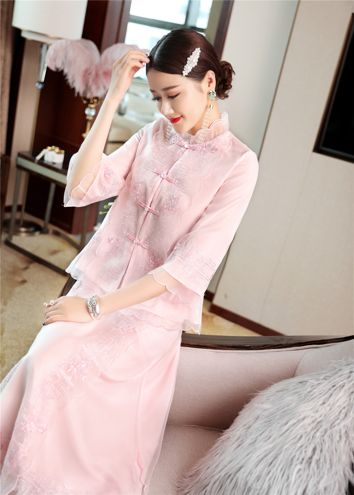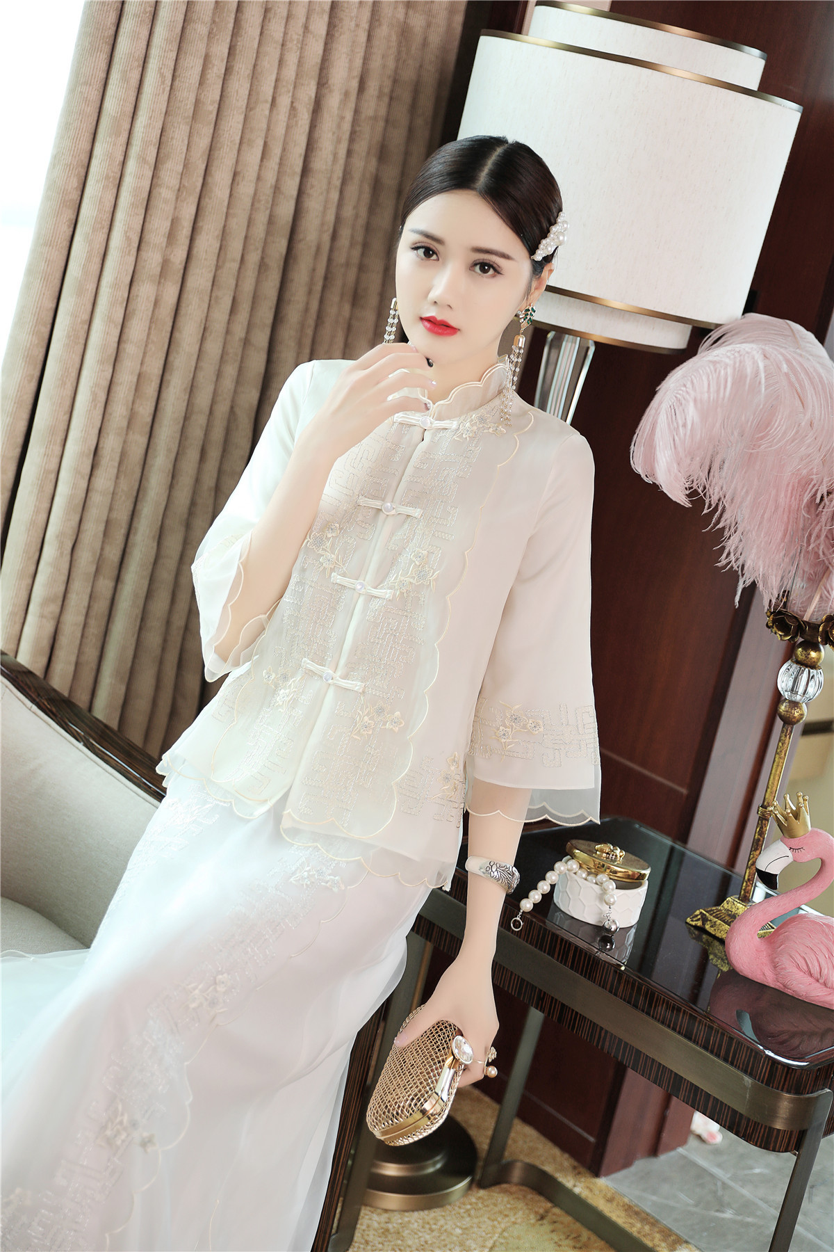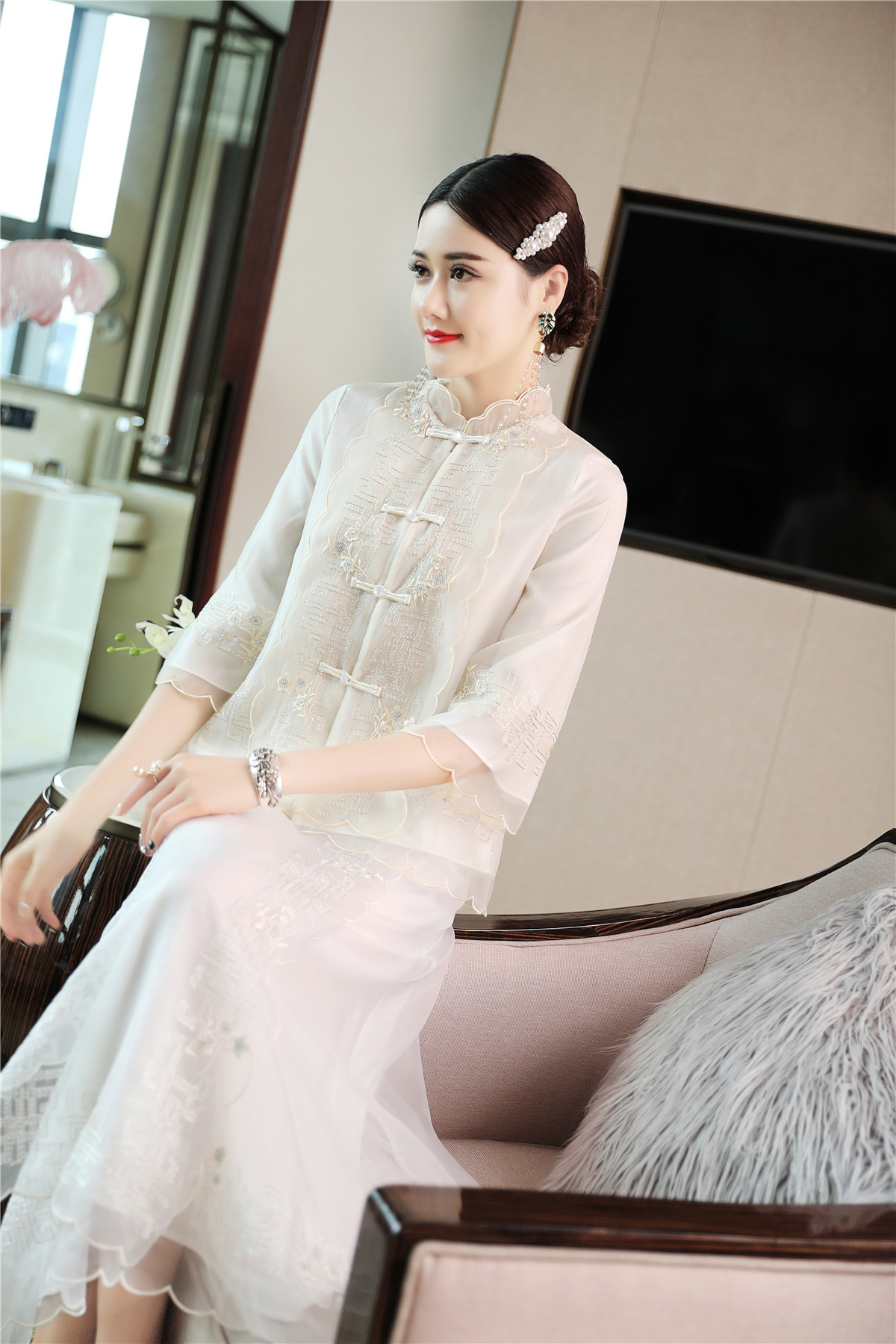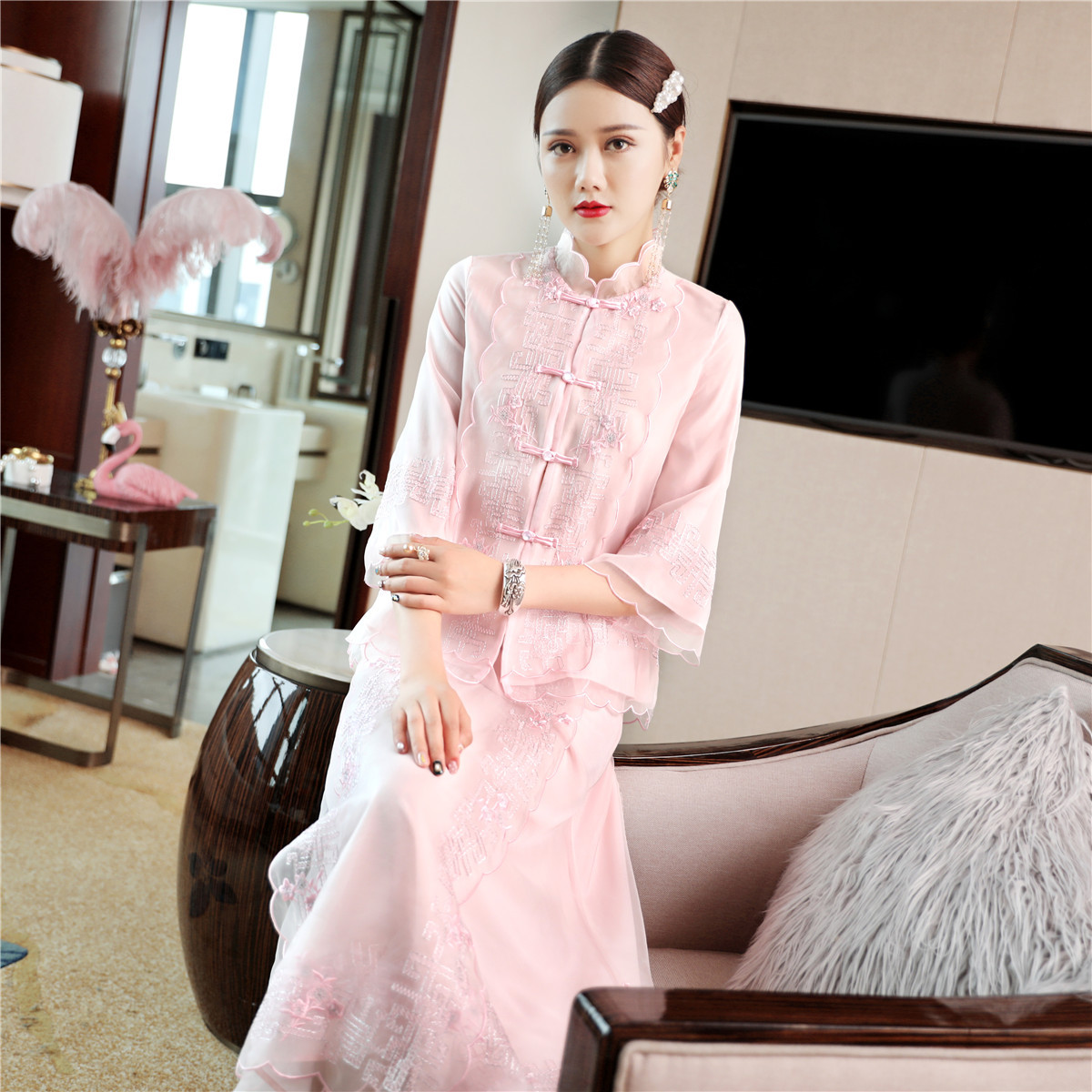 QZ-19165新款中国风复古盘扣中式刺绣旗袍上衣 TZW