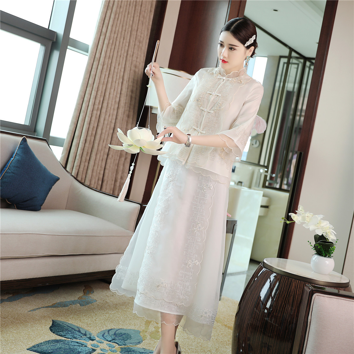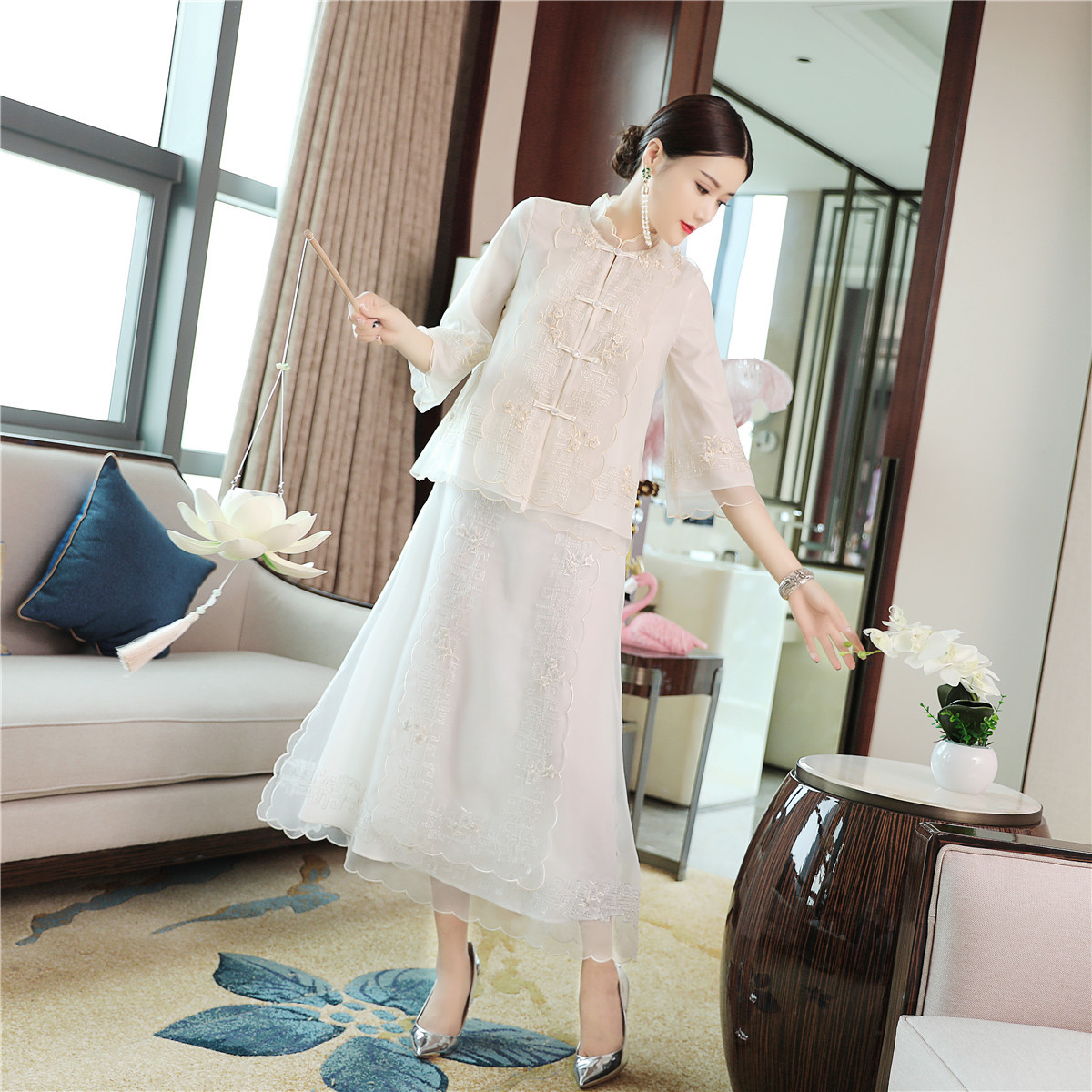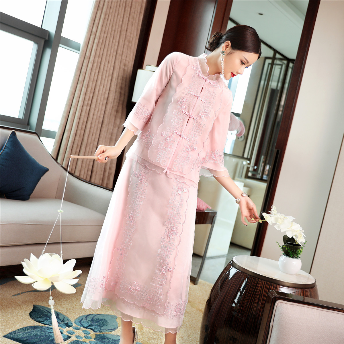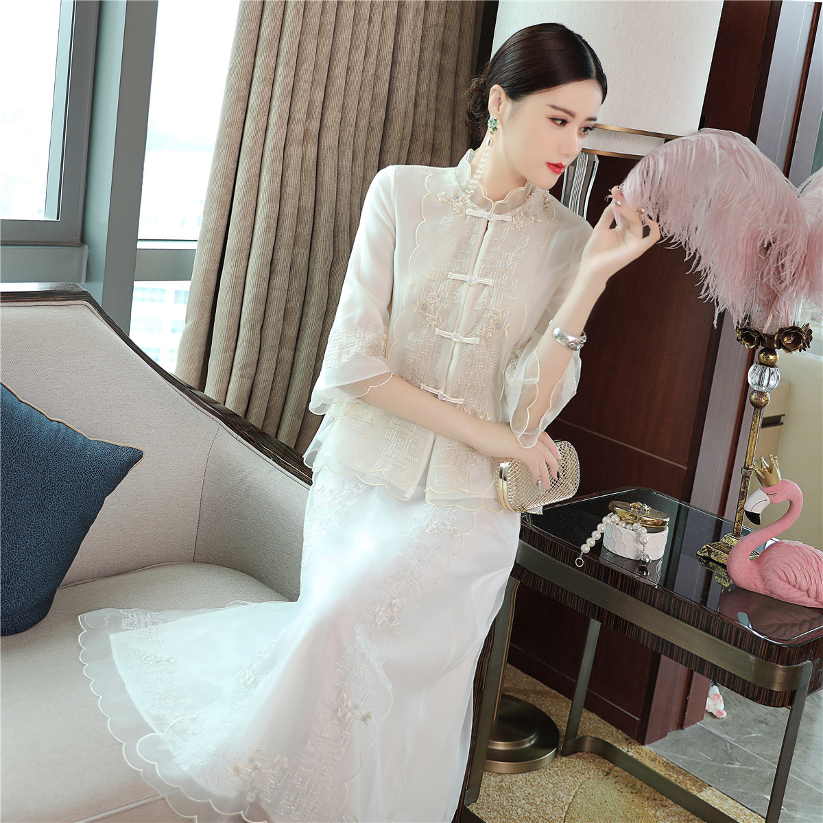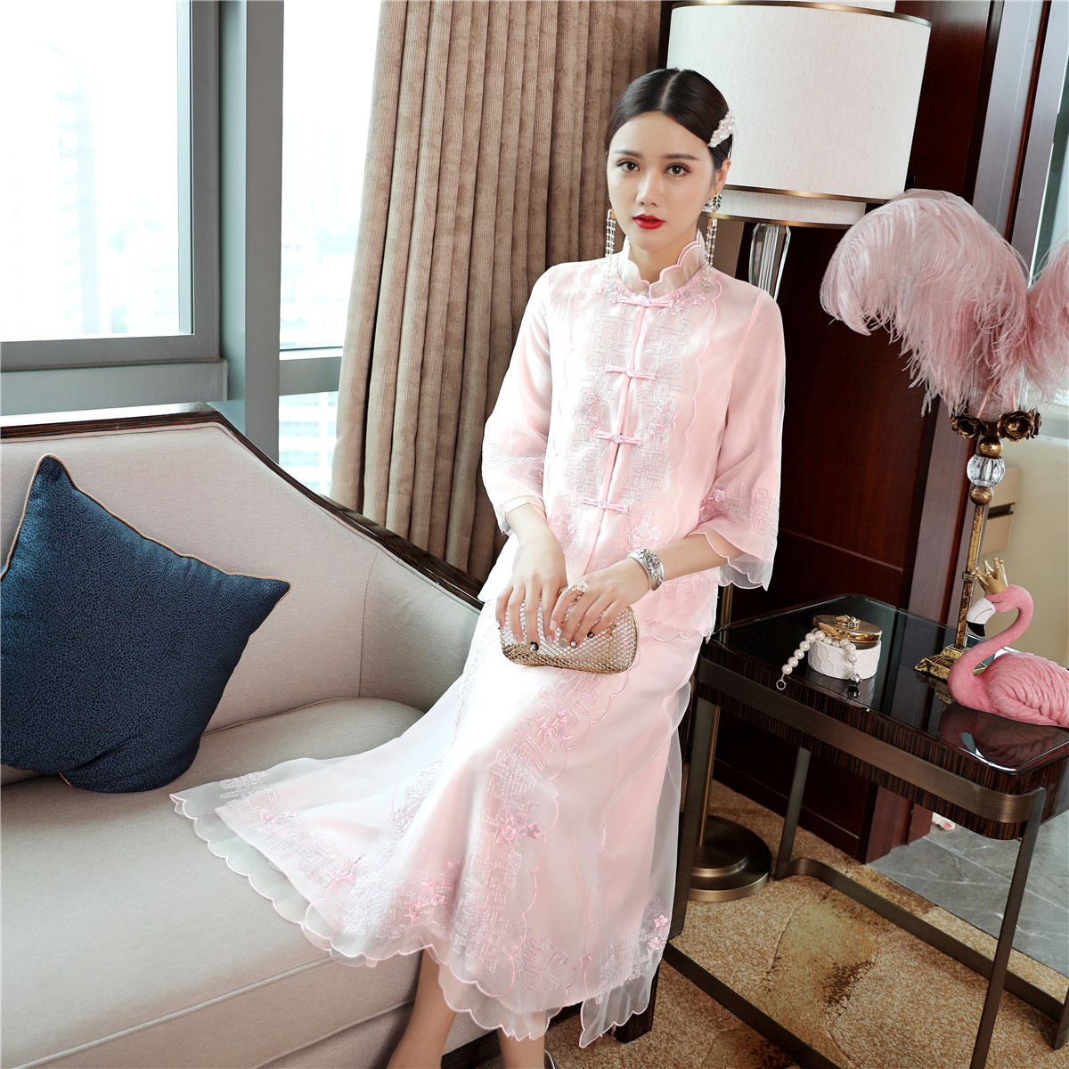 QZ-19165新款中国风复古盘扣中式刺绣旗袍上衣 TZW