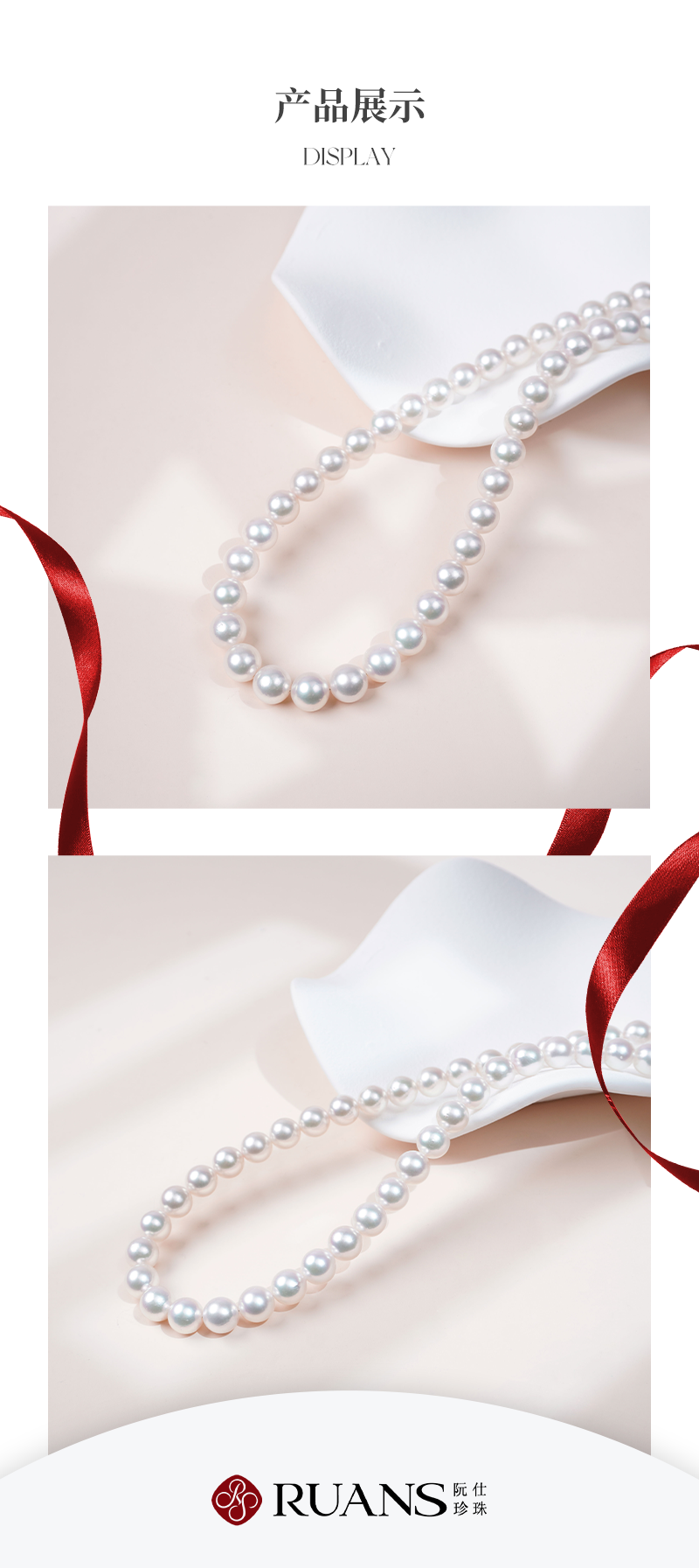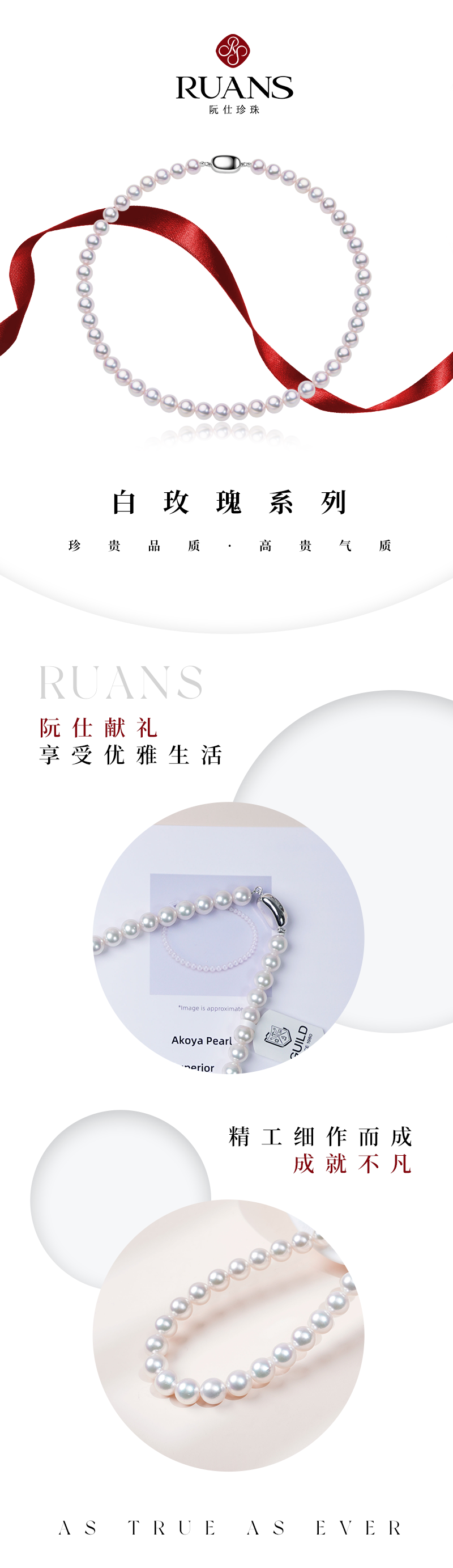 阮仕珍珠 白玫瑰系列S925银日本akoya珍珠项链8-9mm 正圆 微瑕 极强光(吉尔德证书ROSE等级)