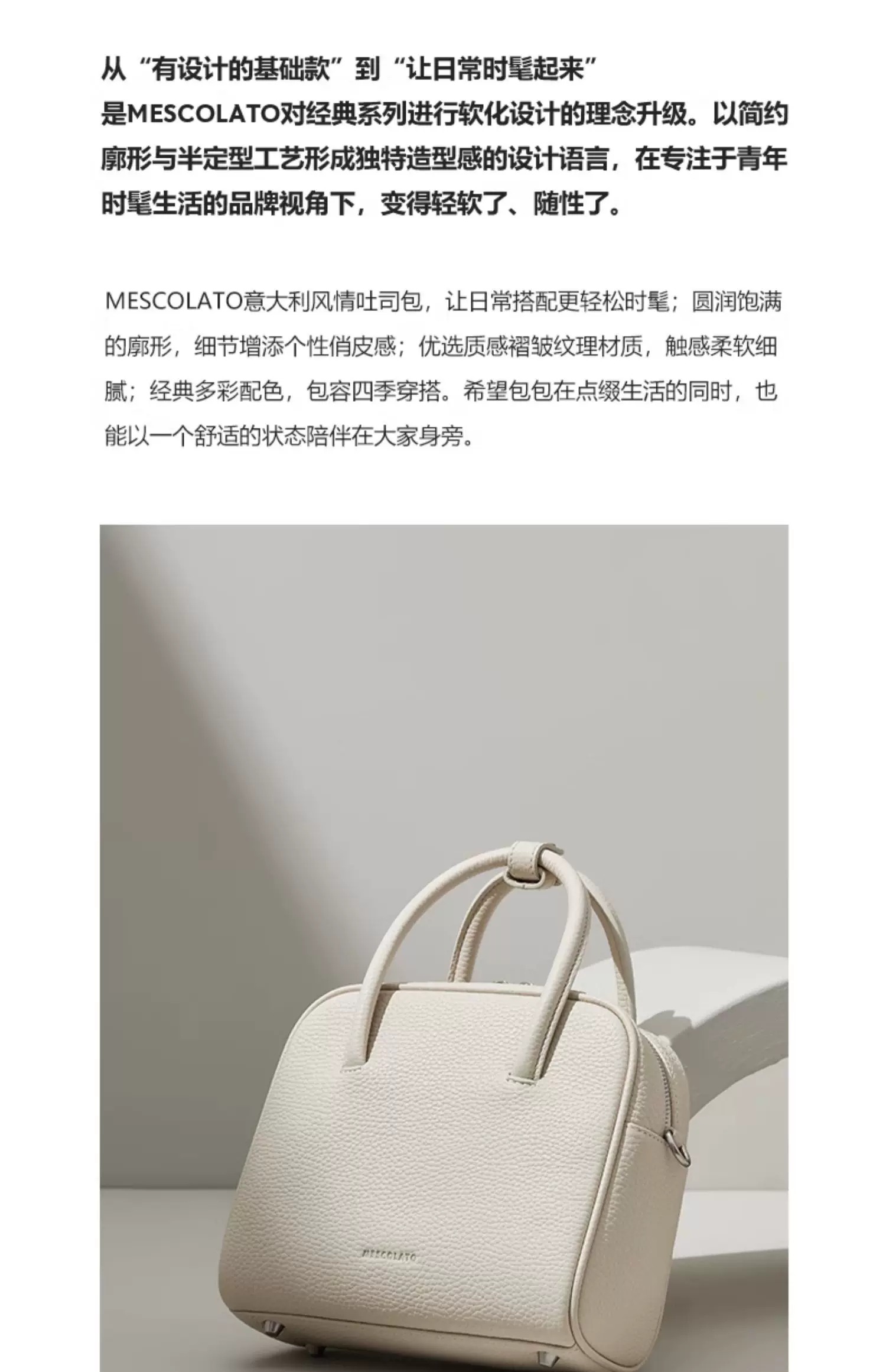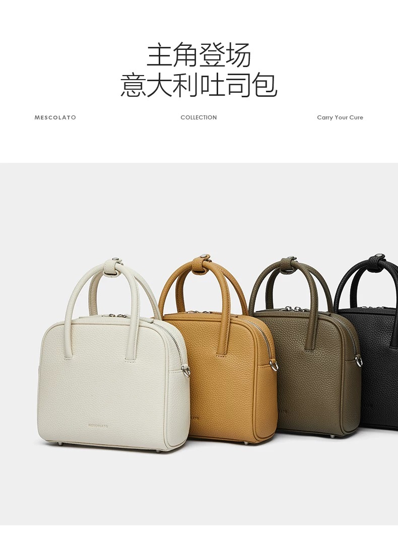 Mescolato 小号吐司包进口togo牛皮松弛感高级感通勤单肩斜挎包女