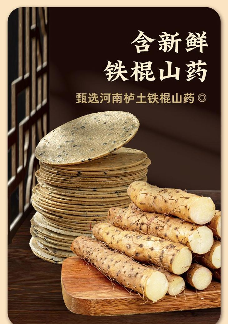 【配料表】鲜铁棍山药(含量≥60%)全麦粉,鸡内金3%,黑芝麻,大豆油,食用盐