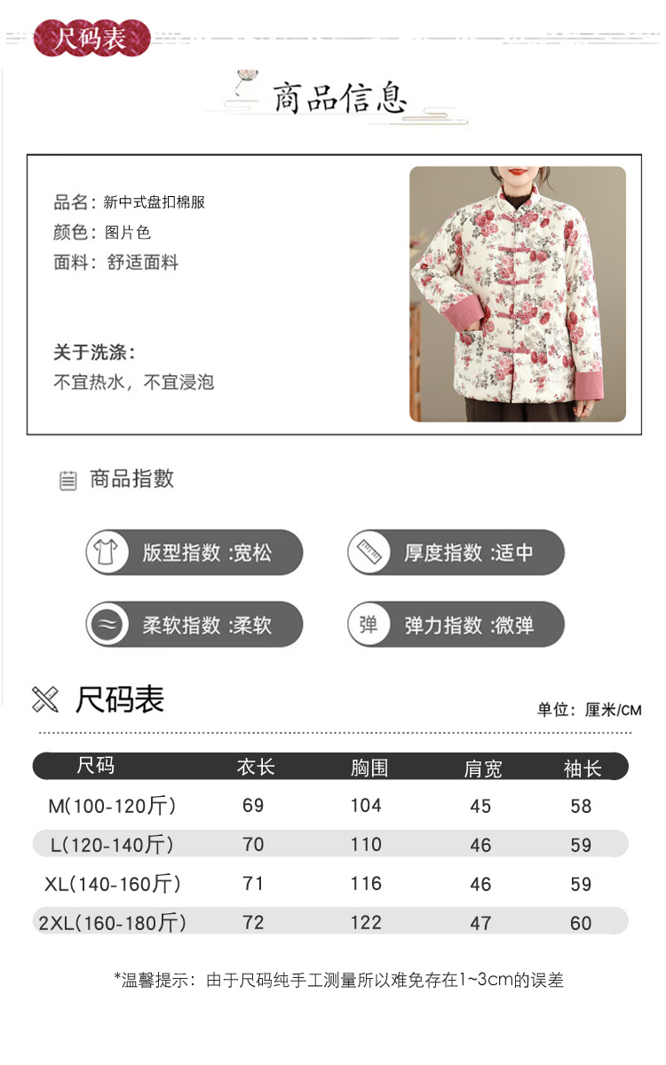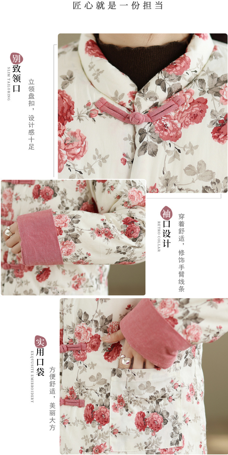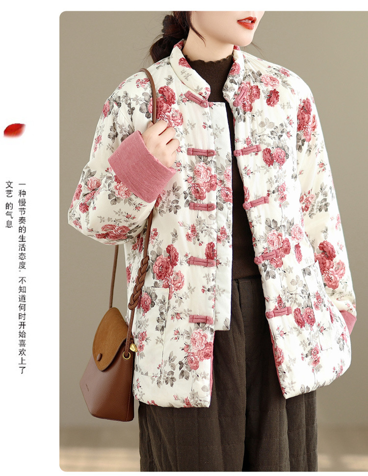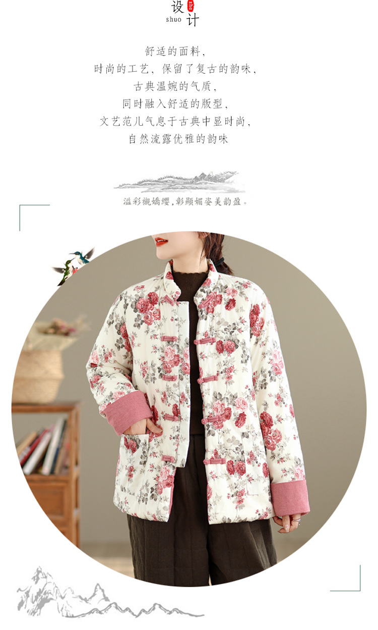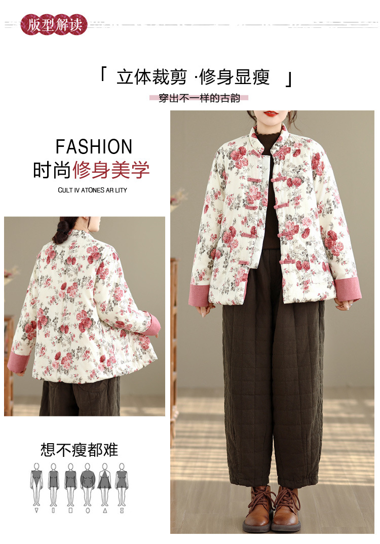 GYH 6254花棉袄加厚保暖宽松大码棉衣棉服新中式棉花袄
