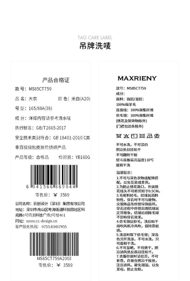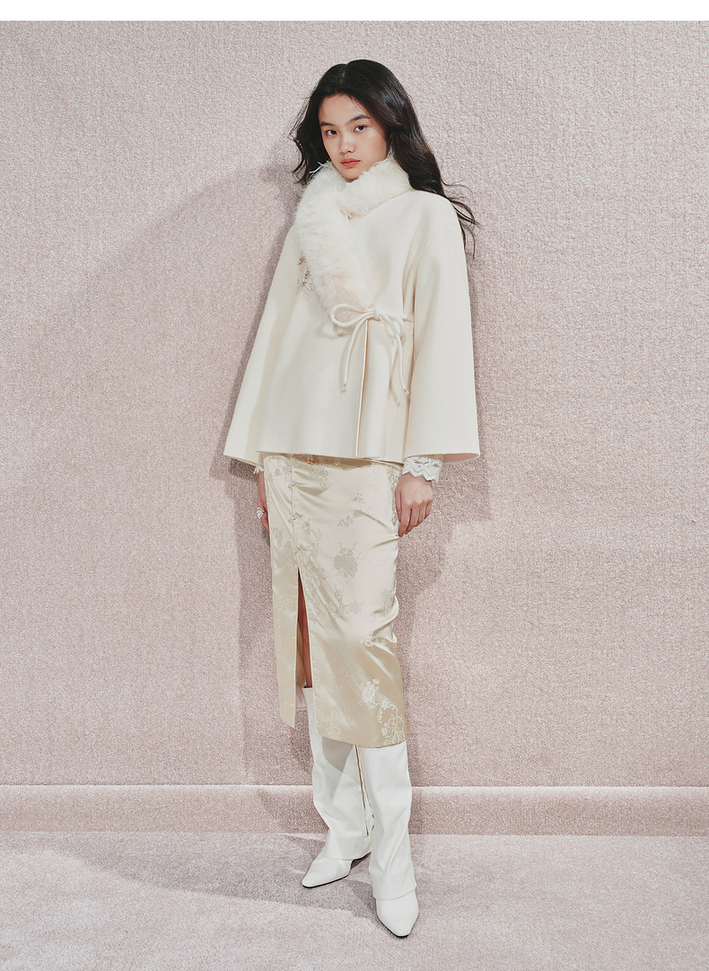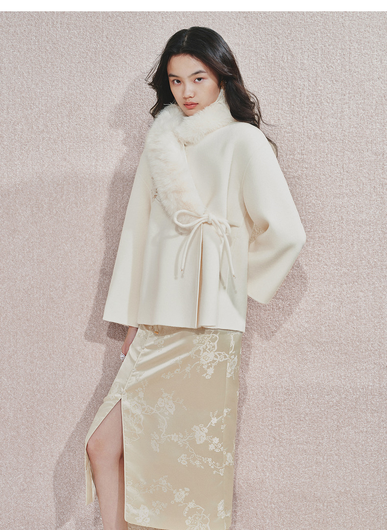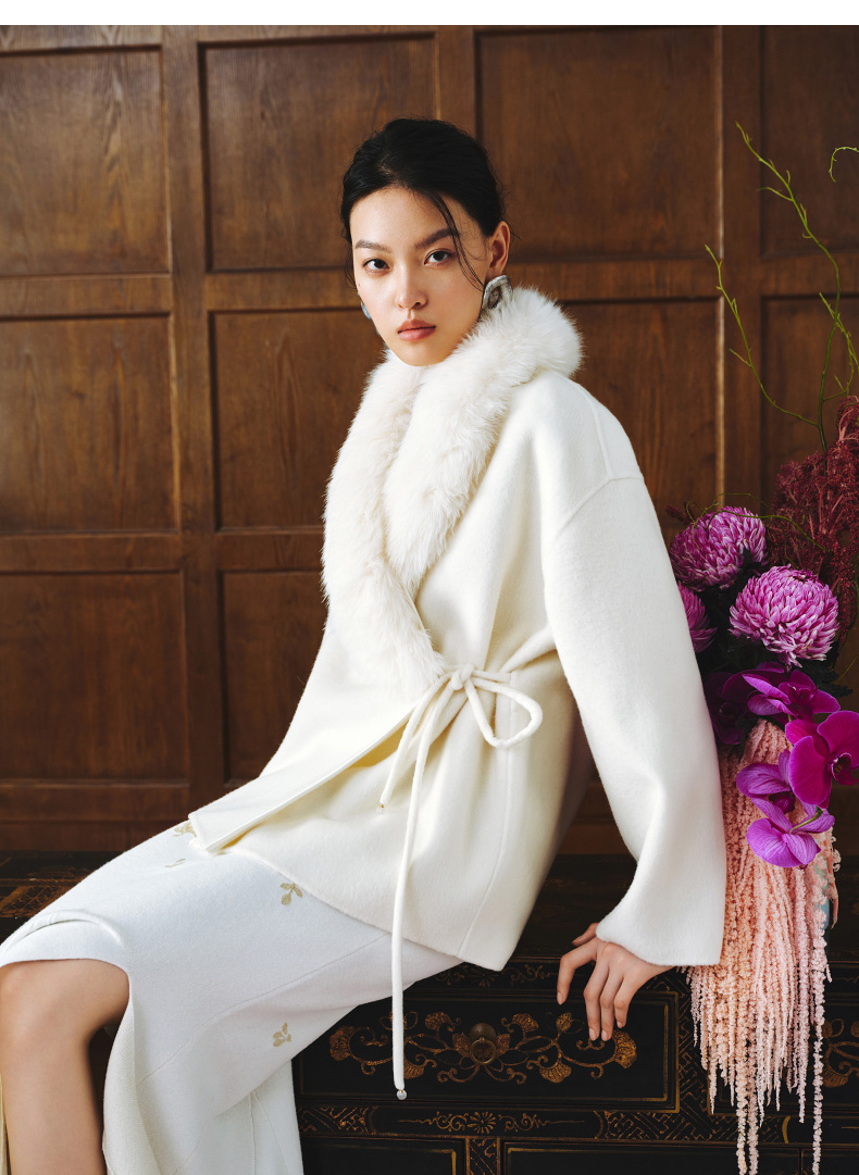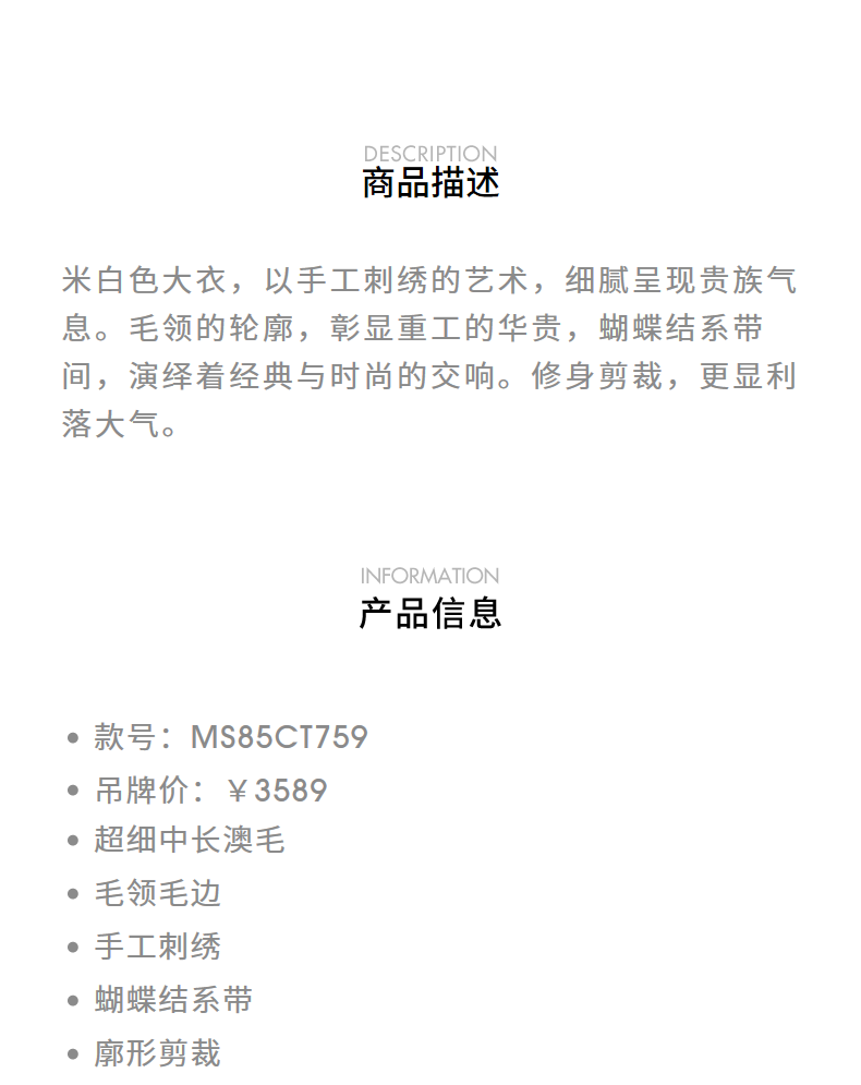 MAXRIENY贵雅新中式绵羊毛大衣24年冬新款刺绣廓形大毛领外套澳毛(货号:MS85CT759)
