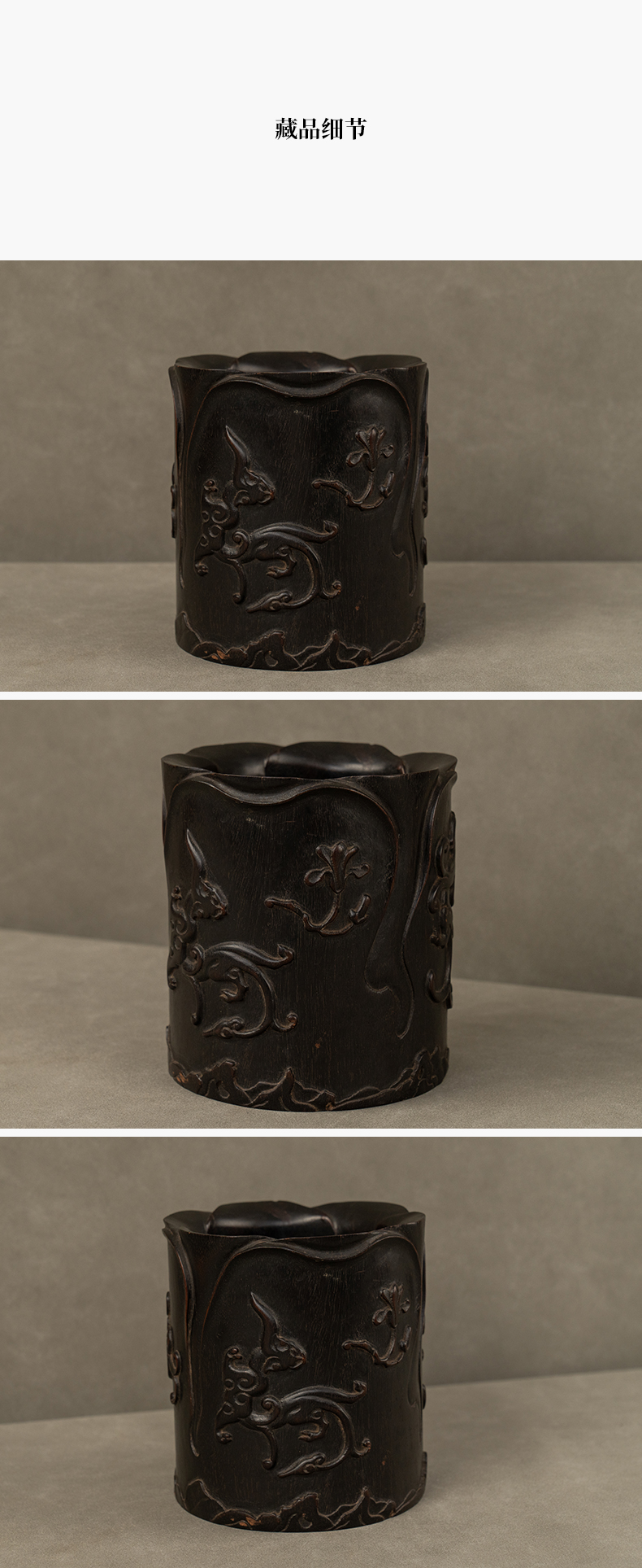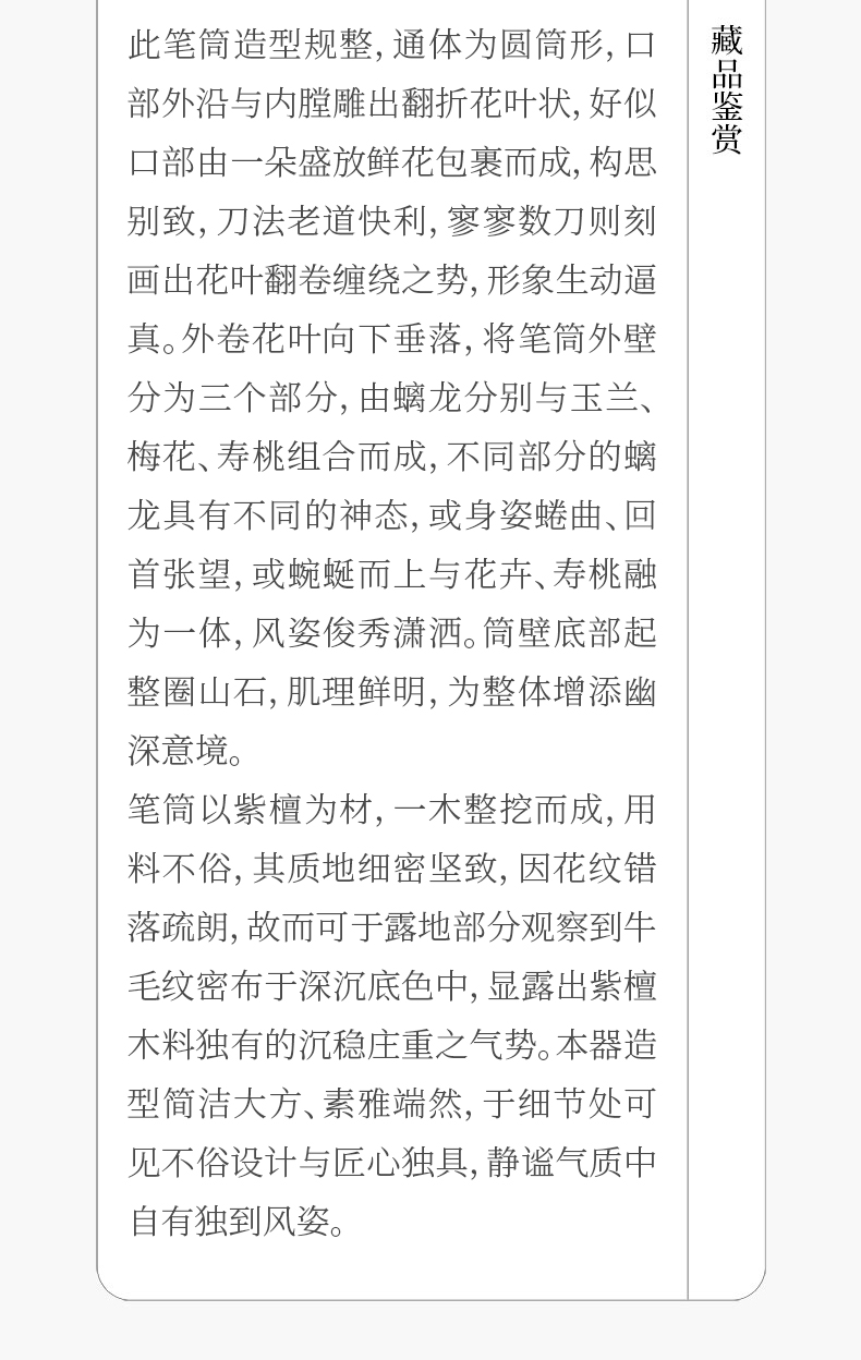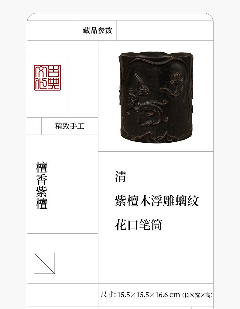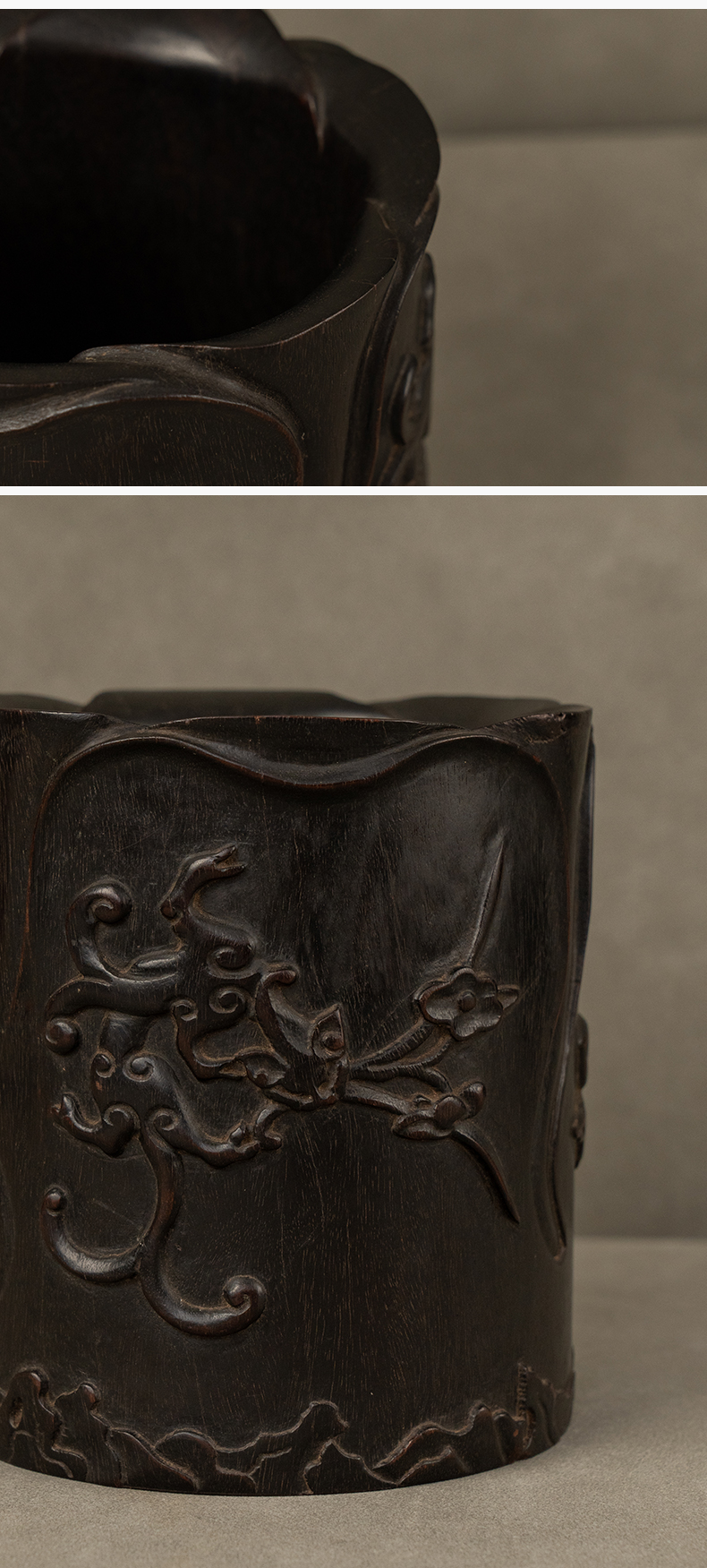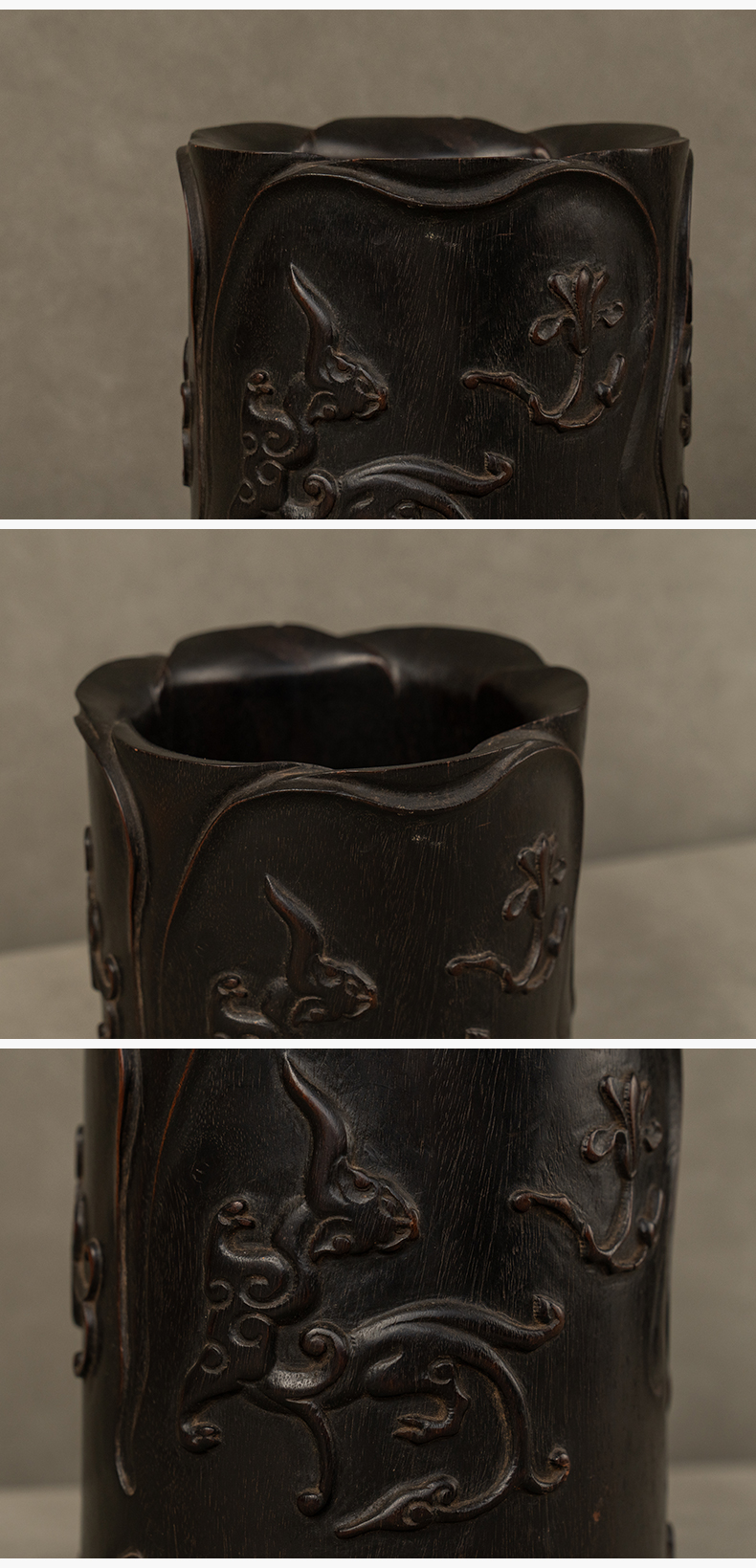 清 紫檀木浮雕螭纹花口笔筒